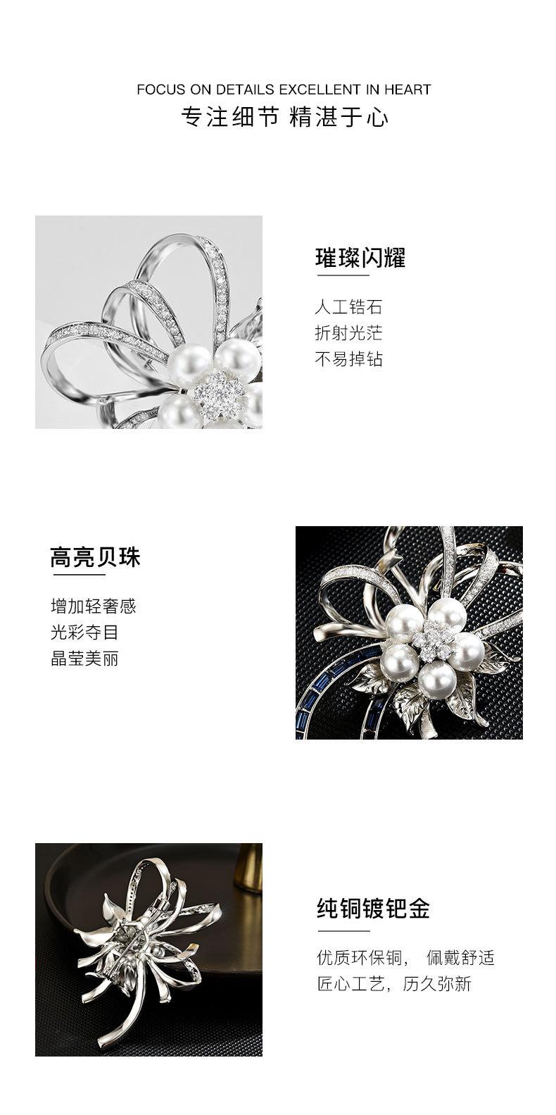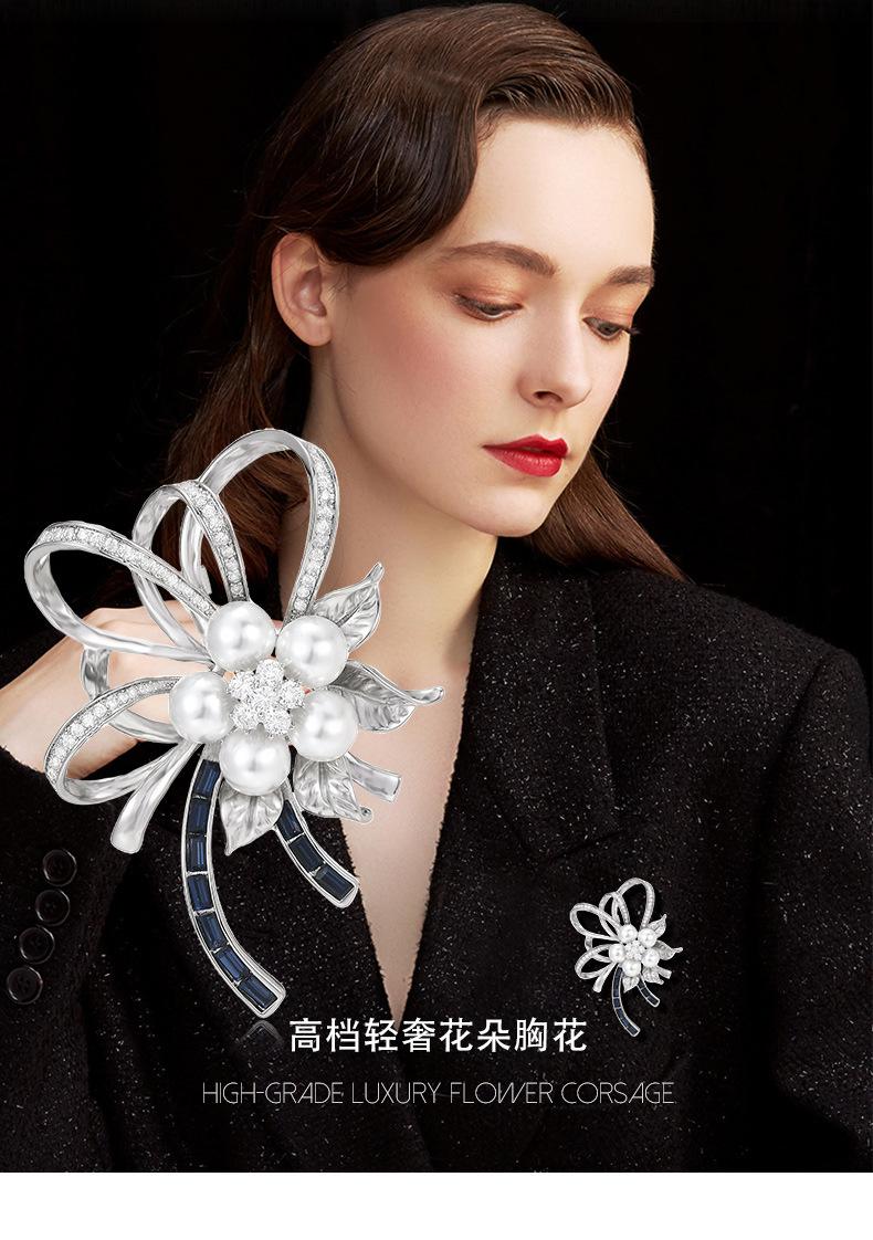 Broche de flor de perla de alta gama, ligero y lujoso, con diseño creativo y elegante de diamantes que combinan con todo, accesorios de ramillete.