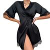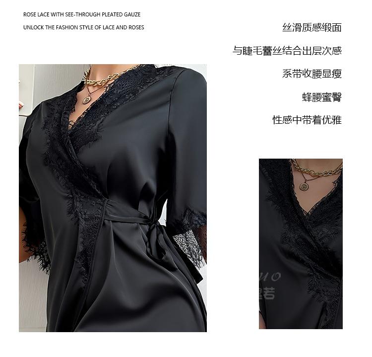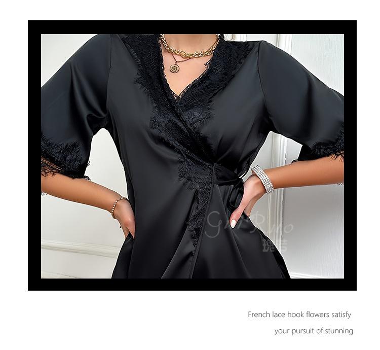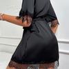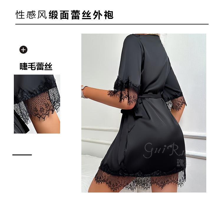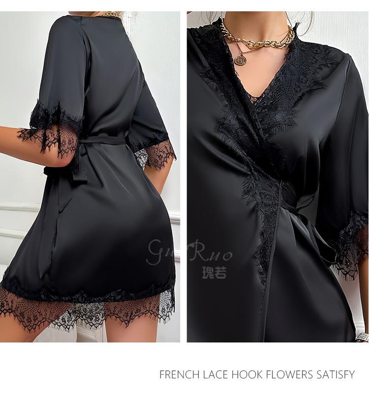 Ropa interior marca Guiruo sexy satén sedoso costuras encaje pura tentación bata con cordones traje de casa 9667