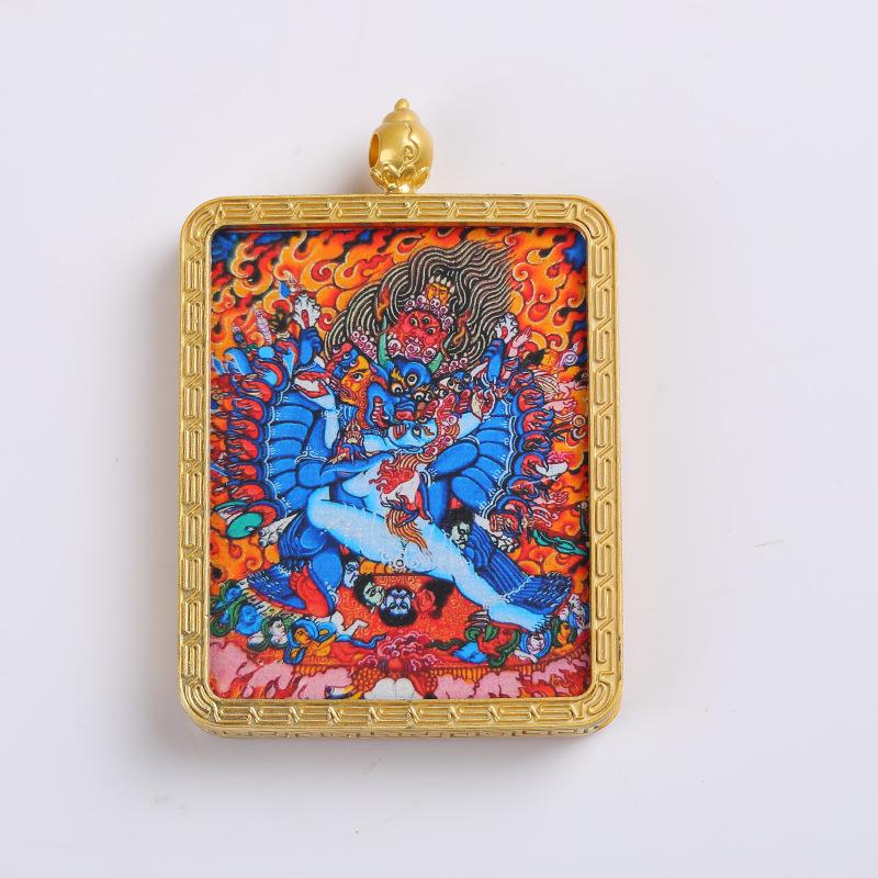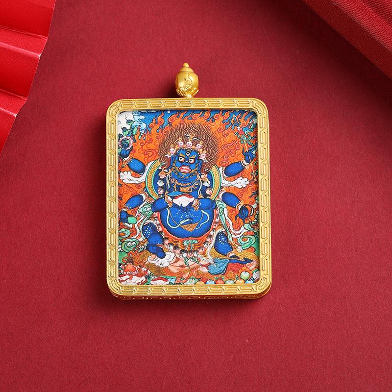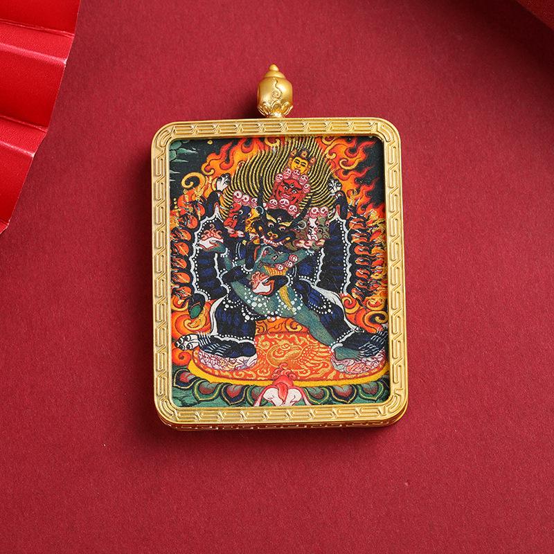Colgante Caja Gau Thangka Dorada Señor Shiva Amuleto de Buda Tendencia Nacional Electrochapado Portátil Atracción Turística Decoración