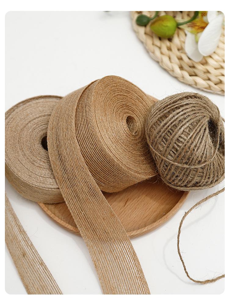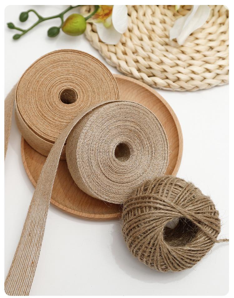 Cinta de cuerda de cáñamo vintage de color natural, algodón, cáñamo, seda, flor, caja de regalo, embalaje, cuerda de atar, rollo de tela de cáñamo creativo, cinturón decorativo DIY