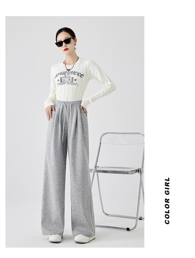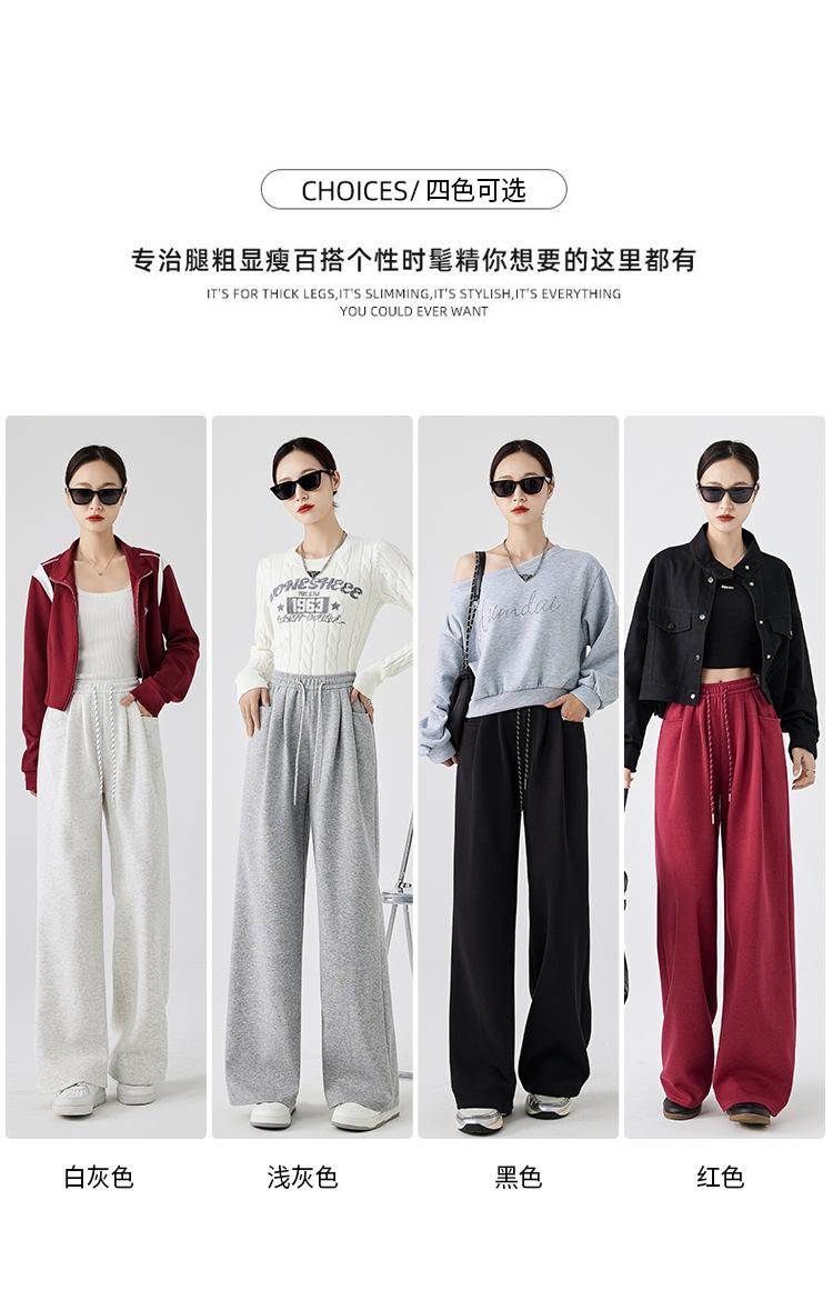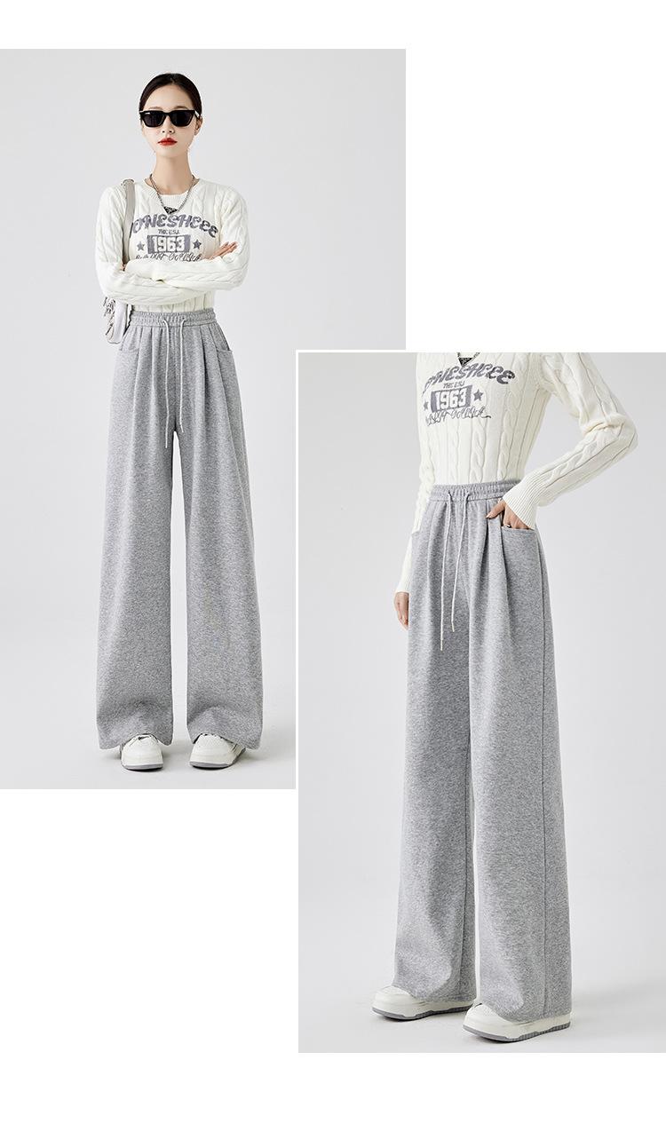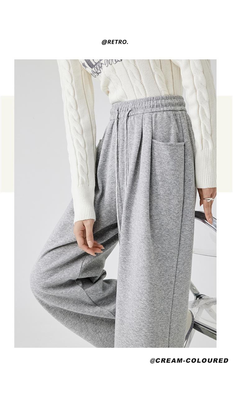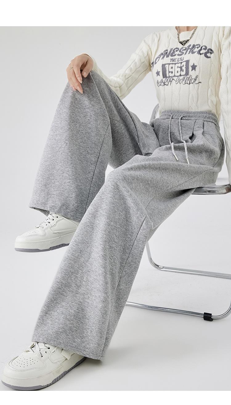 Pantalones Deportivos Grises para Mujer Primavera y Otoño 2024 Nuevos Pantalones Rectos Holgados y Relajados Pantalones Casuales Pequeños de Pierna Ancha