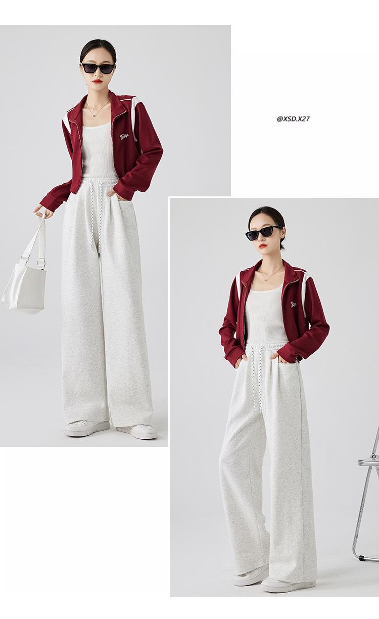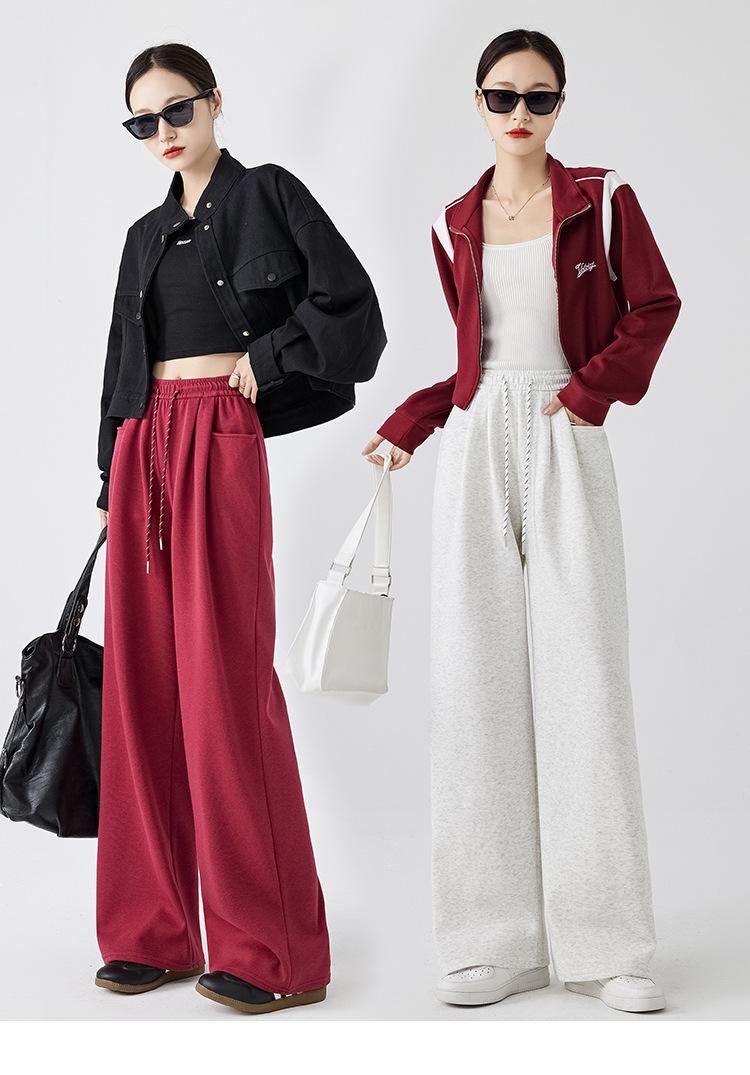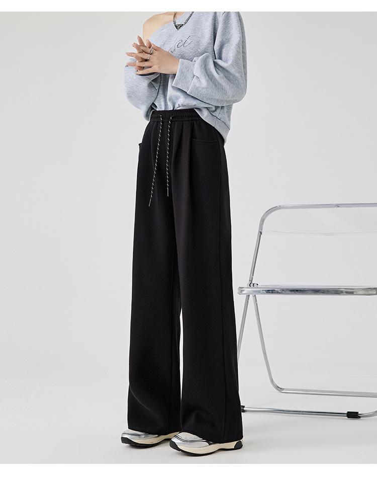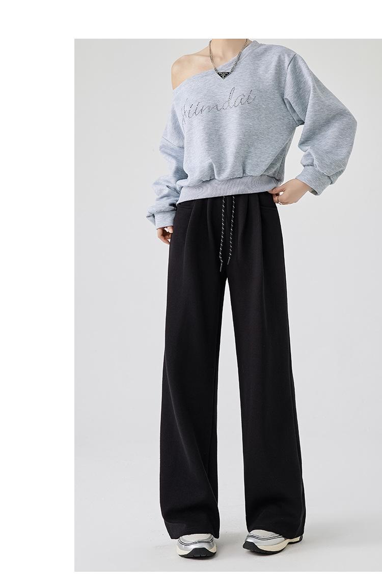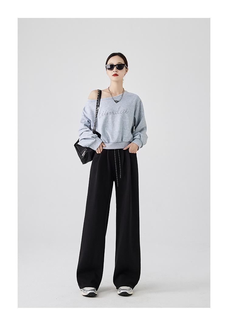 Pantalones Deportivos Grises para Mujer Primavera y Otoño 2024 Nuevos Pantalones Rectos Holgados y Relajados Pantalones Casuales Pequeños de Pierna Ancha