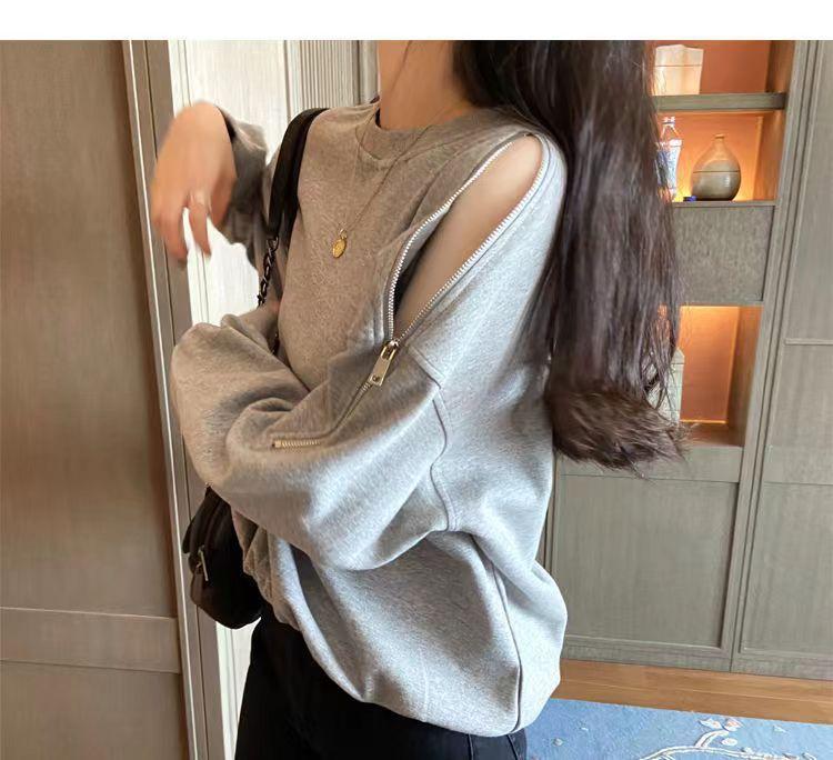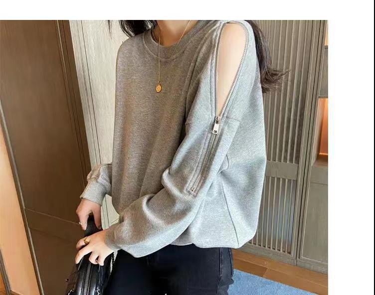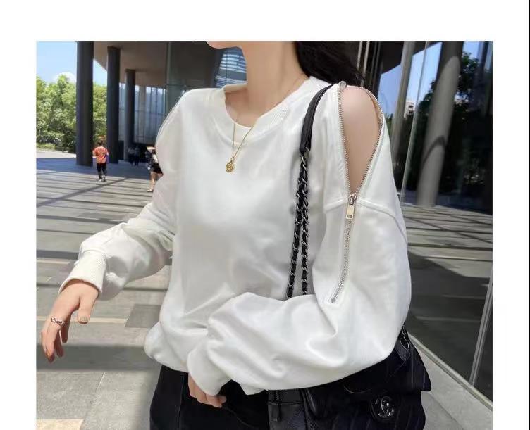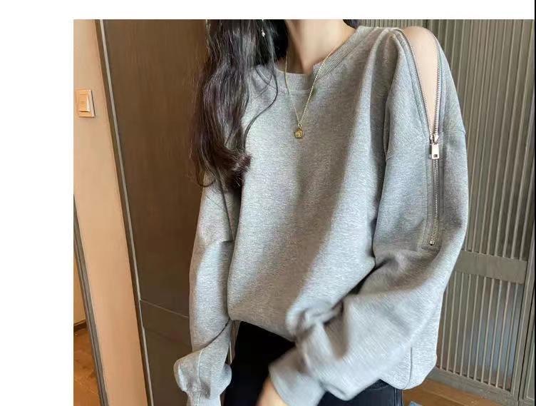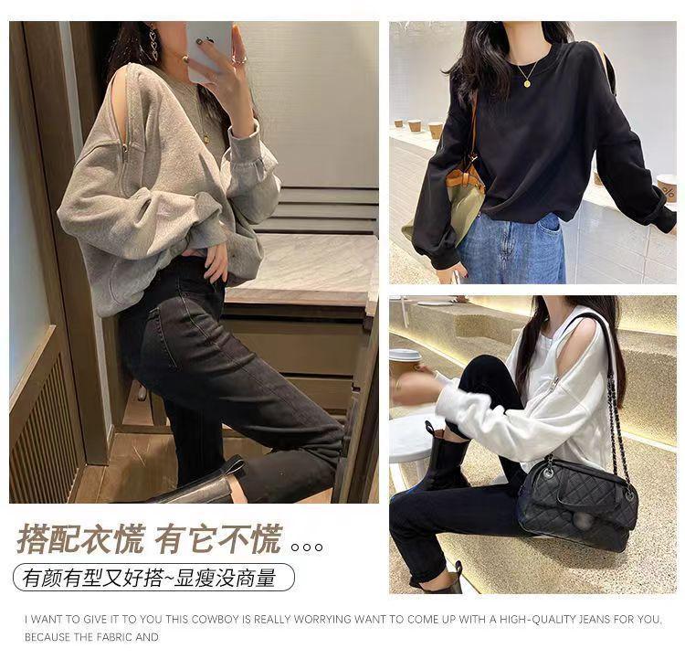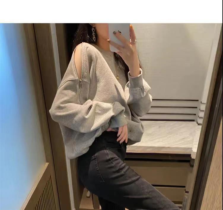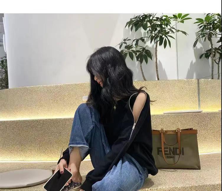 Suéter de moda para mujer, estilo Hong Kong, holgado, de manga larga, con hombros descubiertos, estilo primavera y otoño, 2024
