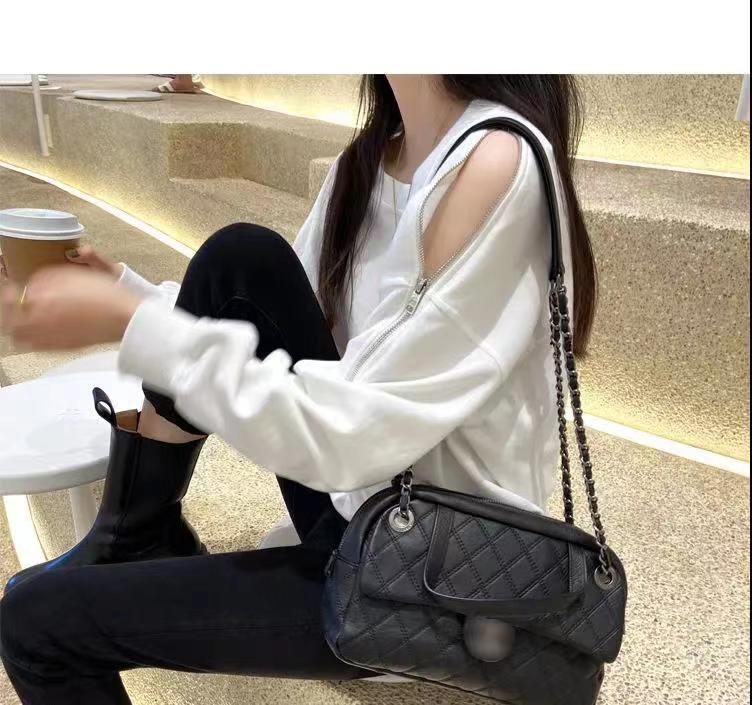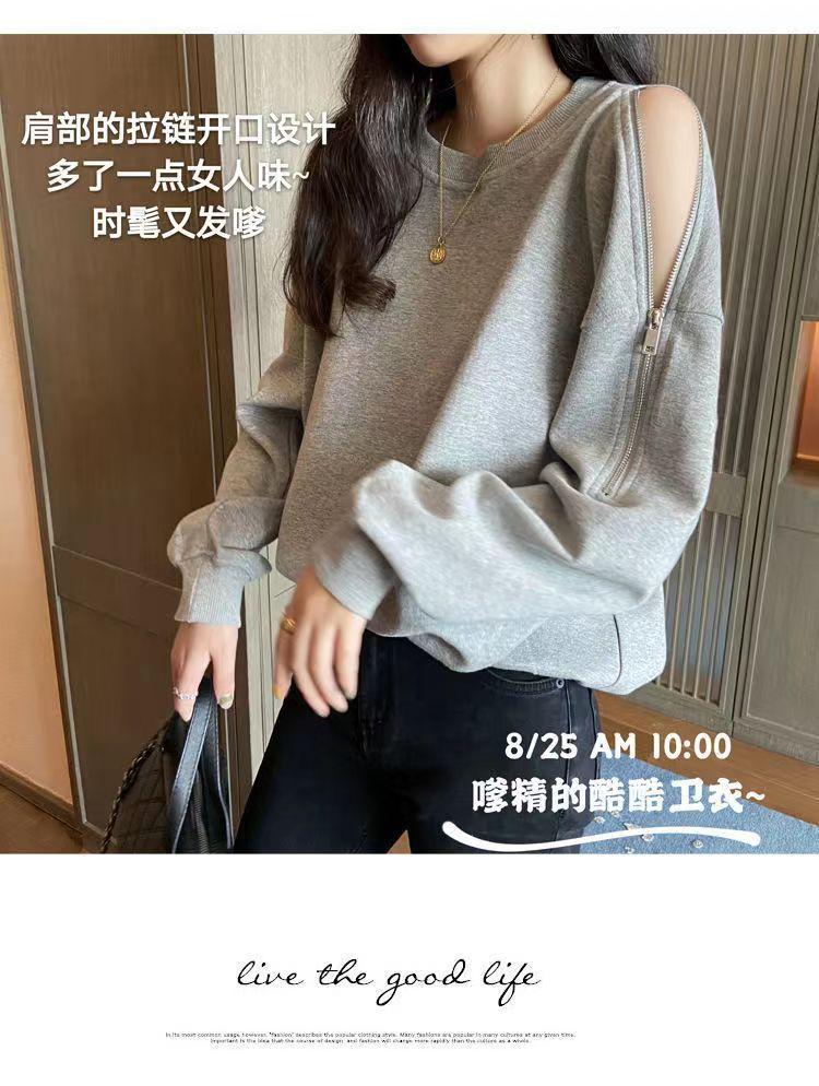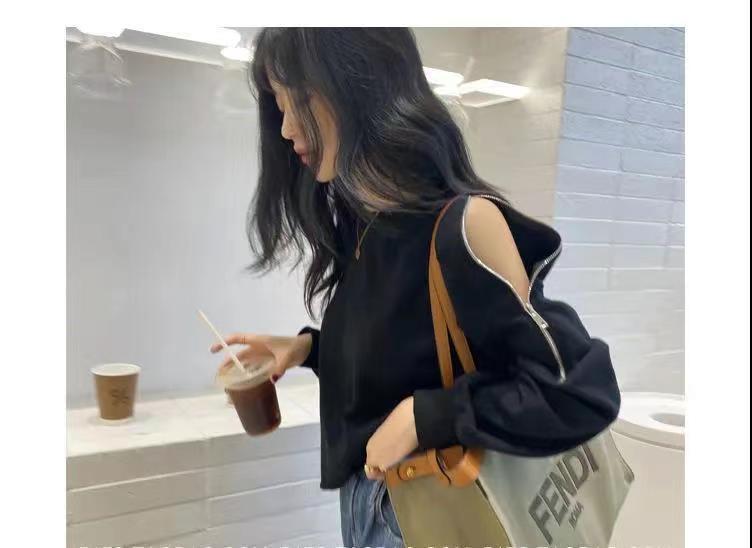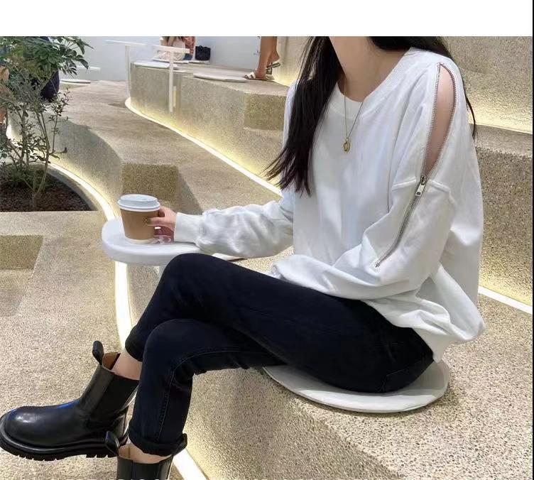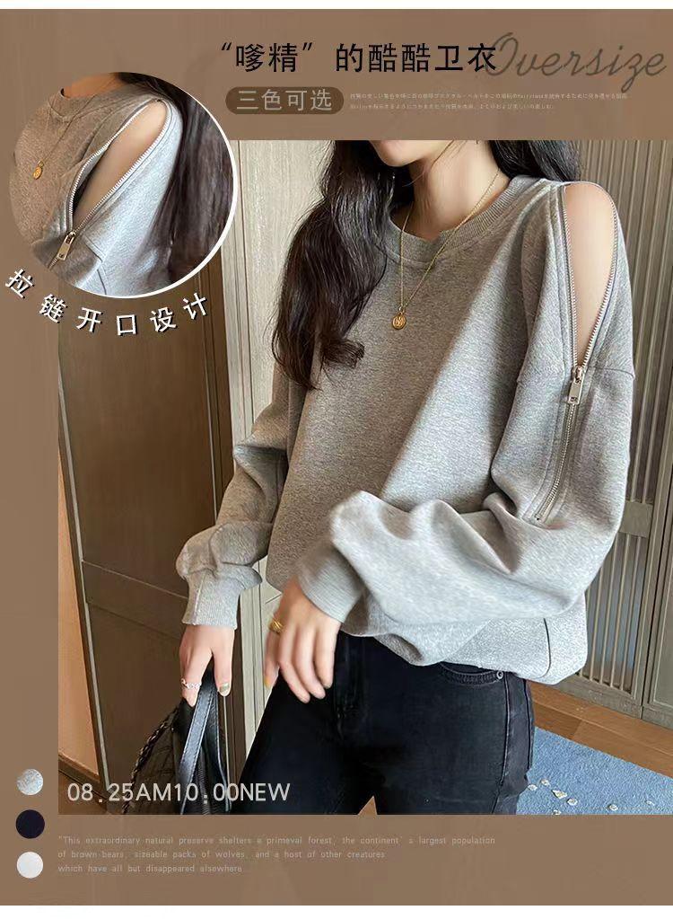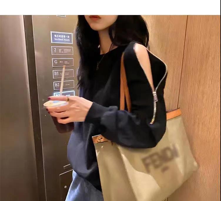 Suéter de moda para mujer, estilo Hong Kong, holgado, de manga larga, con hombros descubiertos, estilo primavera y otoño, 2024