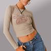 Moda Urbana 2023 Nuevo Wish Export Cuello Redondo Manga Larga para Mujer Slim Retro Americano Jersey Top al Por Mayor