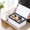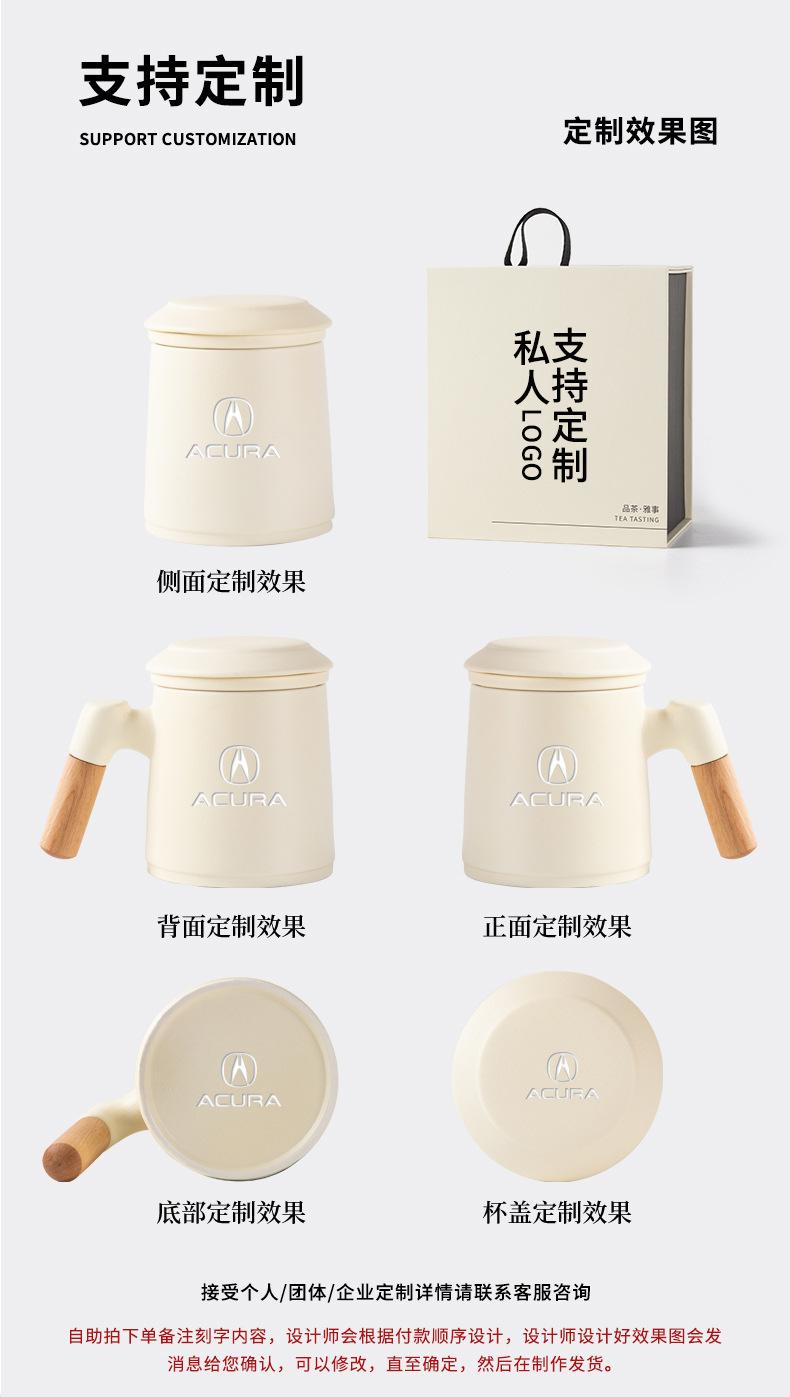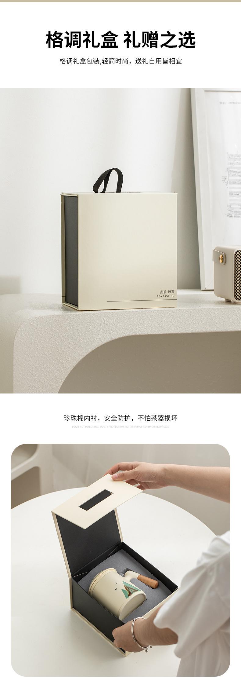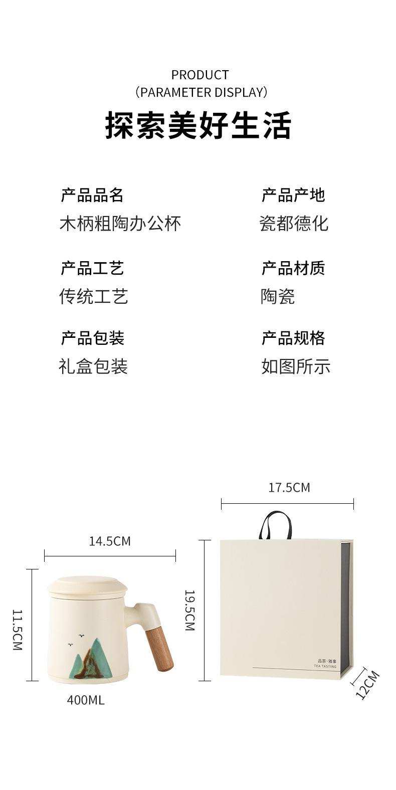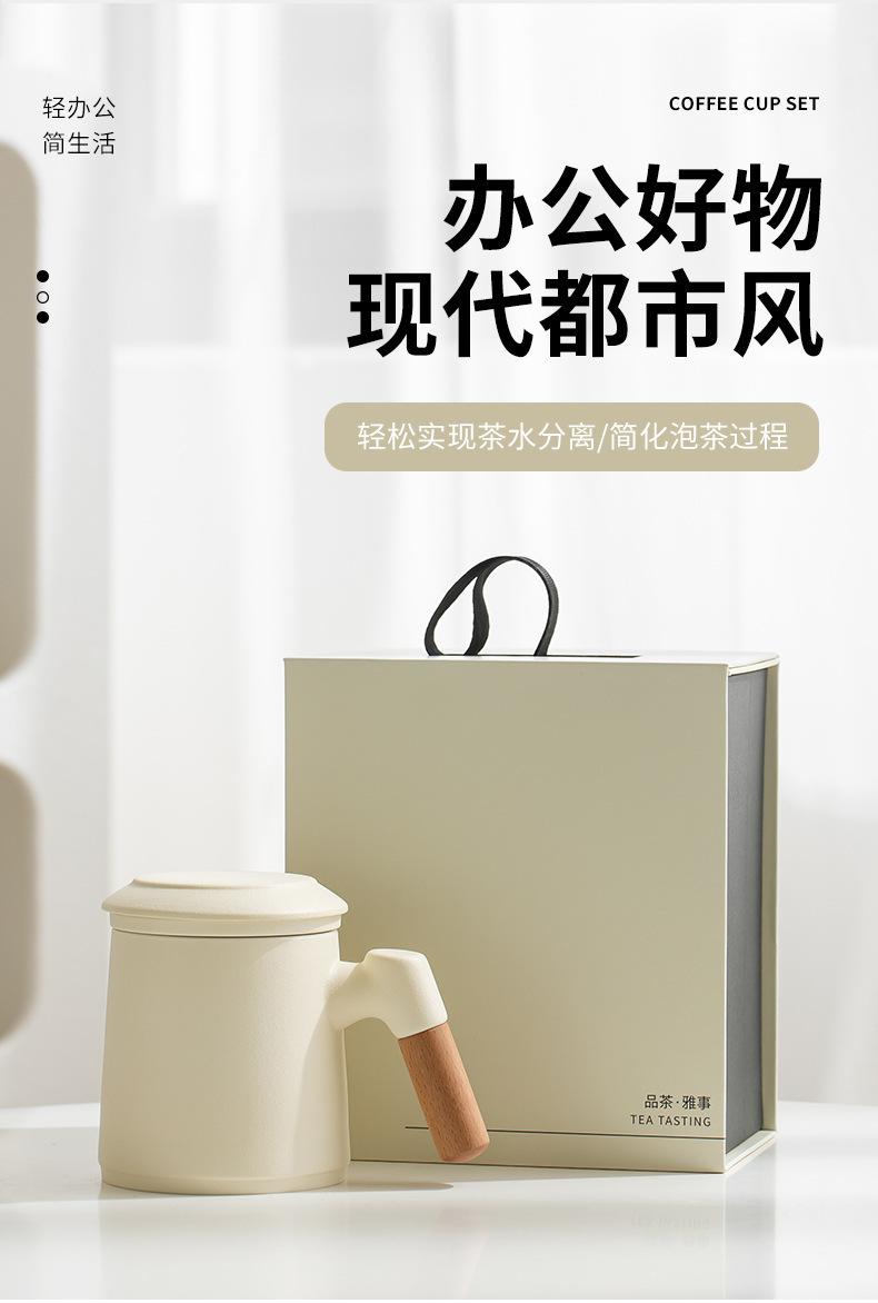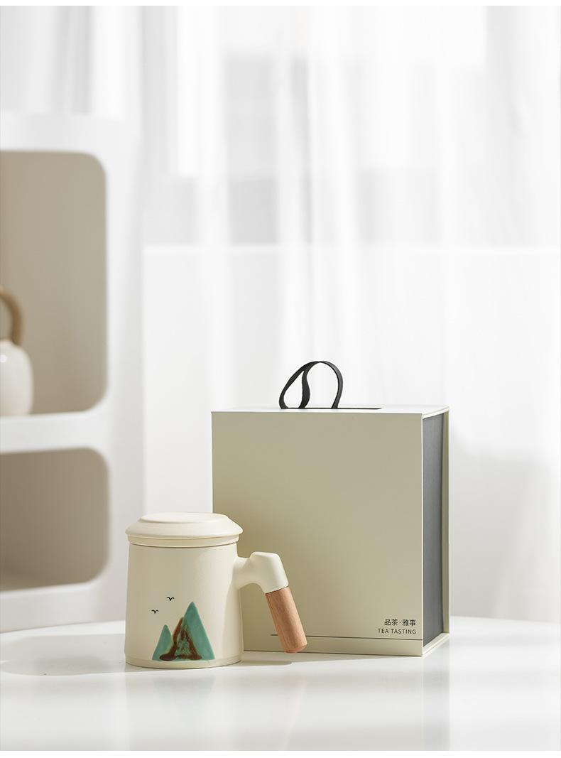 Beige wooden handle stoneware Yuanshan office cup gift box