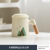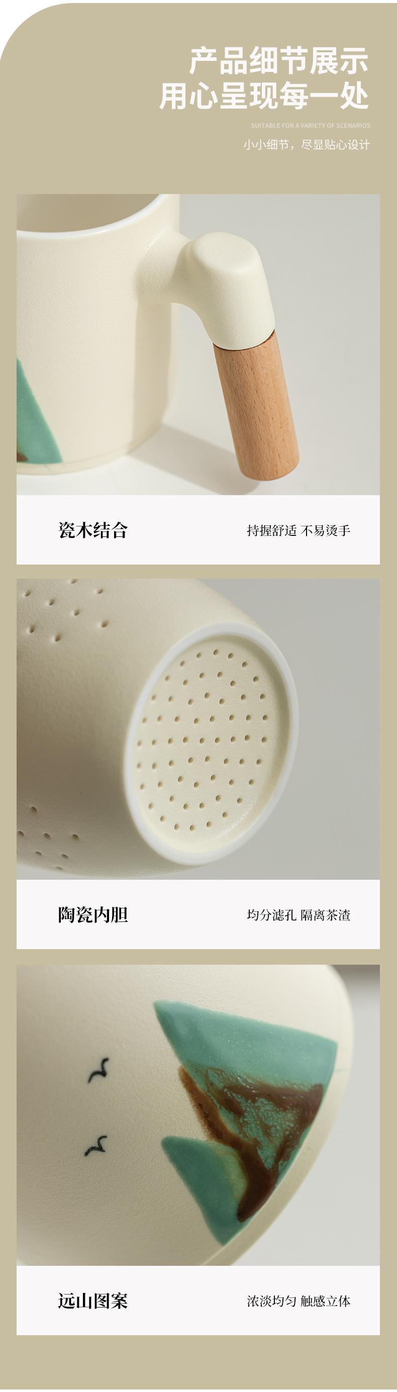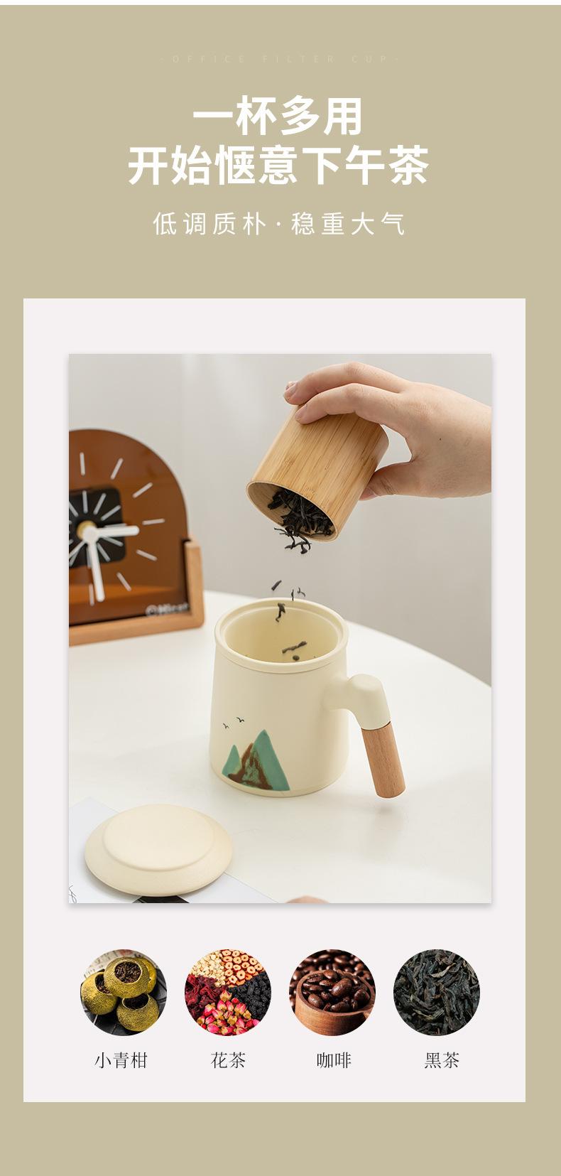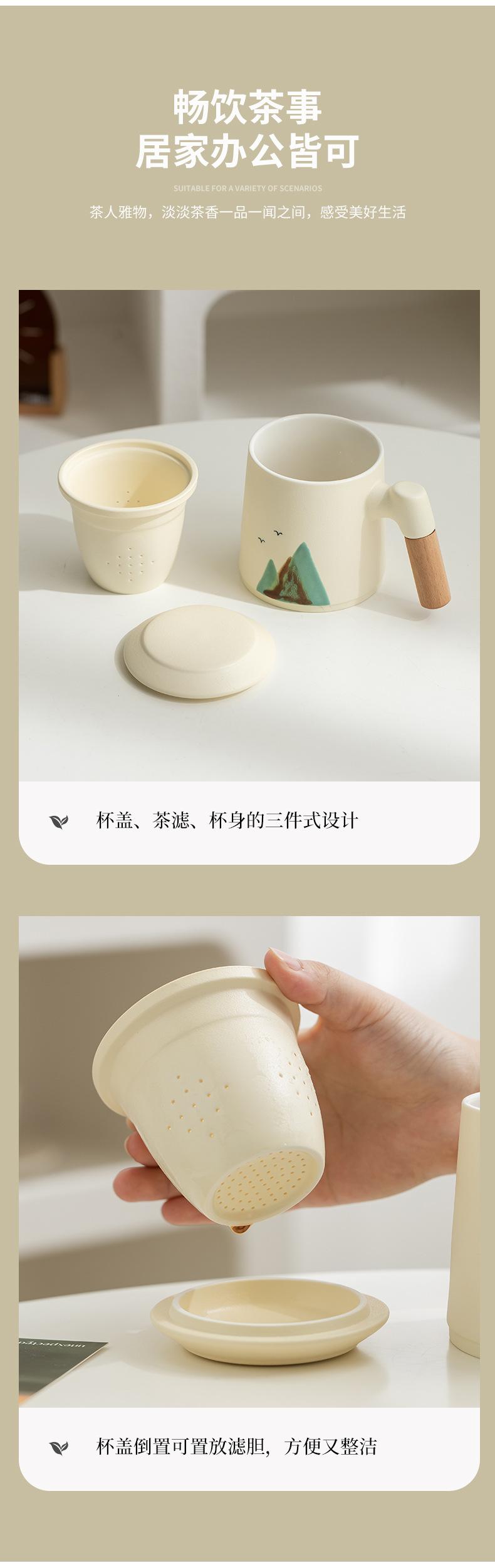 Beige wooden handle stoneware office cup simple, Beige wooden handle stoneware Yuanshan office cup, Beige wood...