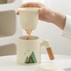 Taza de cerámica con tapa para separar té, ideal para oficina y hogar, con caja de regalo y logotipo impreso.
