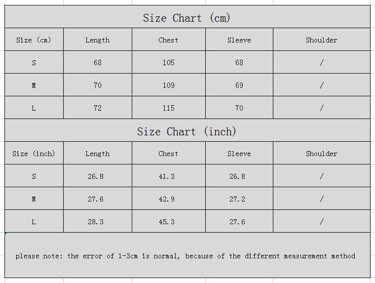 La talla se mide manualmente y puede haber un error de 2 a 4 cm debido a las diferentes herramientas y métodos de medición. Consulta la tabla de tallas y los detalles según tu estilo habitual y compra por tu cuenta.
