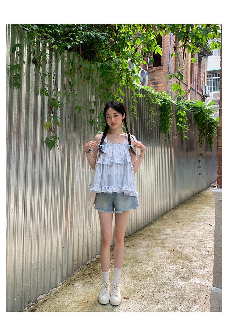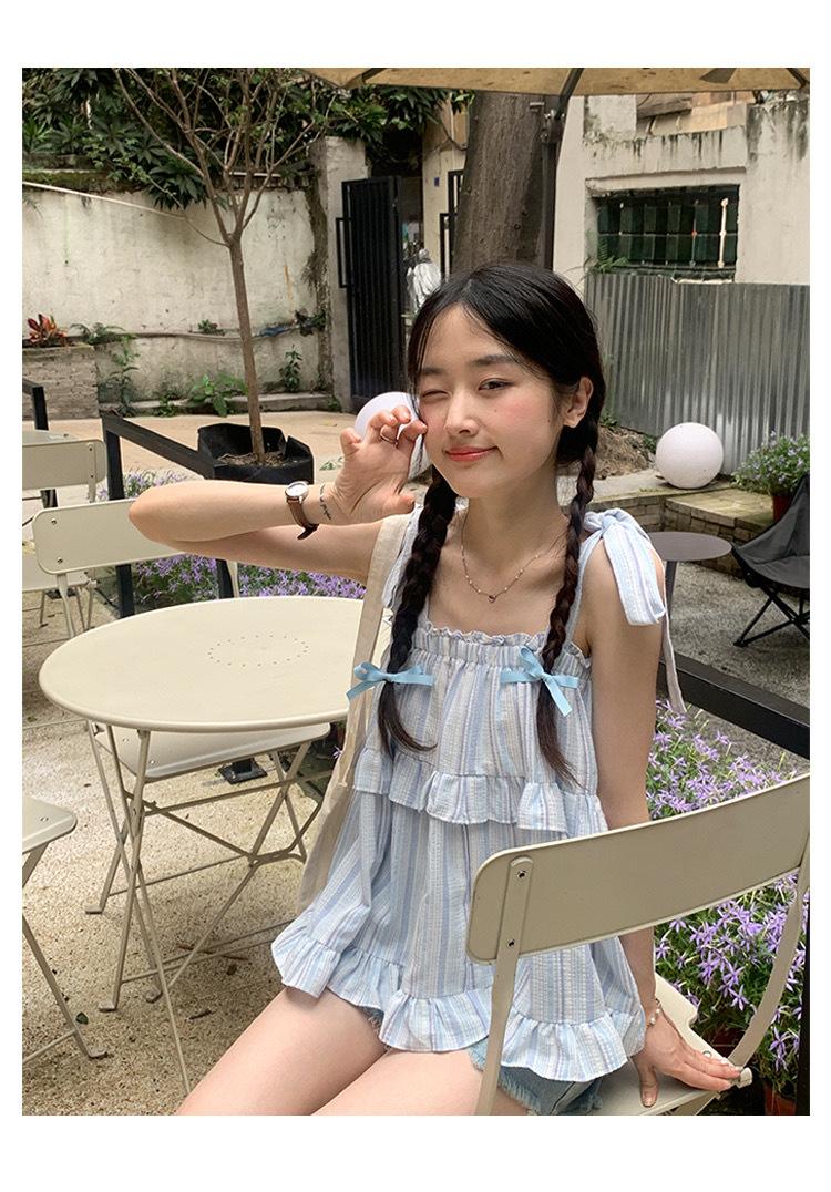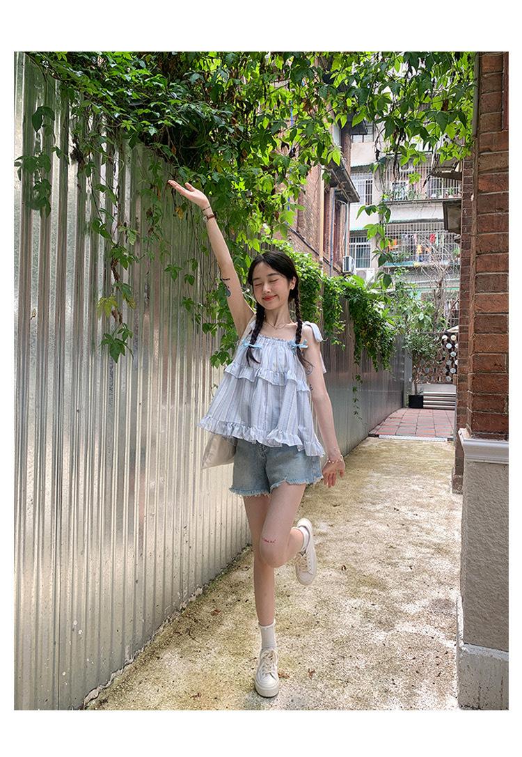 Camisola holgada de verano para mujer, diseño de tirantes finos con escote pronunciado, estilo playero festivo