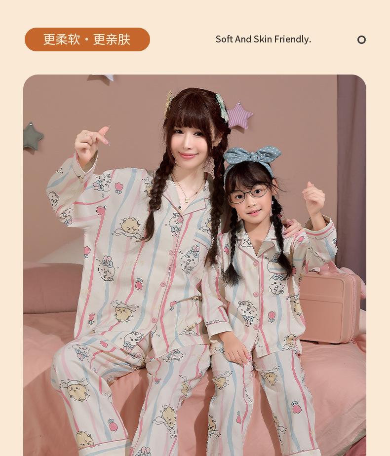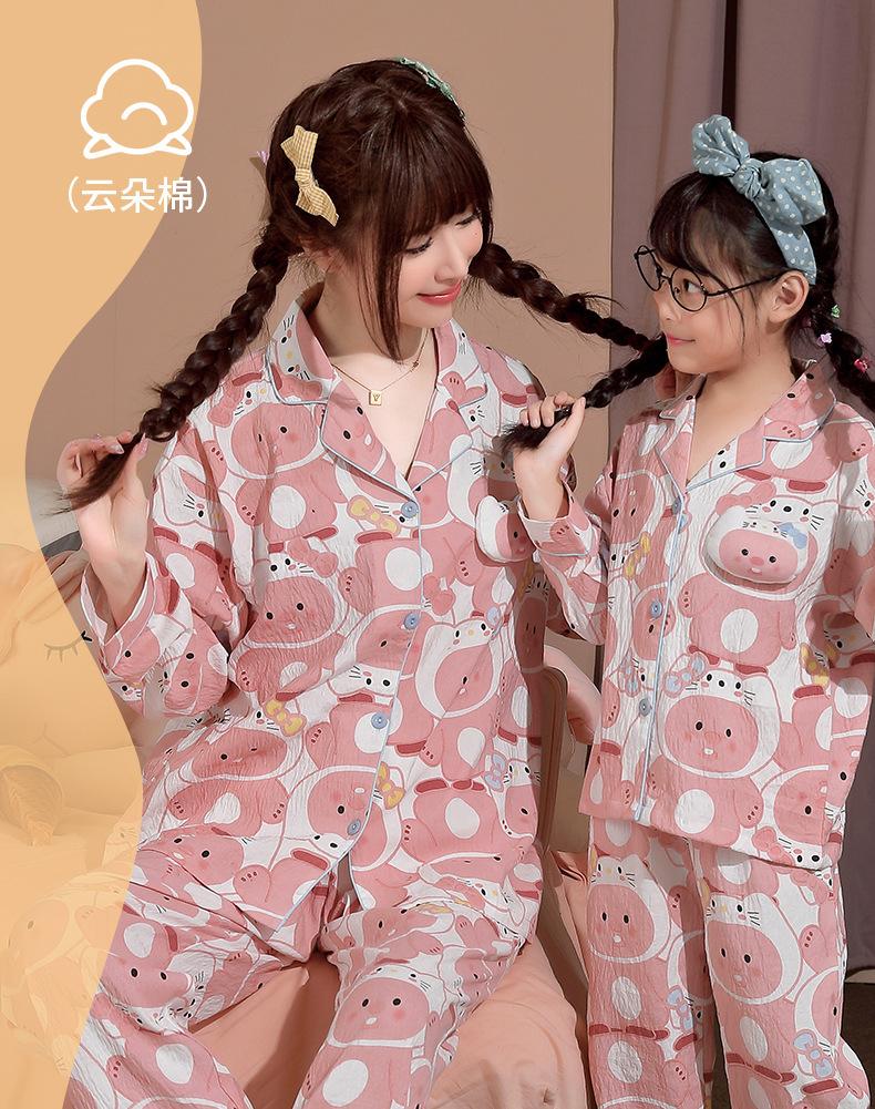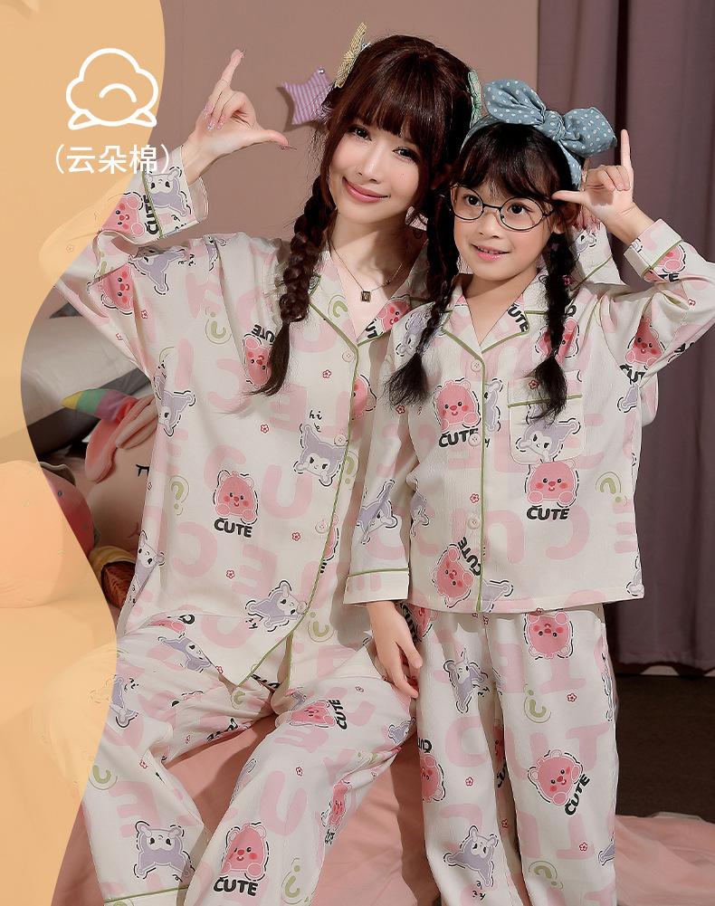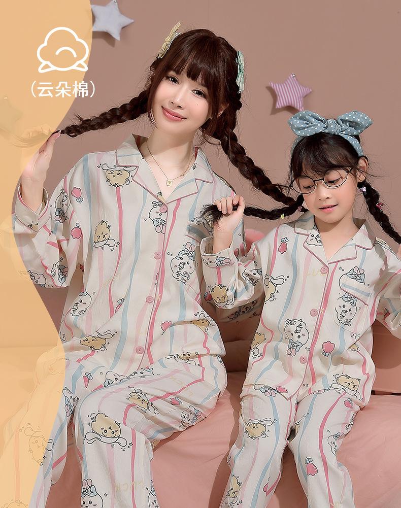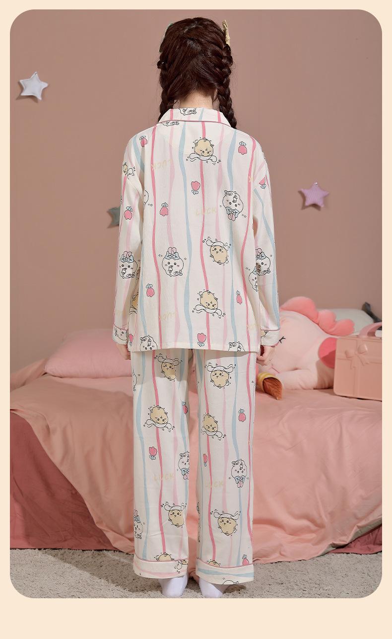 Pijamas para niñas, primavera y otoño, algodón puro, fino, manga larga, dibujos animados, perro Yugui, ropa de invierno para el hogar para mujeres y niñas.
