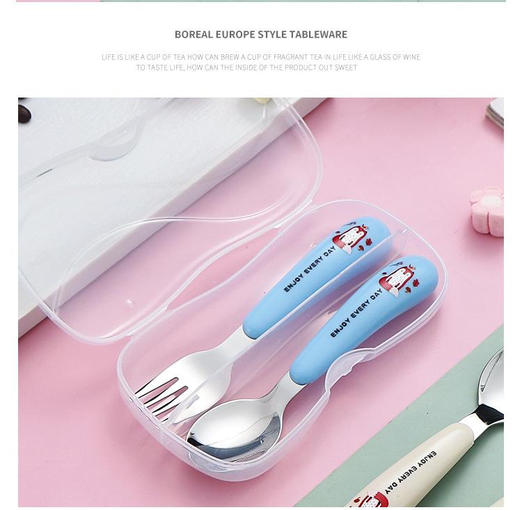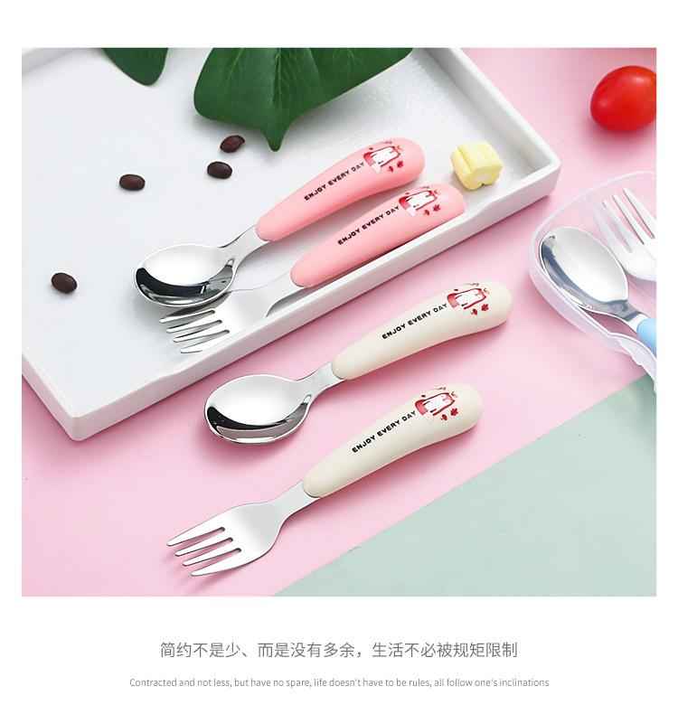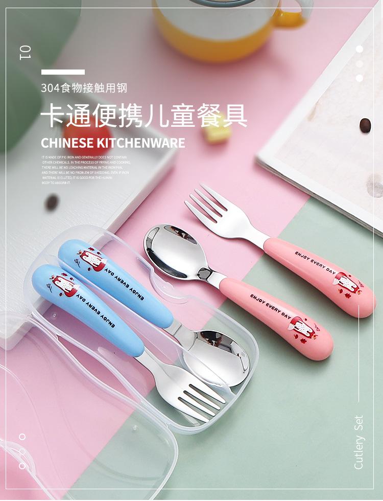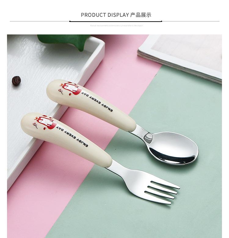 Fábrica 304 Vajilla portátil para niños Juego de acero inoxidable Cuchara tenedor de dibujos animados Aprendizaje y entrenamiento para bebés Cuchara para el hogar