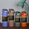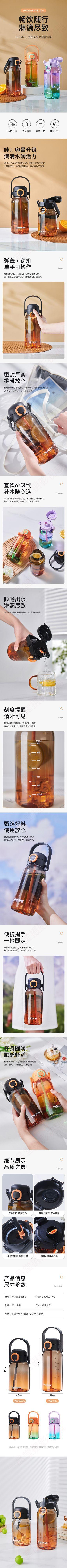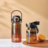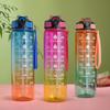 Botella de agua deportiva portátil de dos colores con degradado, doble uso, con asa y botón, pajita para beber directamente, para viajes al aire libre