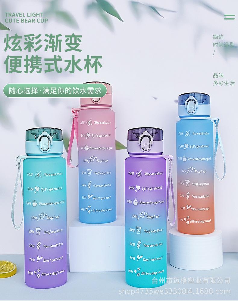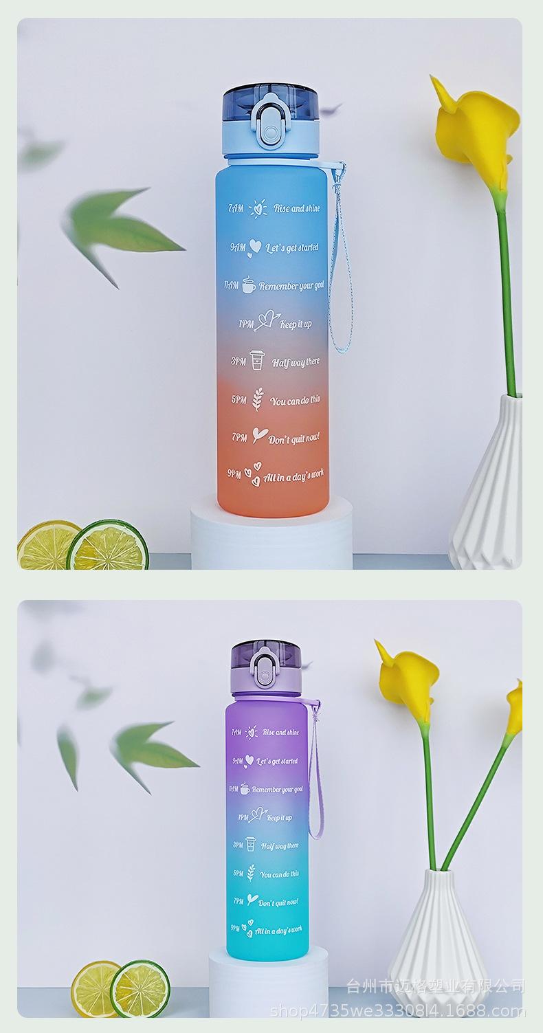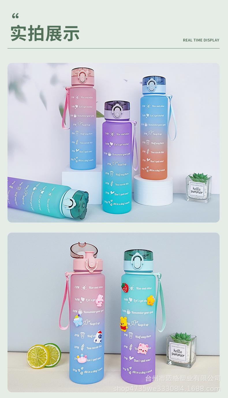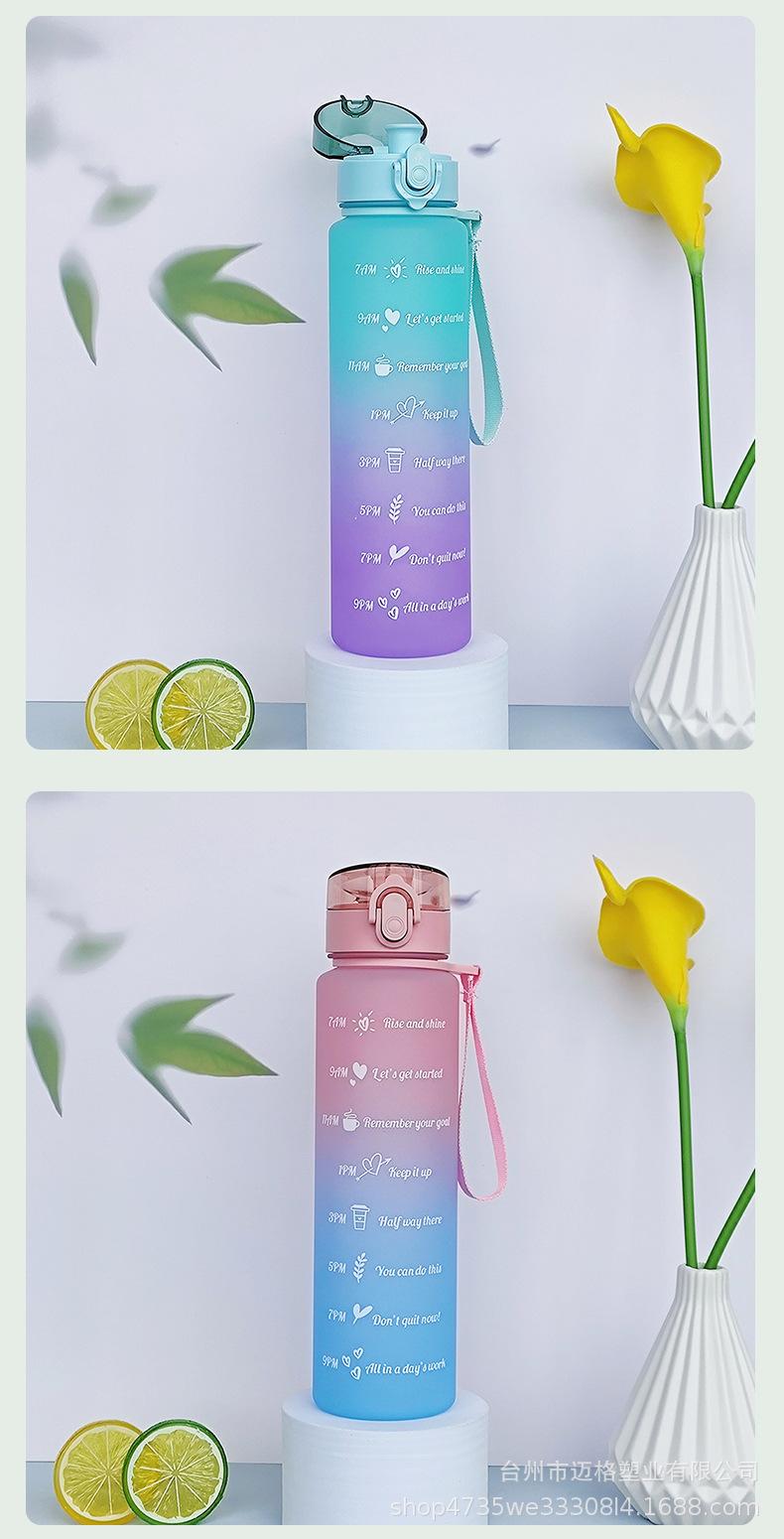 Taza de agua deportiva con hervidor de agua, resistente a altas temperaturas, escala de tiempo, taza de paja, taza de gradiente esmerilado, taza de plástico al por mayor