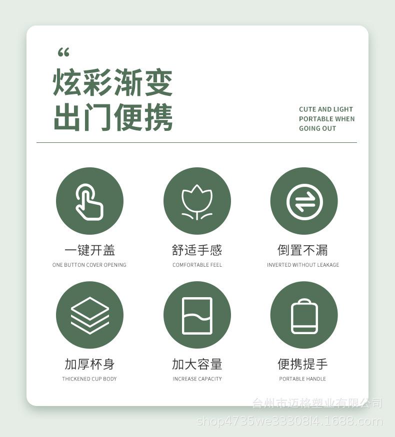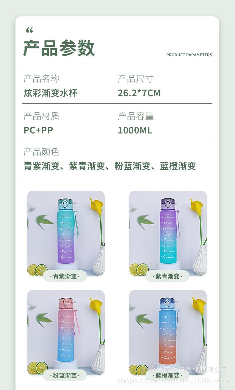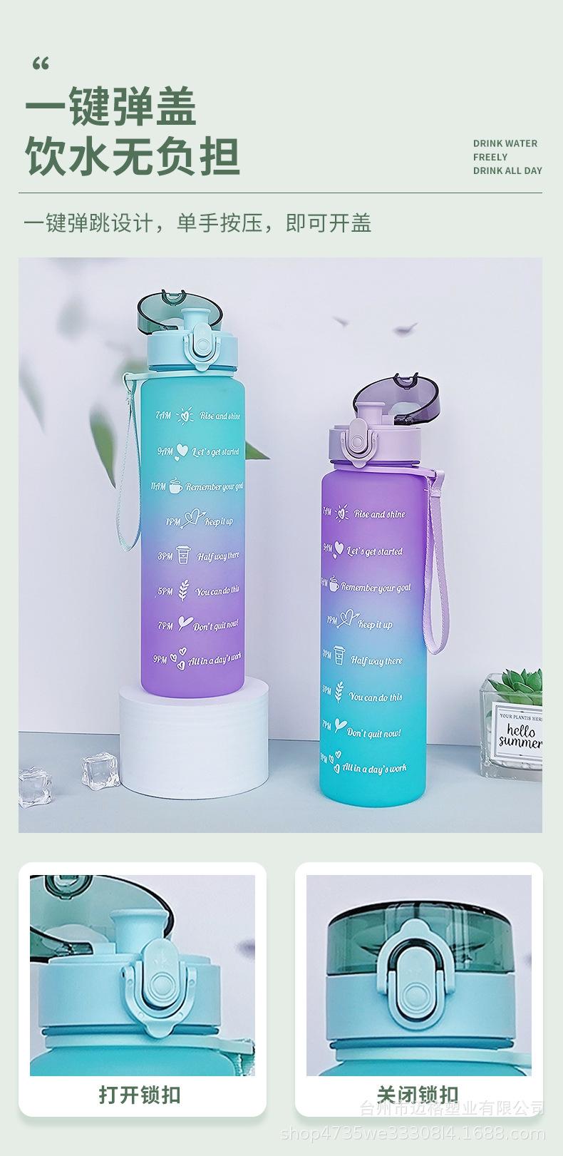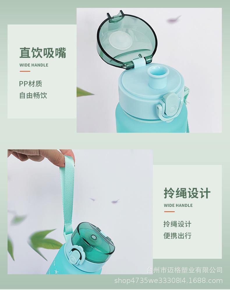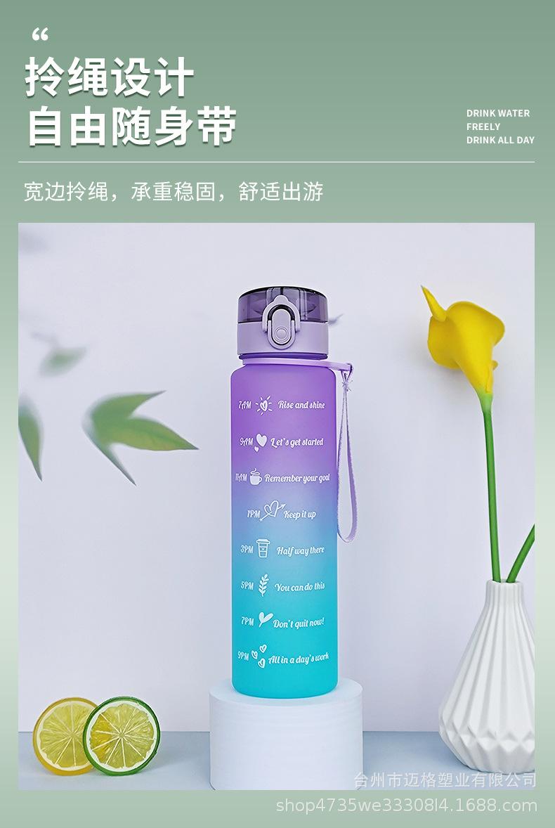 Taza de agua deportiva con hervidor de agua, resistente a altas temperaturas, escala de tiempo, taza de paja, taza de gradiente esmerilado, taza de plástico al por mayor