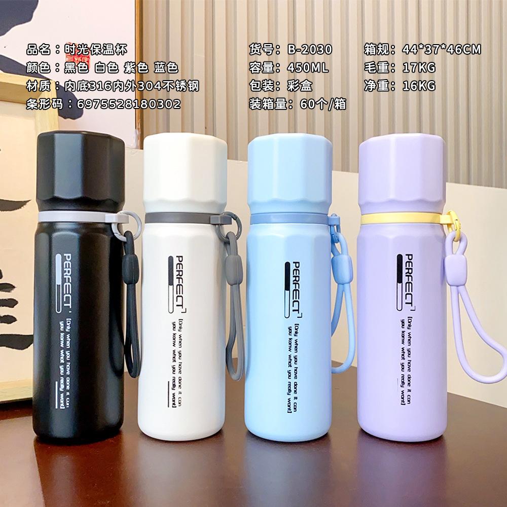 Termo de acero inoxidable 316, taza de agua de gran capacidad con letras simples, taza de agua portátil tipo bala para estudiantes, venta al por mayor