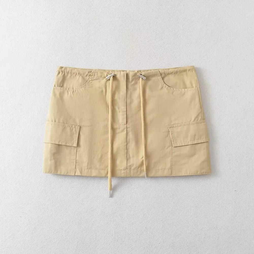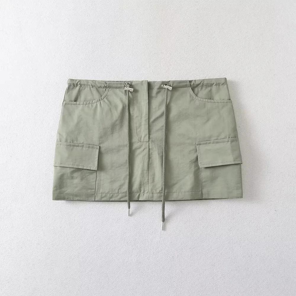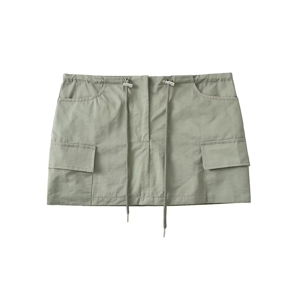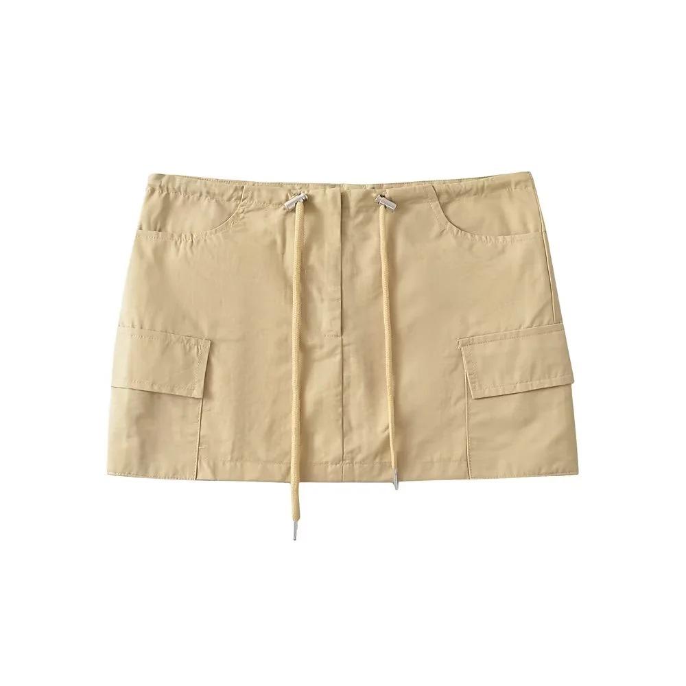 Falda de trabajo con cordón de color liso Spice Girl de verano 2023, falda corta para mujer, estilo retro americano, antideslumbrante, estilo A, a la moda