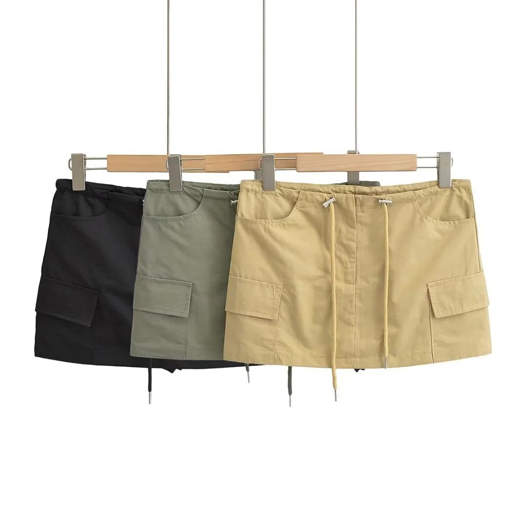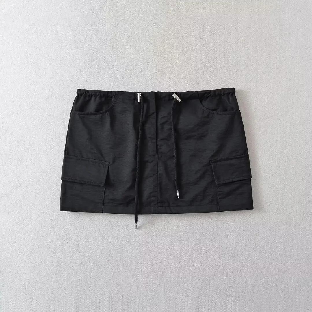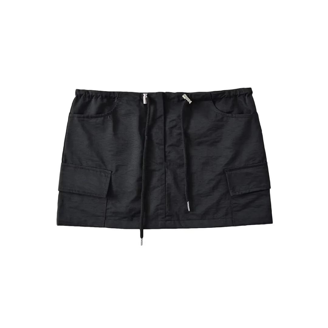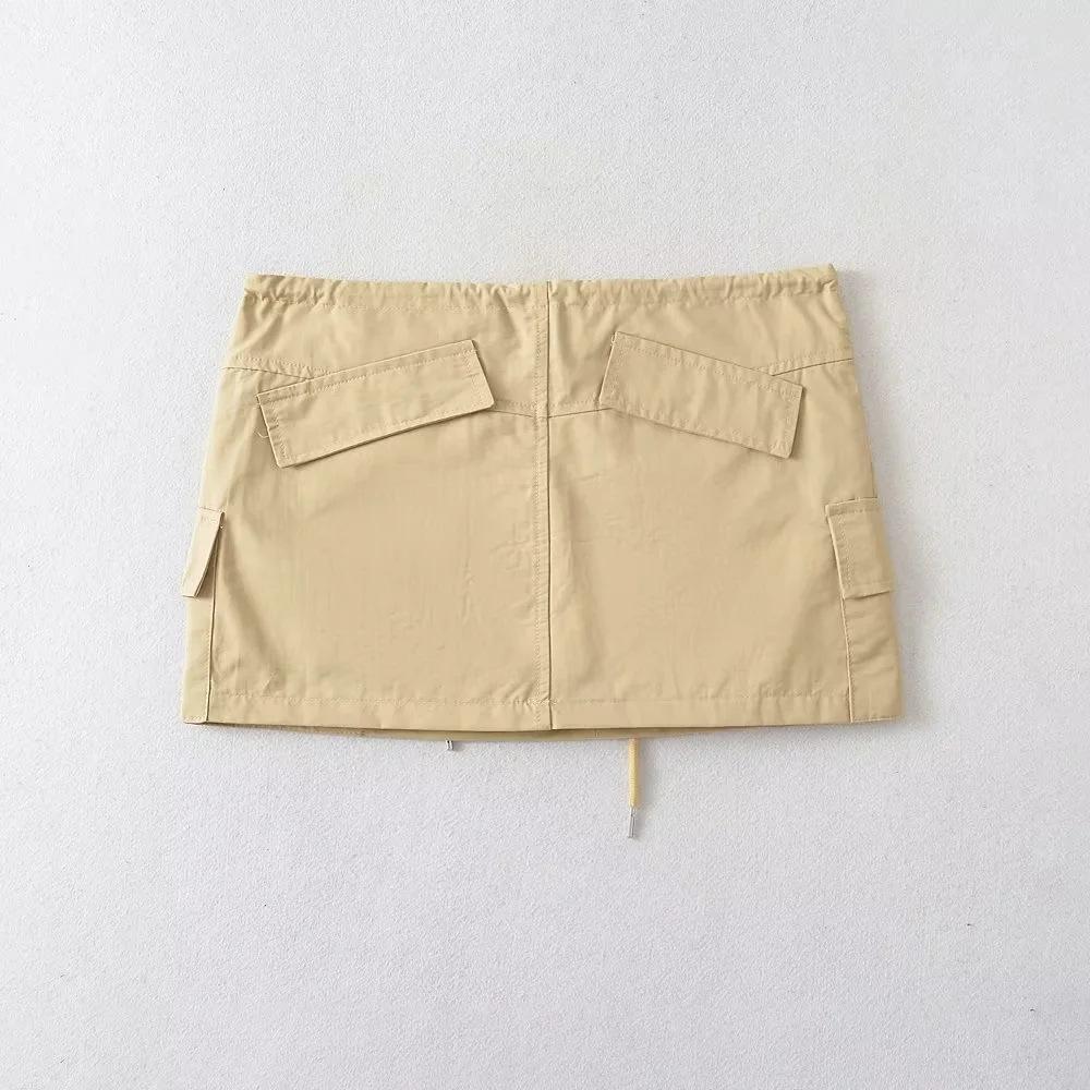 Falda de trabajo con cordón de color liso Spice Girl de verano 2023, falda corta para mujer, estilo retro americano, antideslumbrante, estilo A, a la moda
