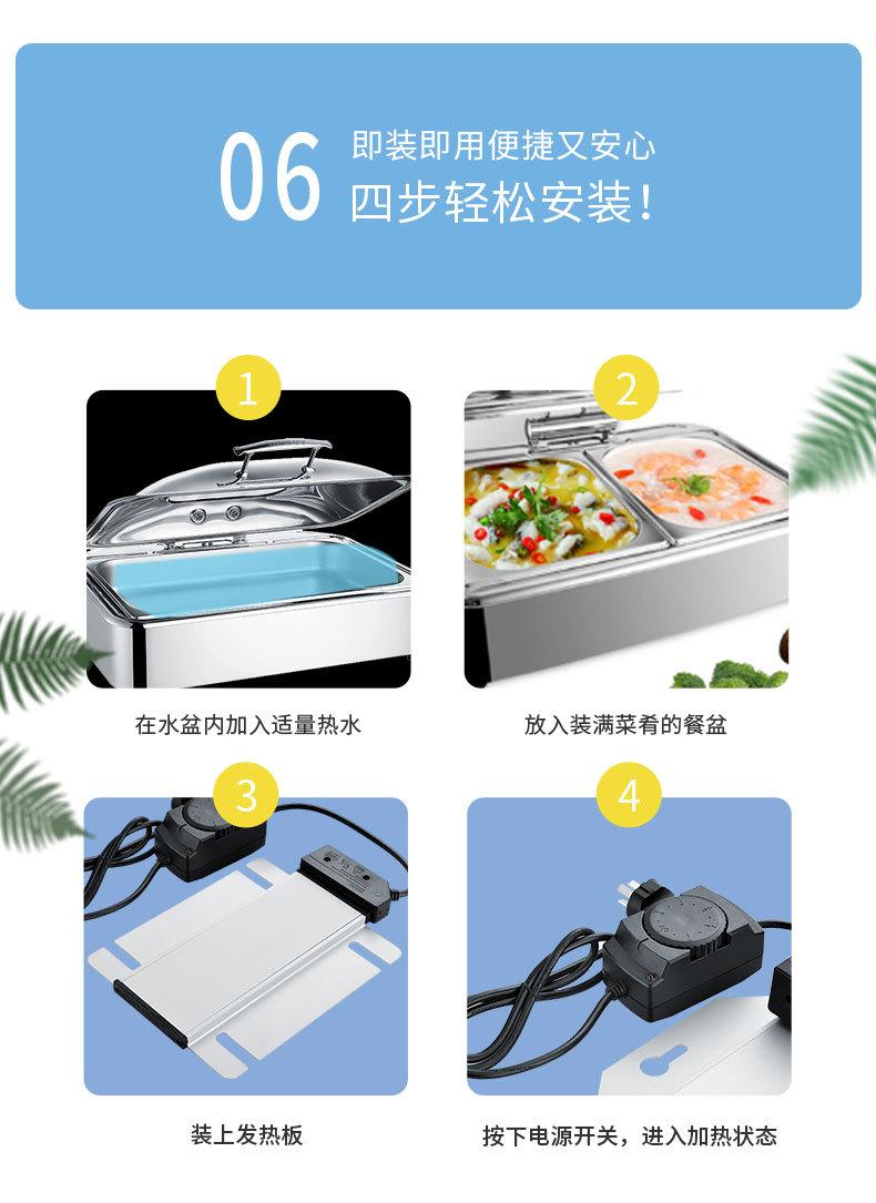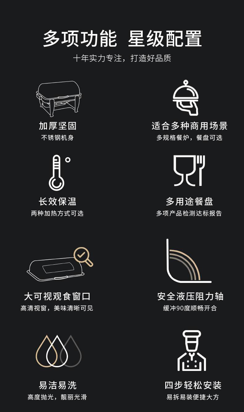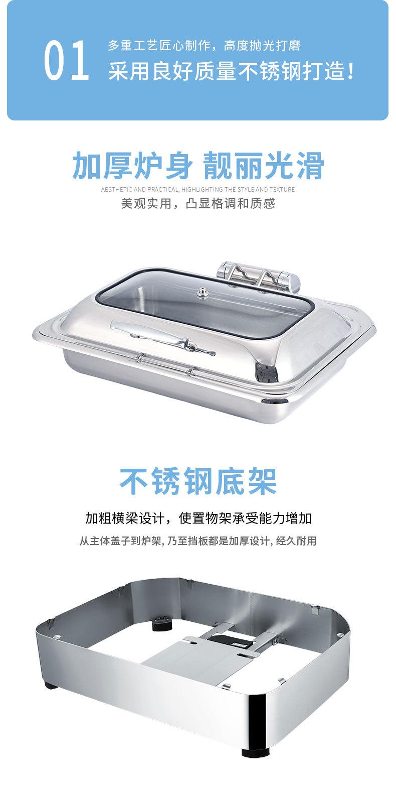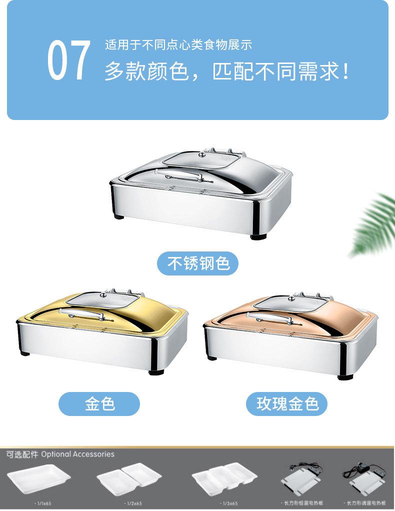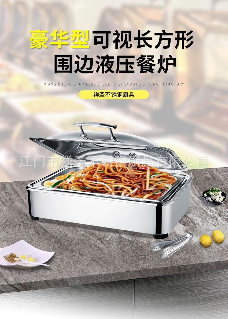 Venta Directa de Fabricante Estufa de Buffet de Acero Inoxidable Gran Capacidad 9L Comercial Visual Lujo Rectangular Aislamiento Térmico y Calentamiento