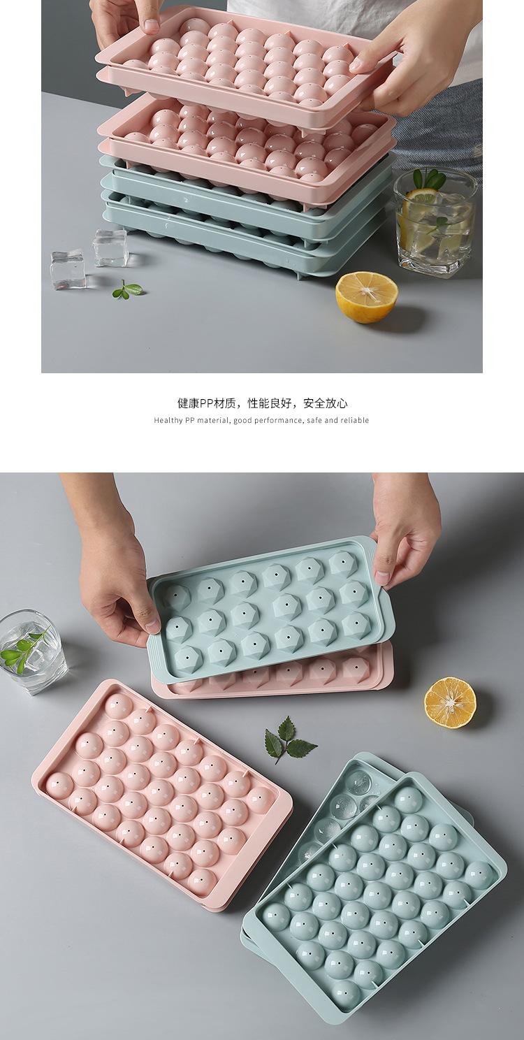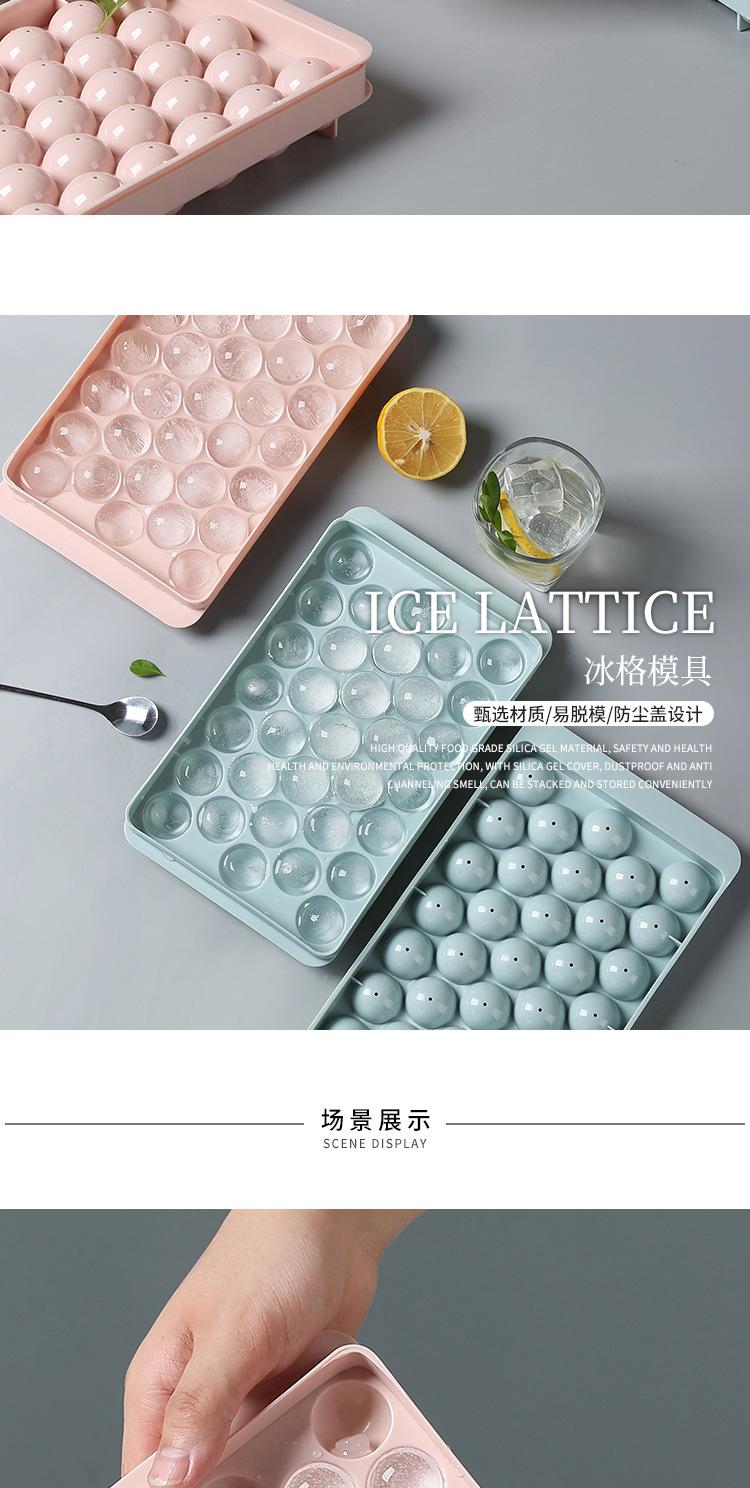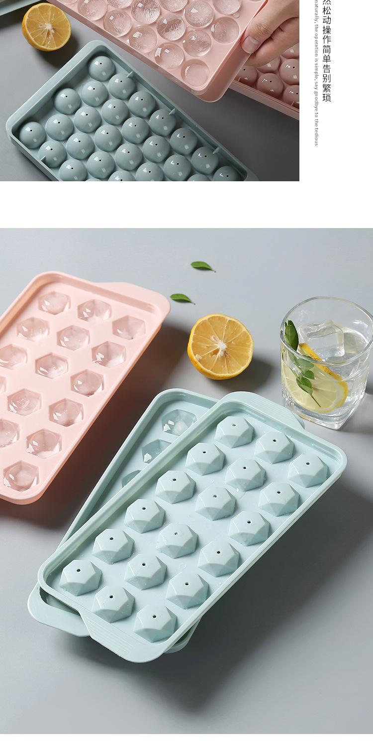 Molde de plástico para cubitos de hielo en forma de bola en forma de T con tapa para refrigerador, molde para bolas de hielo, caja de hielo, molde redondo para hielo, caja de hielo