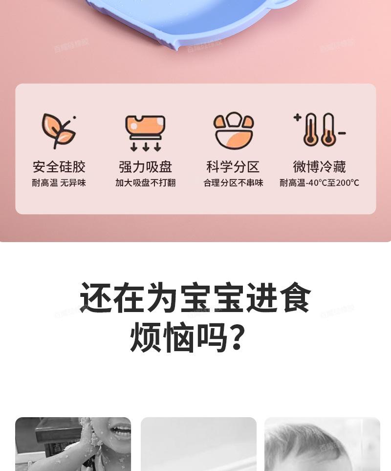 Suction cup eating divided children's silicone dinner plate