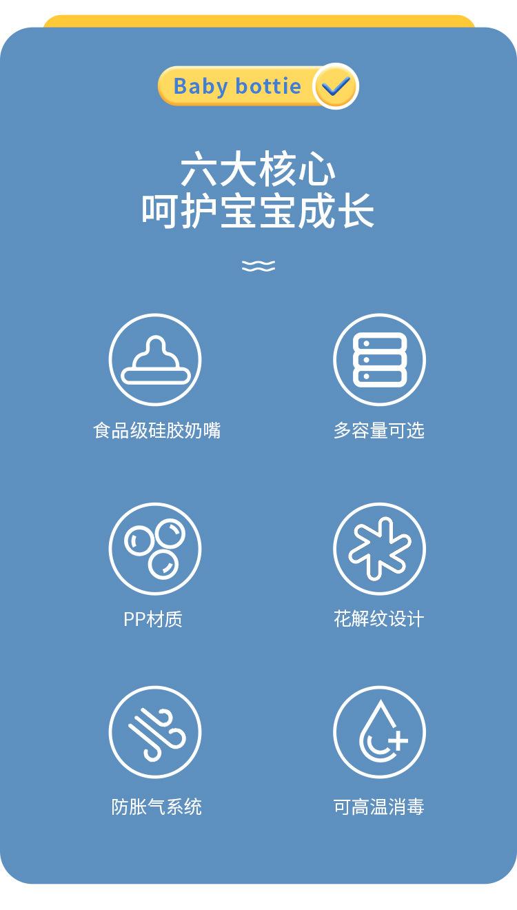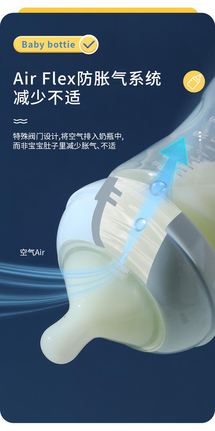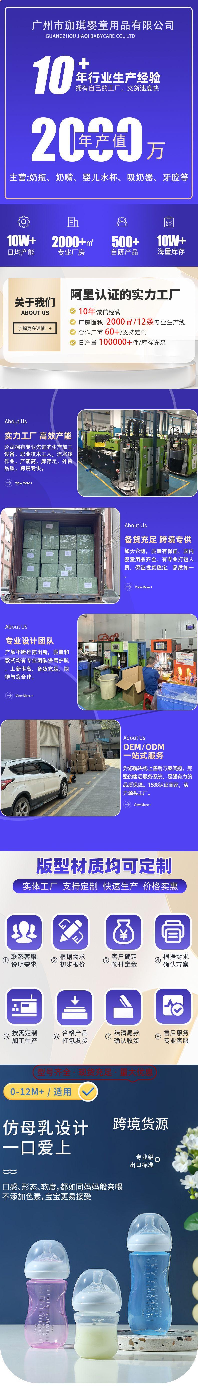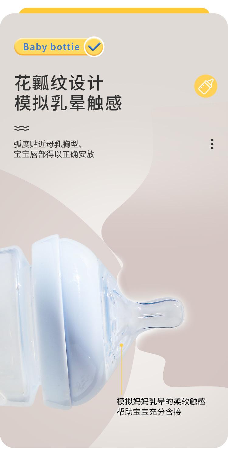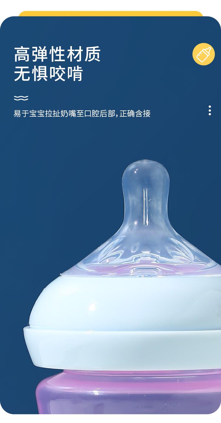 Biberón de polipropileno de boca ancha para bebé, venta directa de fábrica, venta al por mayor, biberón de plástico con asa de mano para madre y bebé.