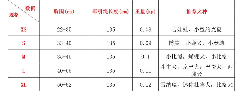 Tabla de tallas de arnés para mascotas (Medición manual, ligero error, solo como referencia)