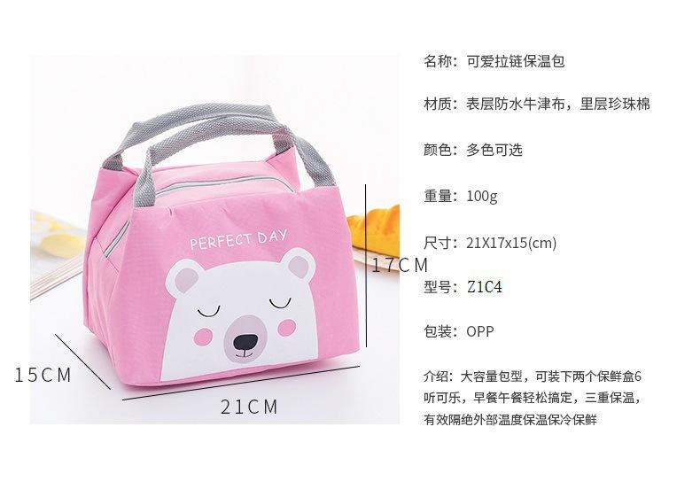 Bolsa de almuerzo con dibujos animados para estudiantes, portátil, con cremallera, de aluminio grueso, para conservar el calor, ideal para almuerzos, fiambreras, picnics
