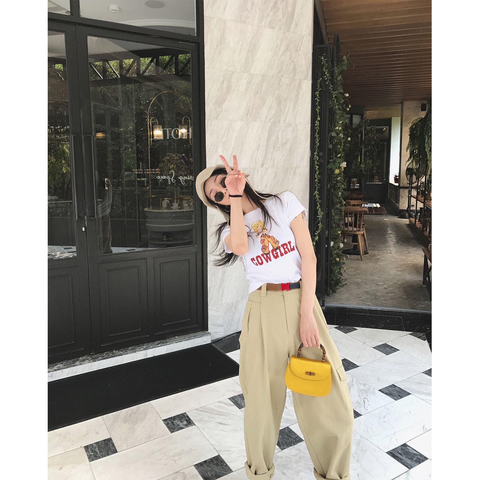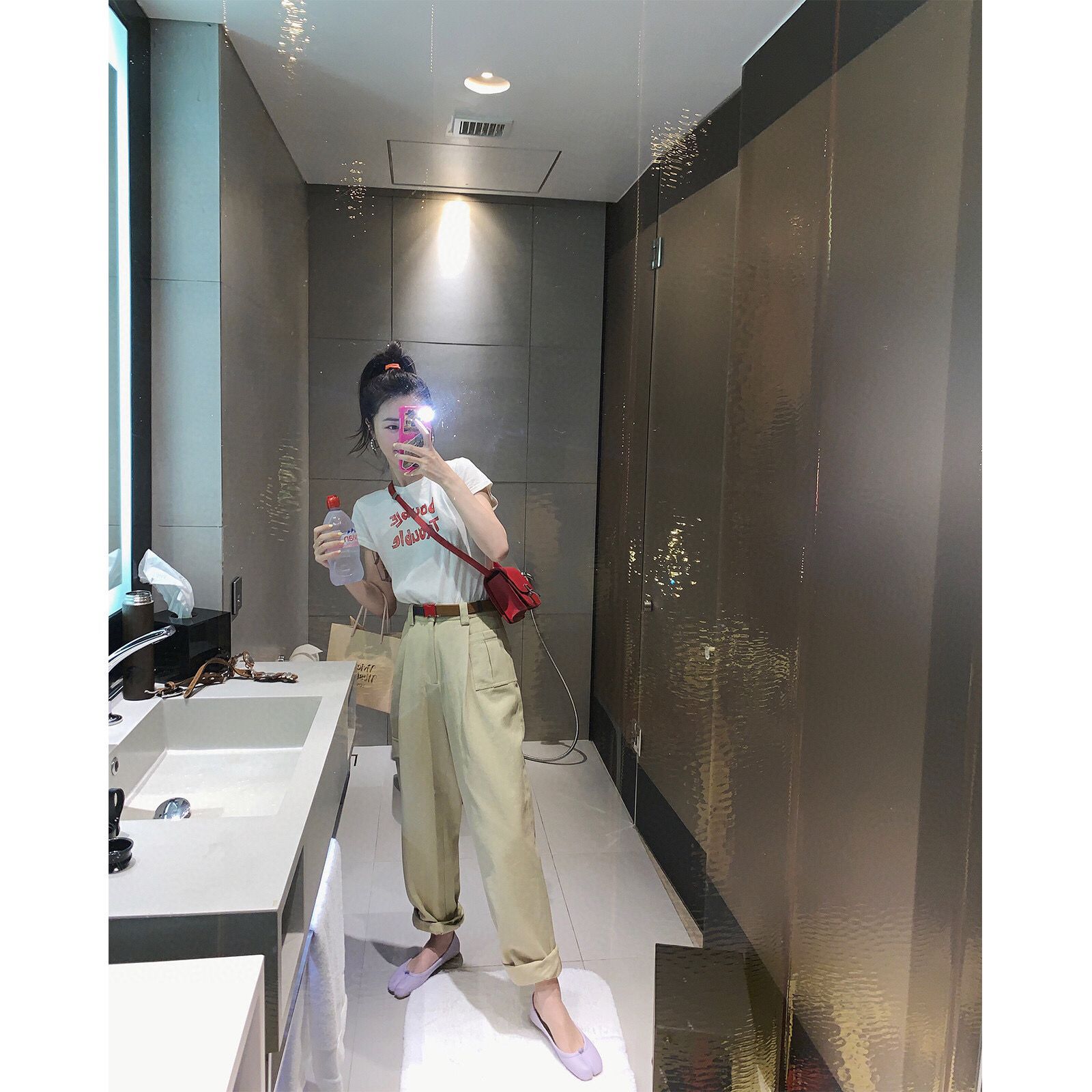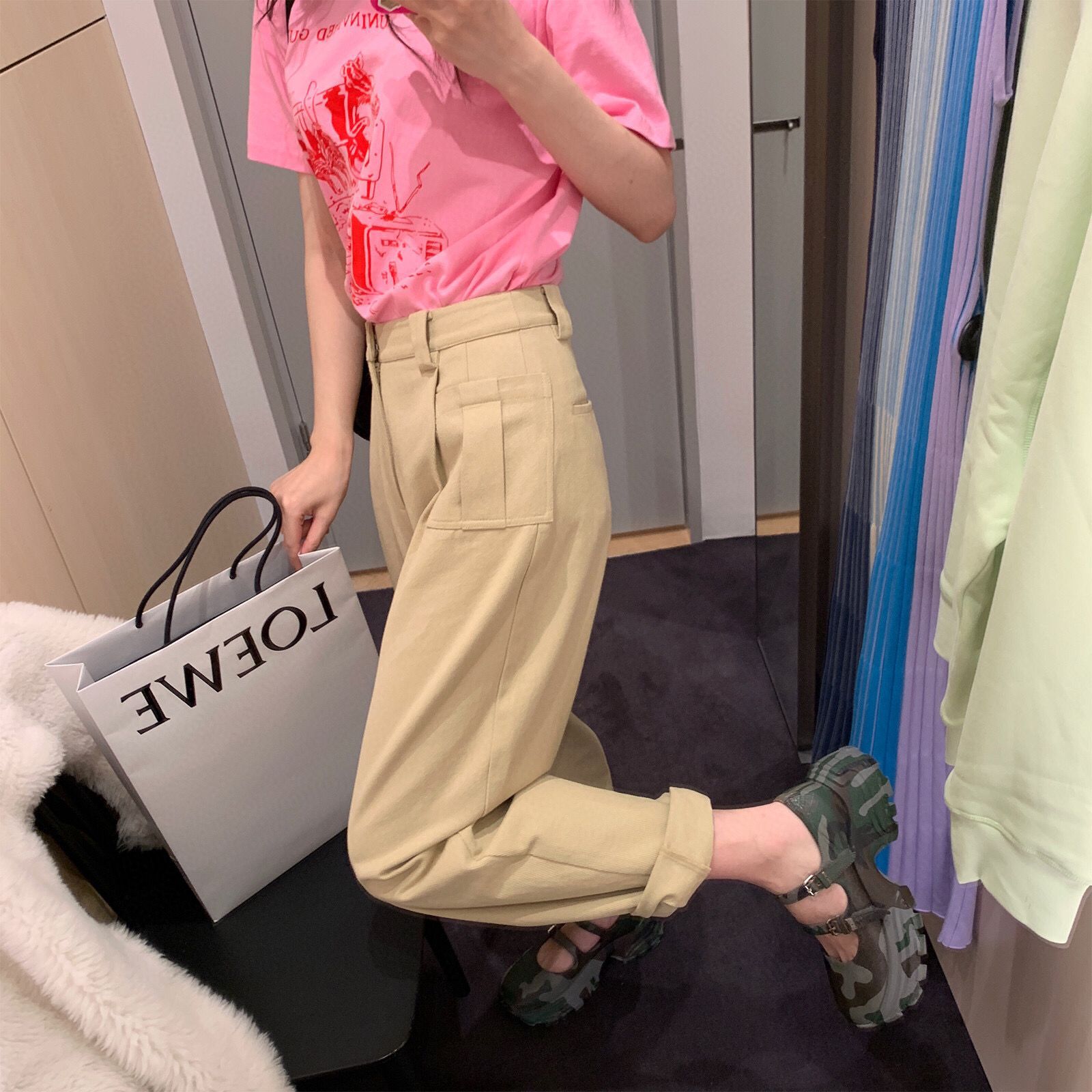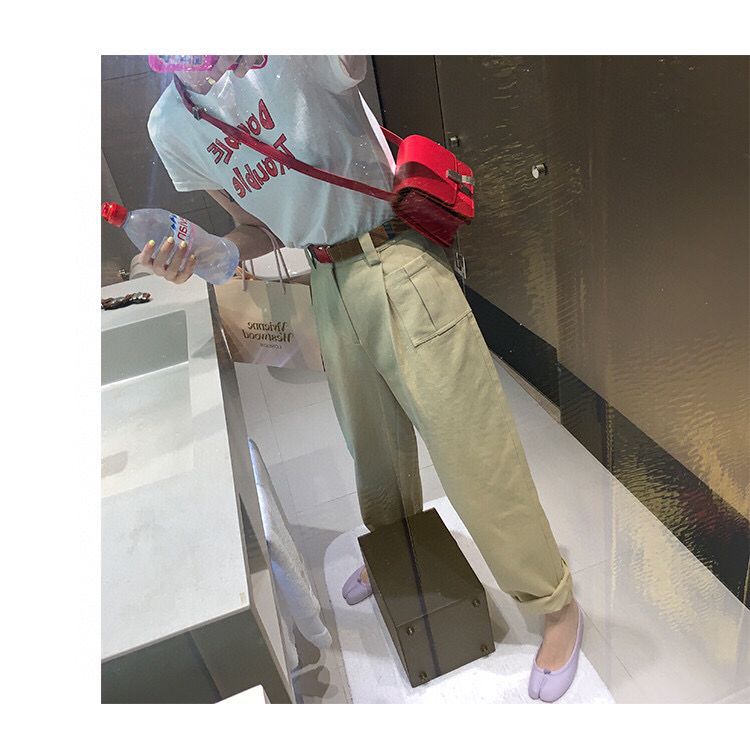 Pruébalo en S: cintura ligeramente suelta, caderas sueltas, largo del pantalón hasta el tobillo. |