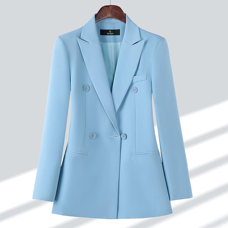 Chaqueta de Traje Azul Casual Holgada Estilo Primavera y Otoño Transfronterizo para Mujer Lujo Ligero Doble Botonadura Versátil Traje Estilo Británico en Stock