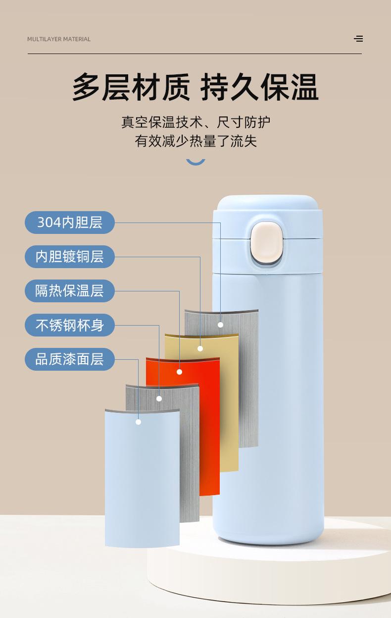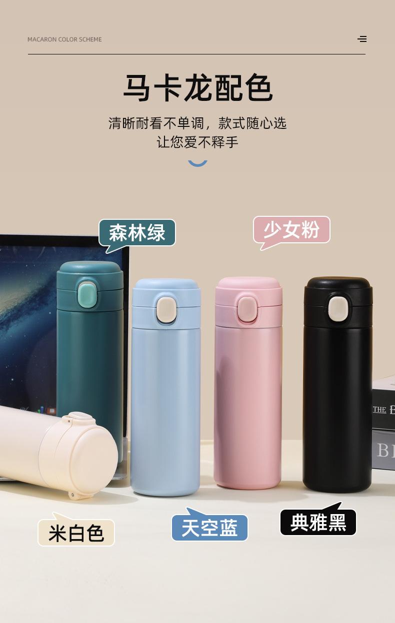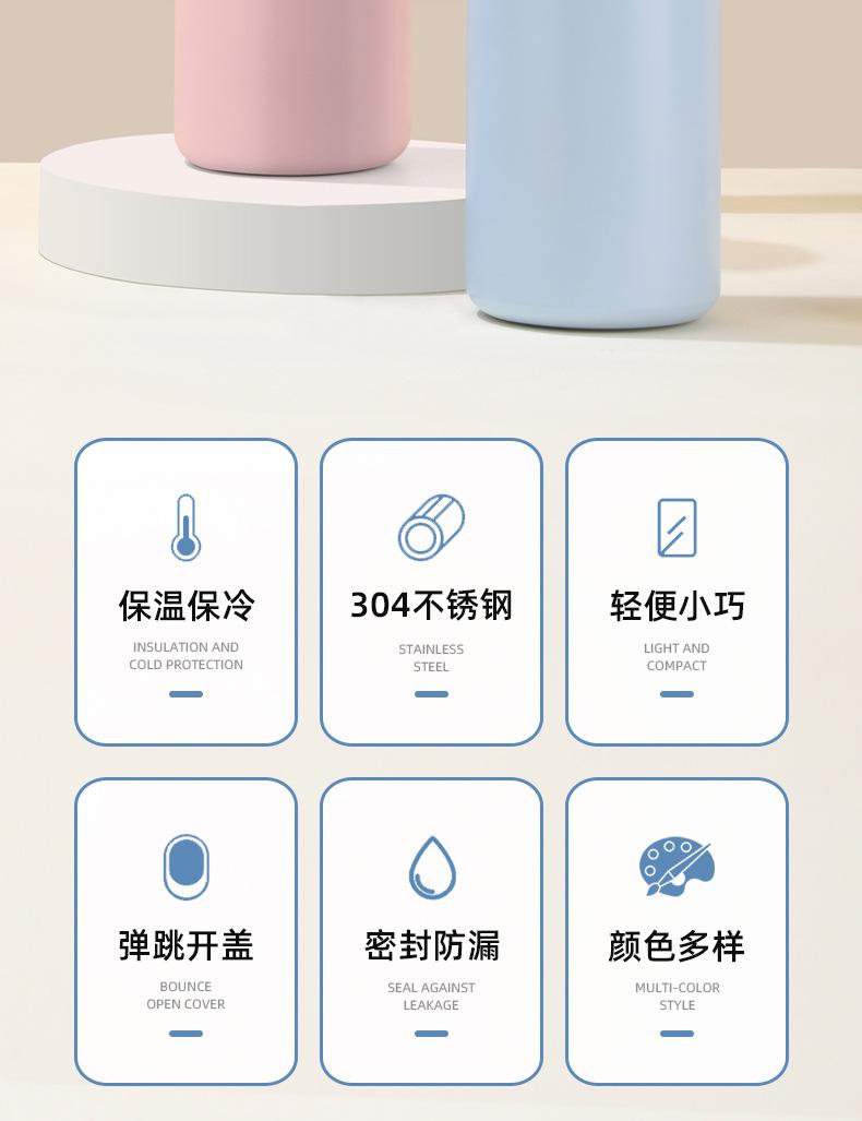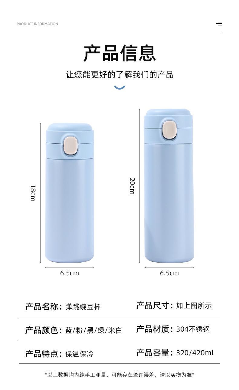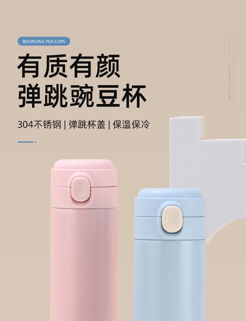 Taza de guisante sencilla y engrosada de acero inoxidable 304 con tapa emergente, botella termo recta portátil aislada, taza de regalo