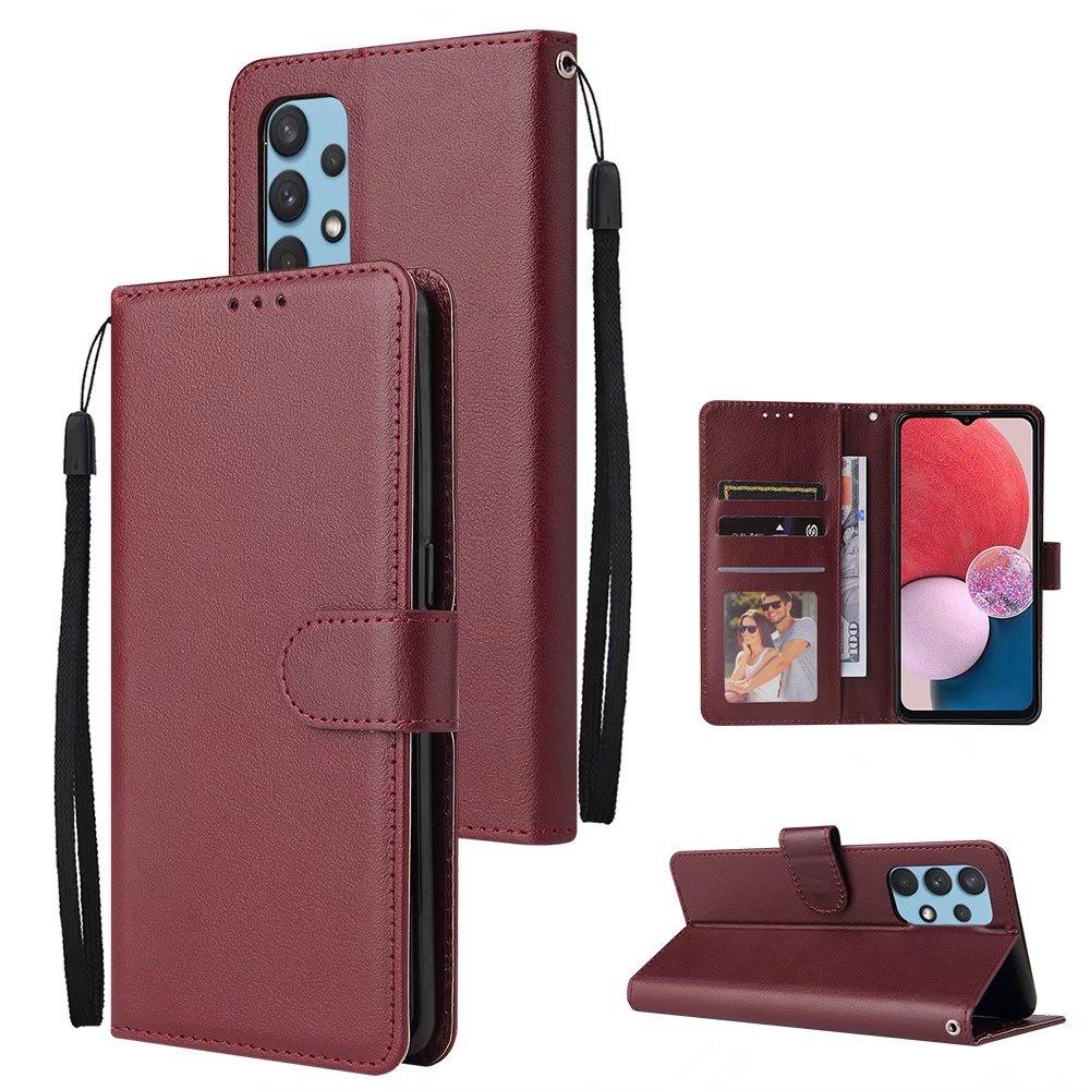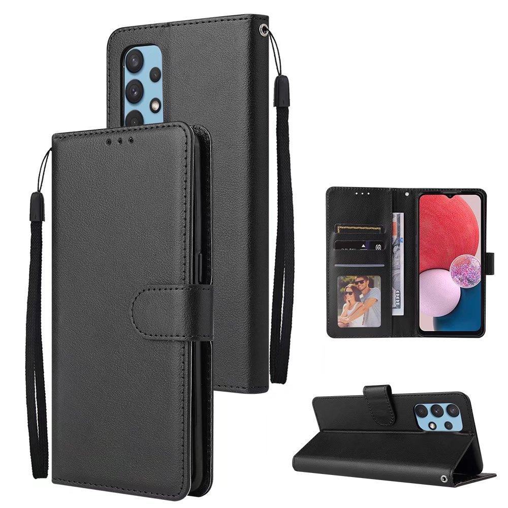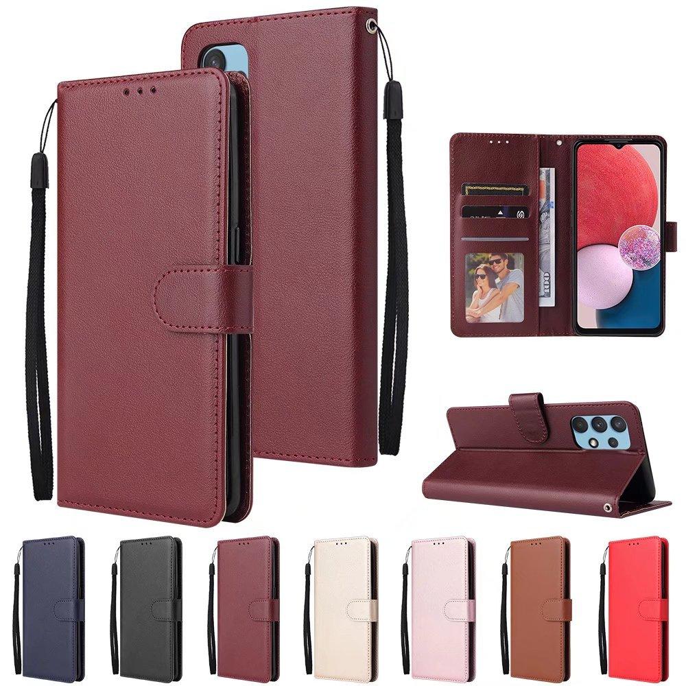 Funda de cuero para teléfono móvil Samsung A25, color sólido, con tres marcos para fotos y soporte para billetera, funda protectora con patrón de cuero S24.
