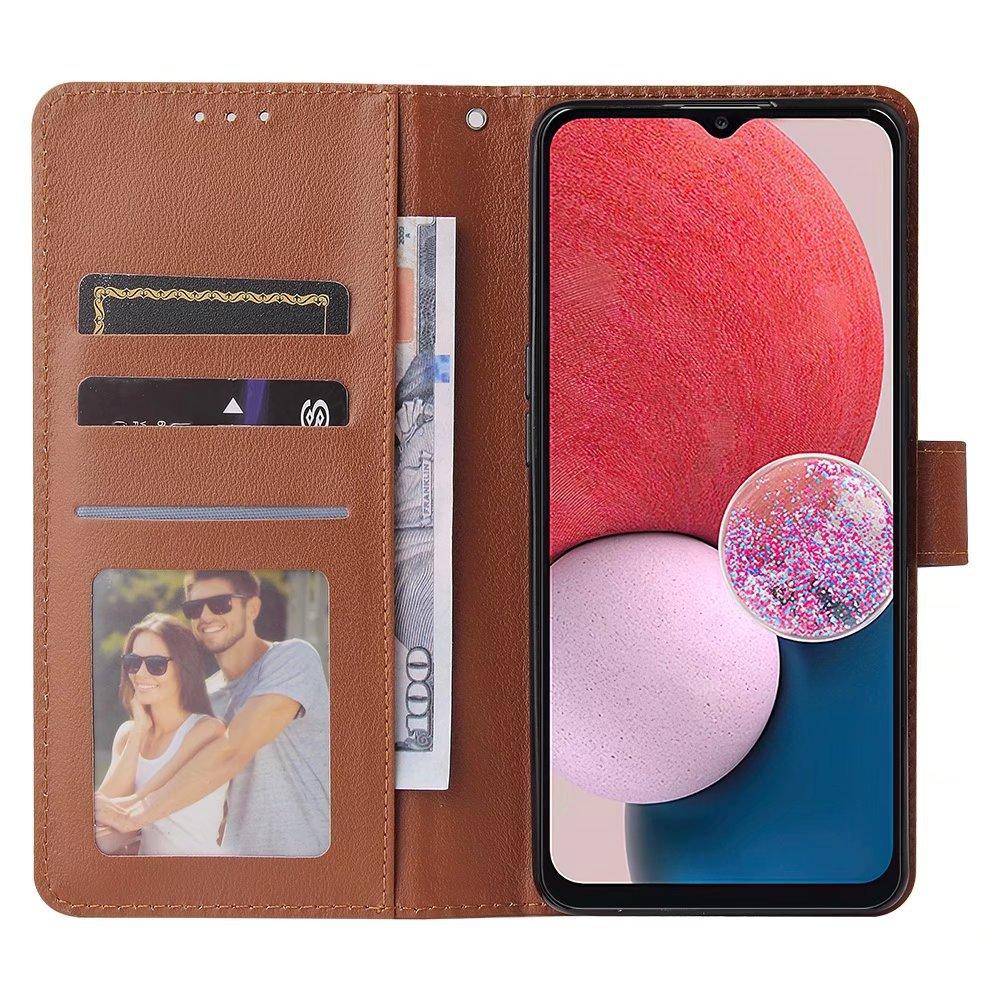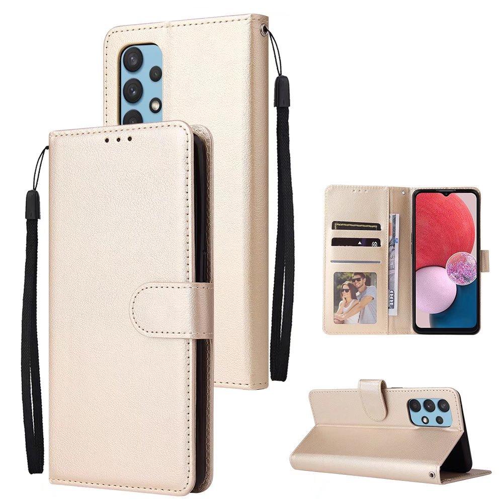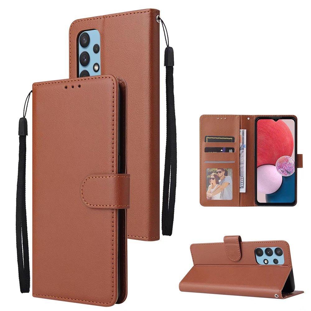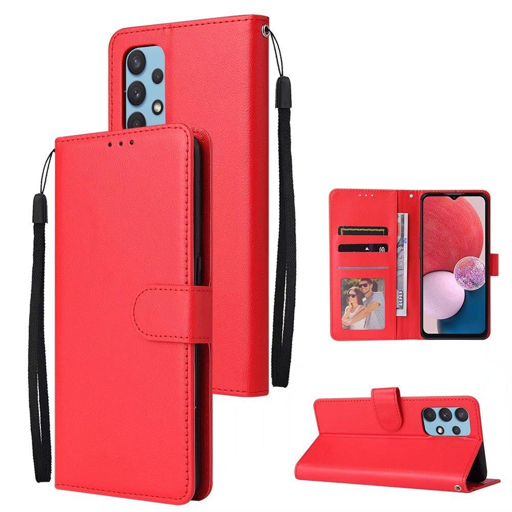 Funda de cuero para teléfono móvil Samsung A25, color sólido, con tres marcos para fotos y soporte para billetera, funda protectora con patrón de cuero S24.