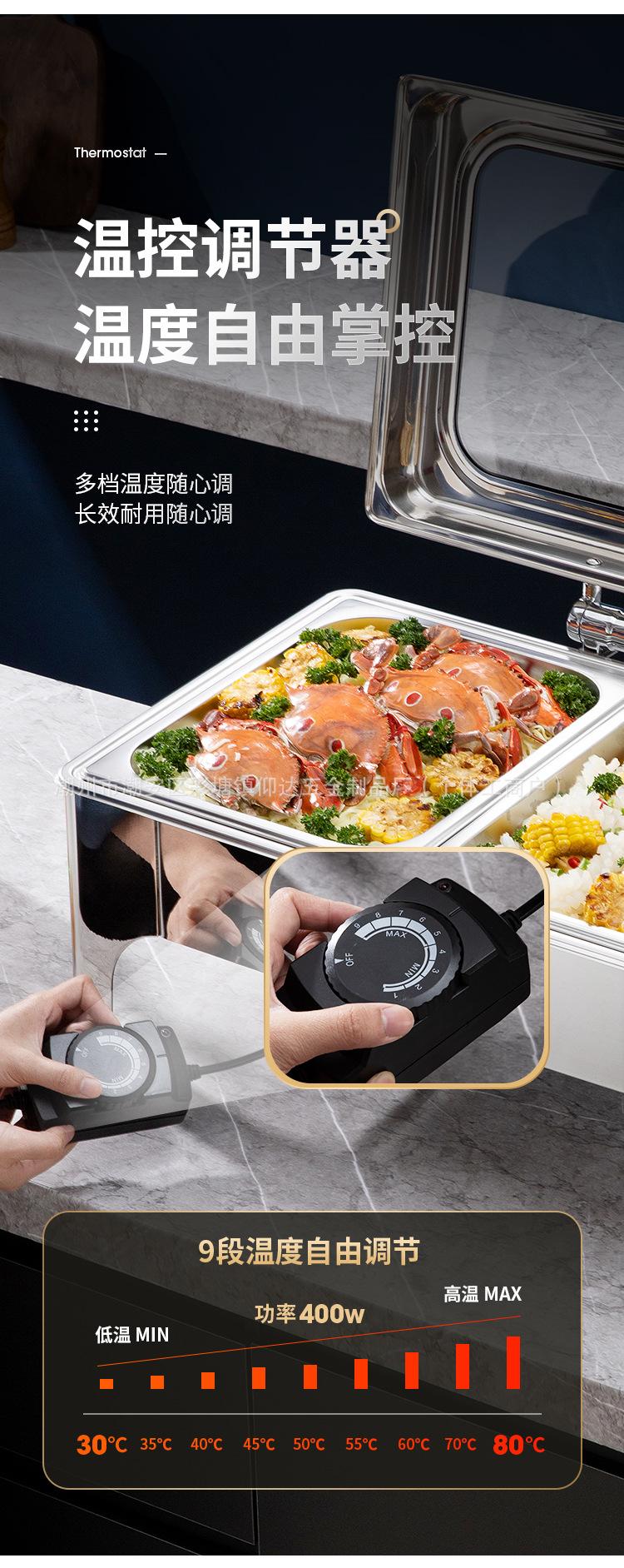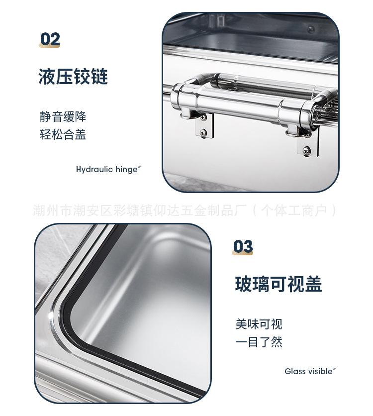 Estufa de buffet de acero inoxidable para hotel, restaurante, calefacción eléctrica, estufa aislante, estufa de buffet con tapa visual, estufa de desayuno, vajilla