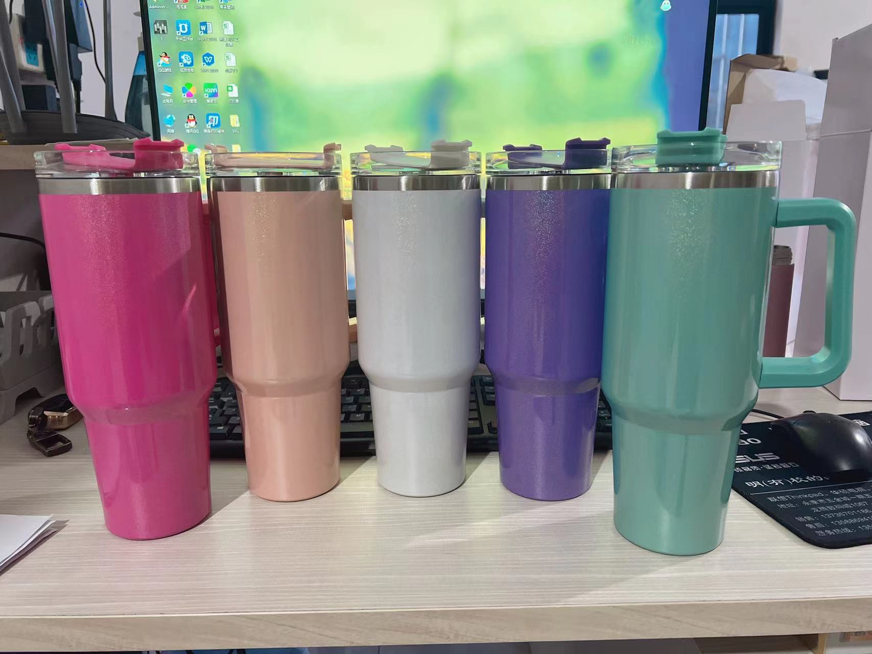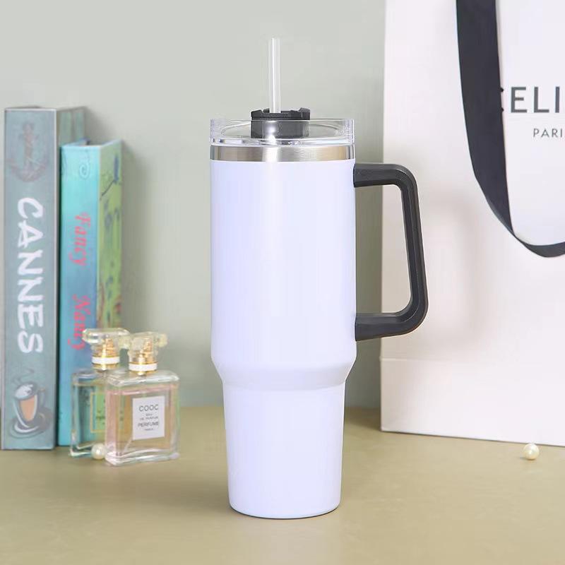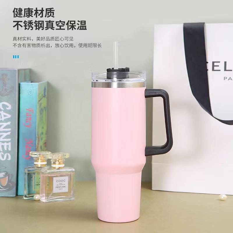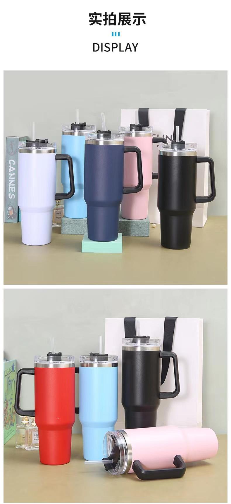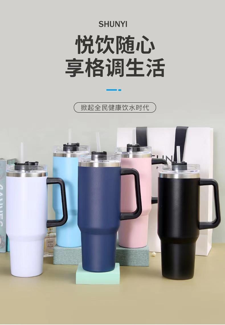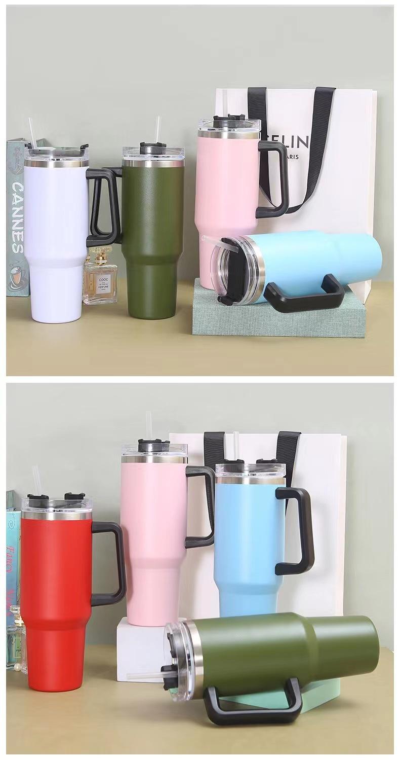 Taza para coche de acero inoxidable 304 de doble capa de 40 oz con asa, taza para hielos, taza con tubo de succión, taza térmica para frío y calor, taza para café