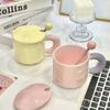 Taza de Cerámica al por Mayor con Tapa Taza de Agua Taza de Té Taza Desayuno Taza para Bebidas Viento Ins para Niñas Taza Emocionada para Beber
