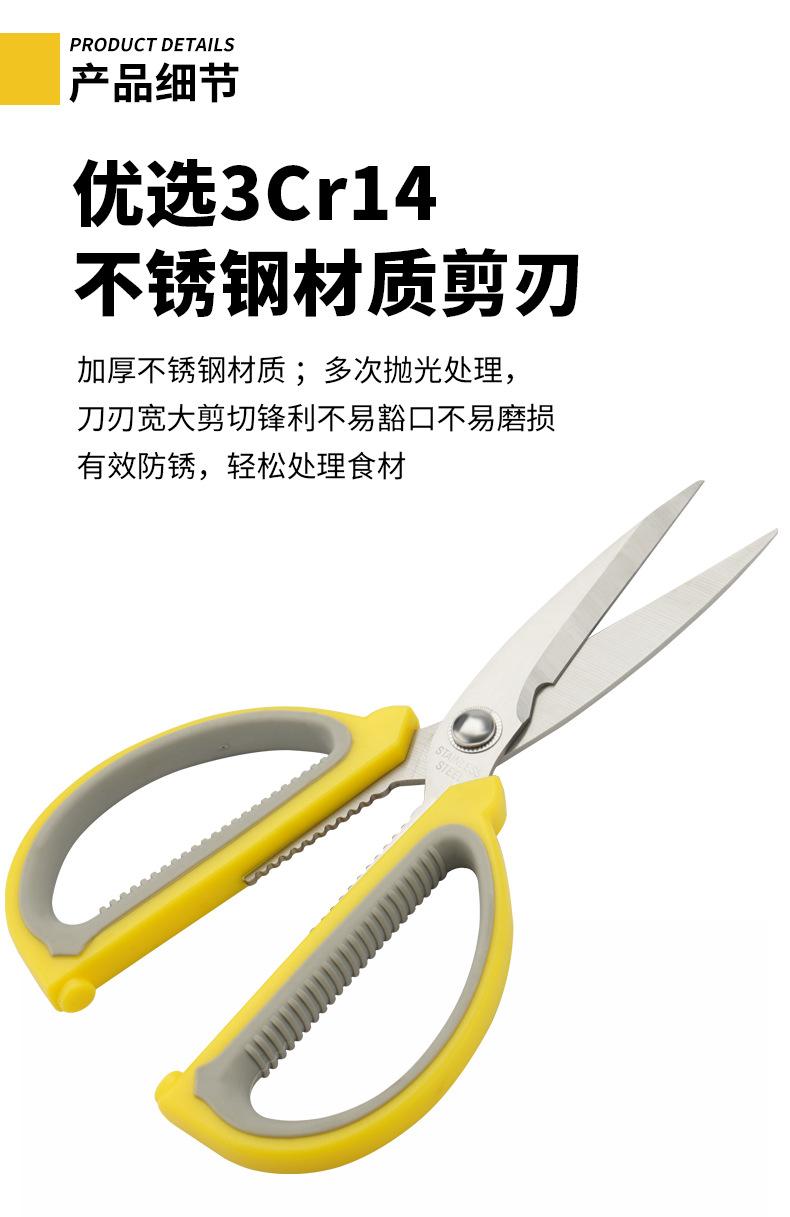Tijeras de cocina de acero inoxidable para el hogar, con mango de plástico, para cortar espina de pescado, cuero, sastre y tela.
