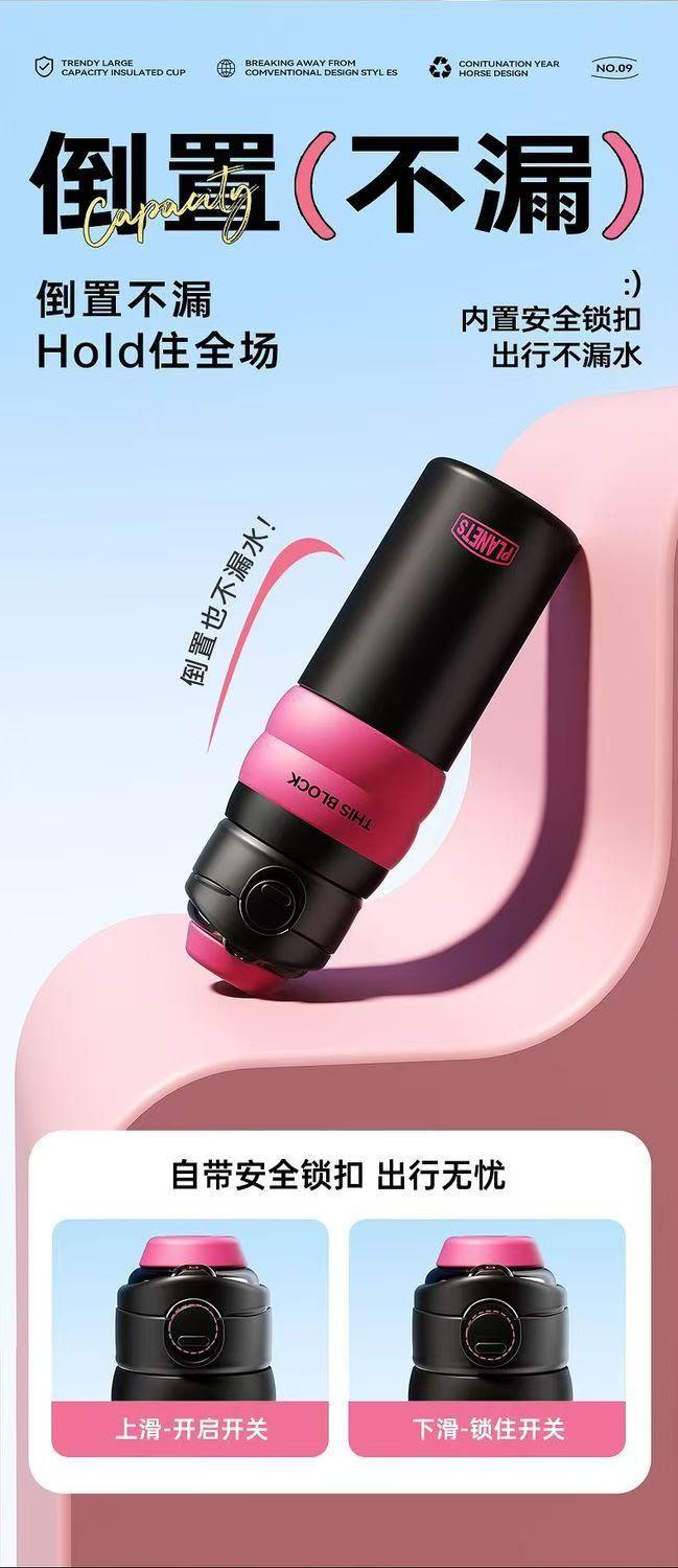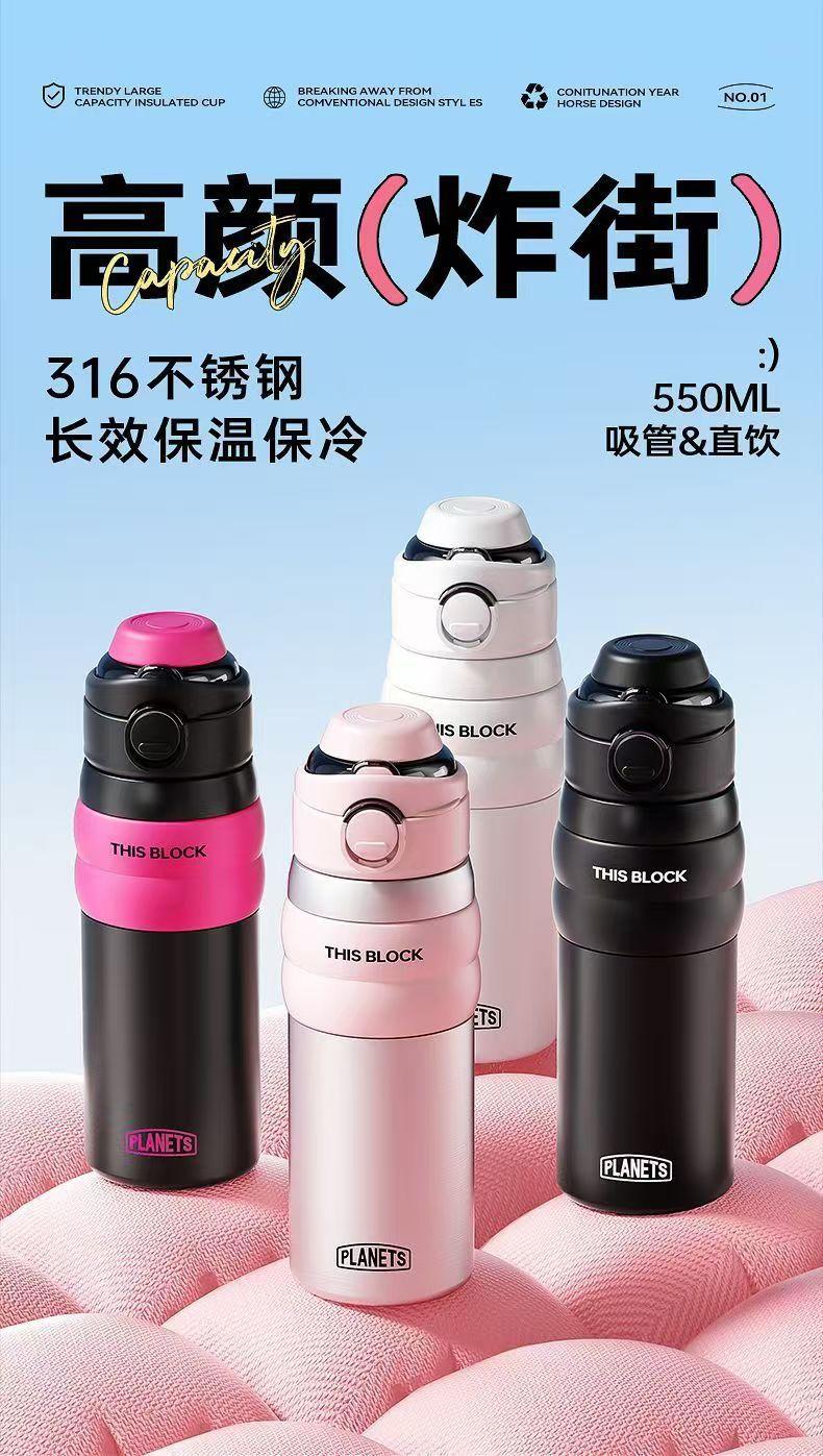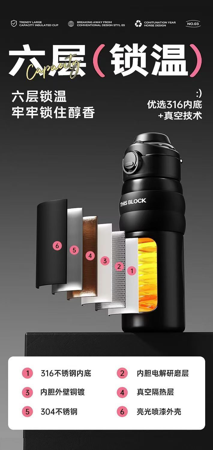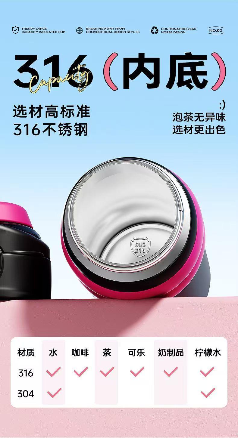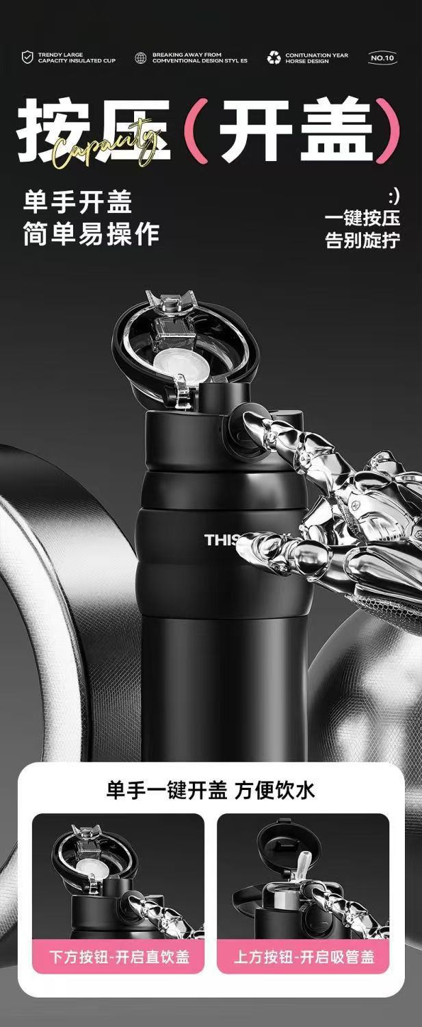 Termo portátil de acero inoxidable 316 para bebidas dobles, botella deportiva con ventosa de alta calidad para hombres y mujeres.