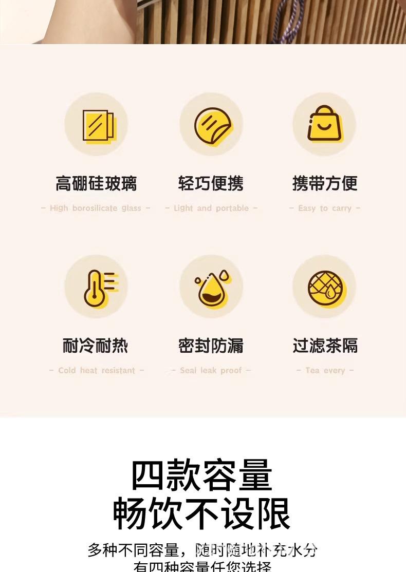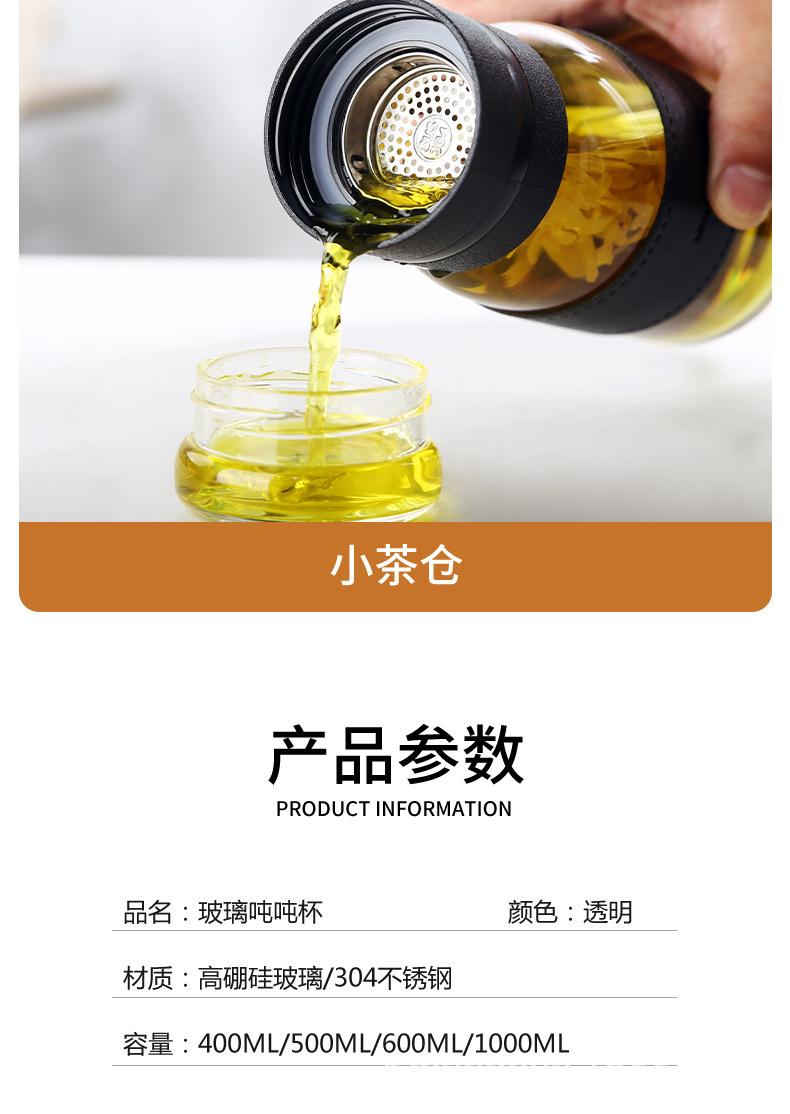 Taza de Vidrio Taza Separadora de Té y Agua Taza de Té Portátil Sellada de Gran Capacidad Taza Ton Aislamiento Térmico Taza Antiescaldante