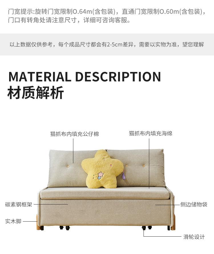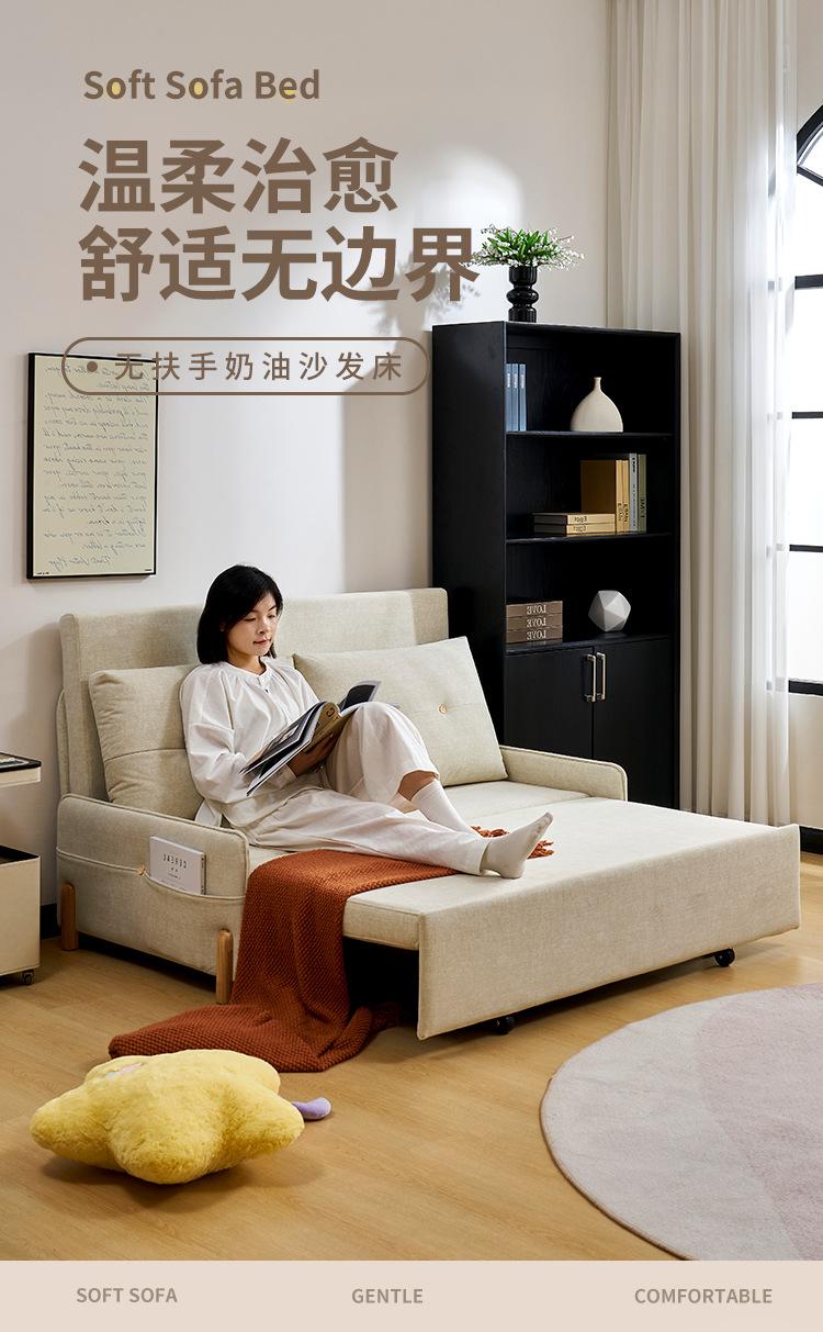Nuevo Sofá Cama Plegable de Tela para Arañar Gatos de Doble Uso de Una Pieza Estilo Crema para Sala de Estar de Apartamento Pequeño Balcón Sofá Retráctil