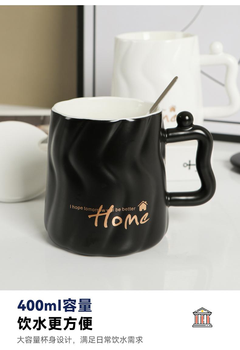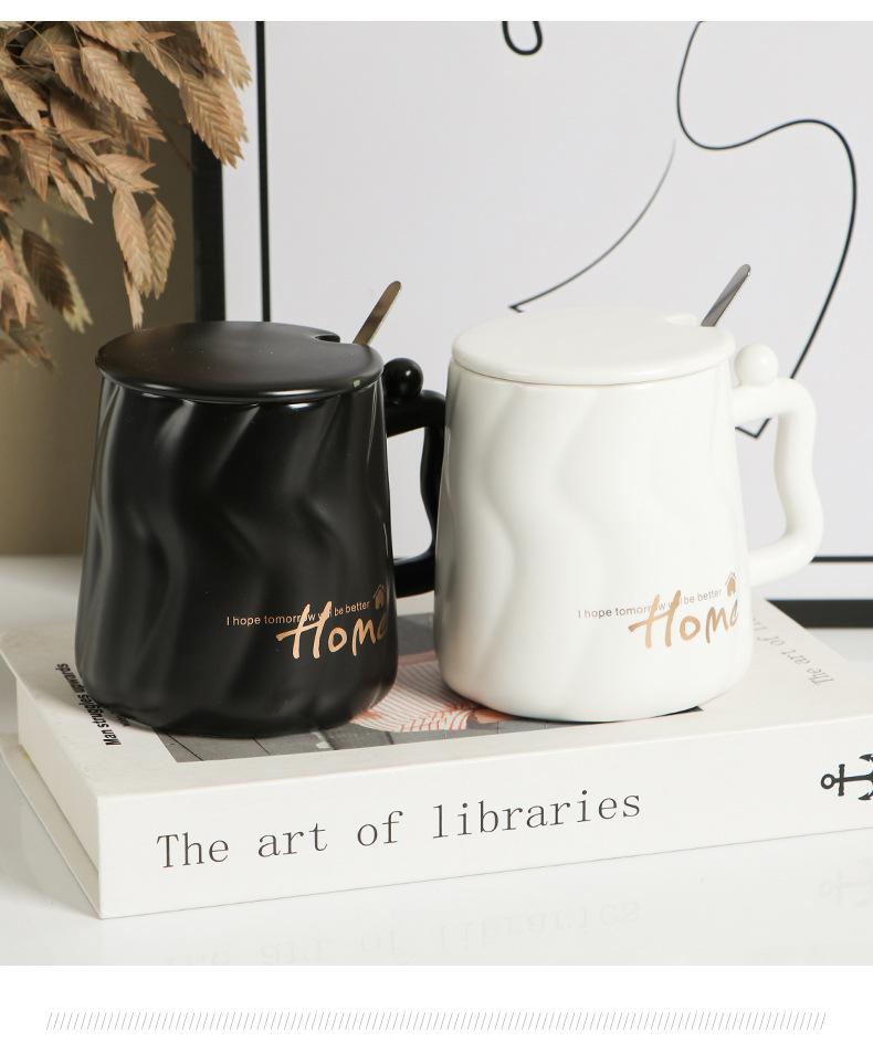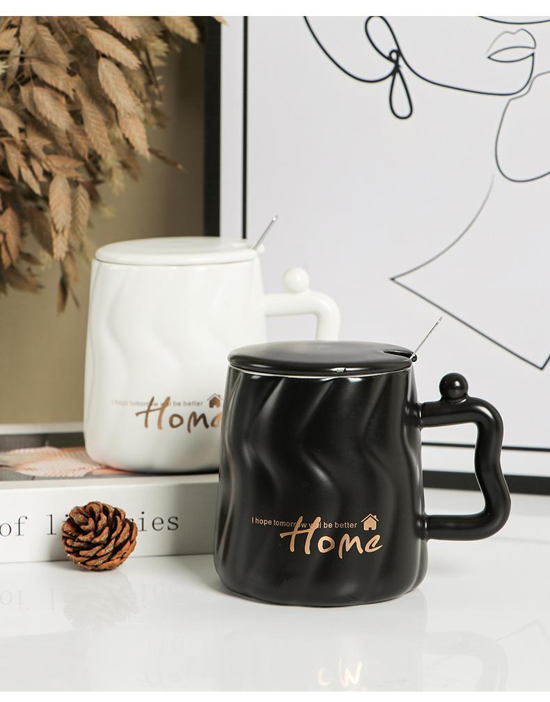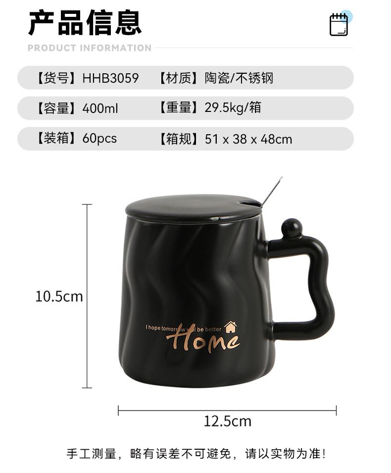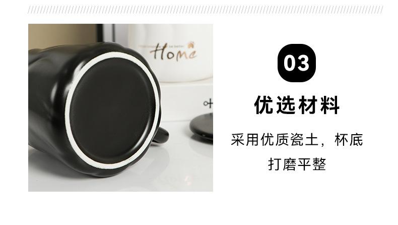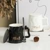 Taza de cerámica negra con tapa y cuchara taza de gran capacidad taza para pareja taza de café de oficina taza para agua taza para leche