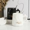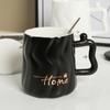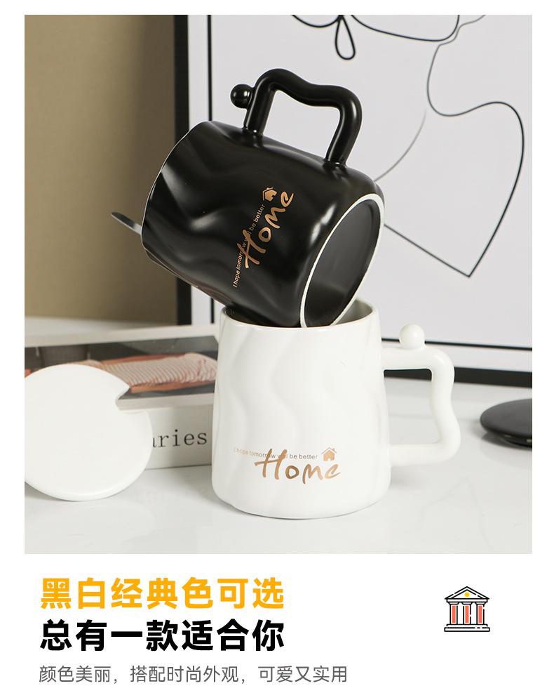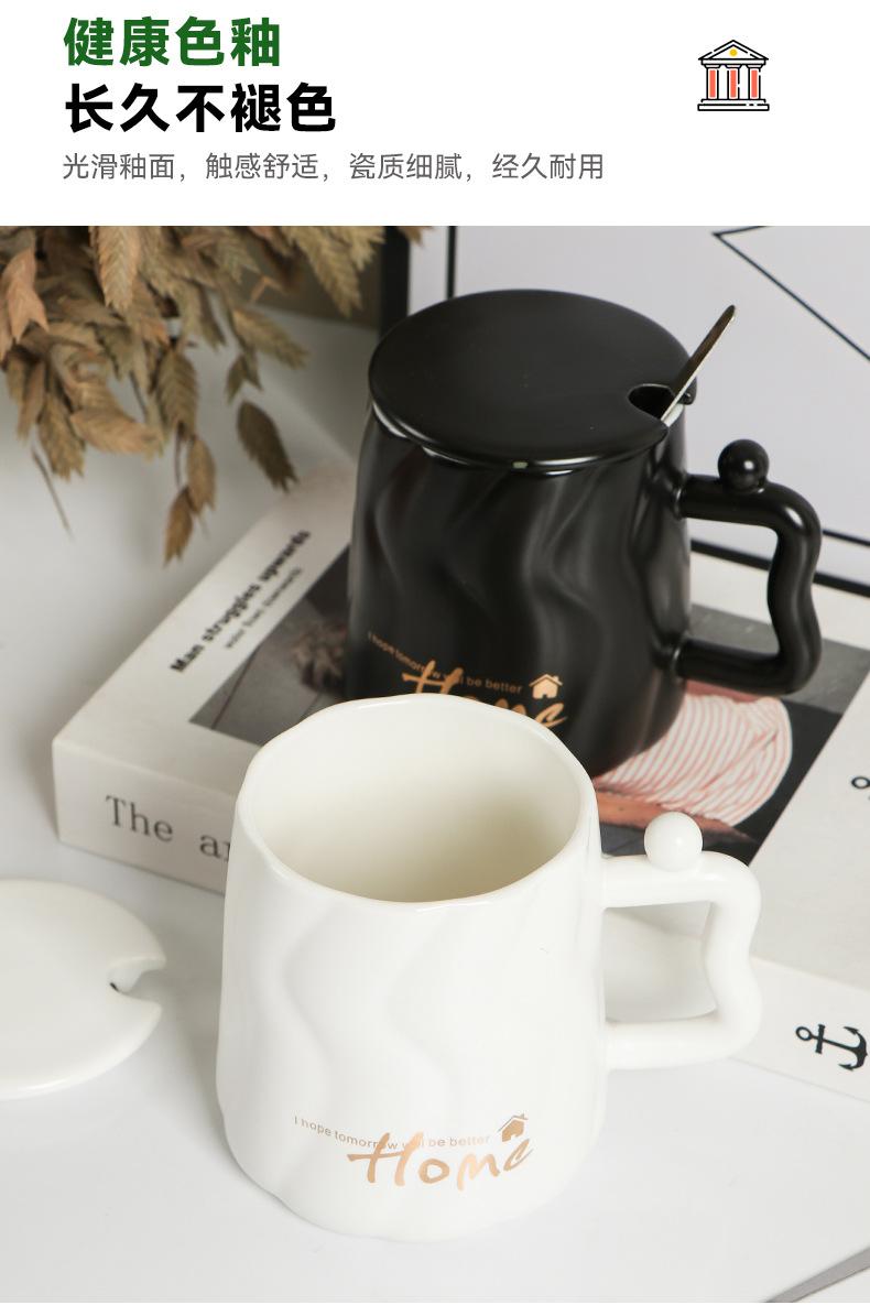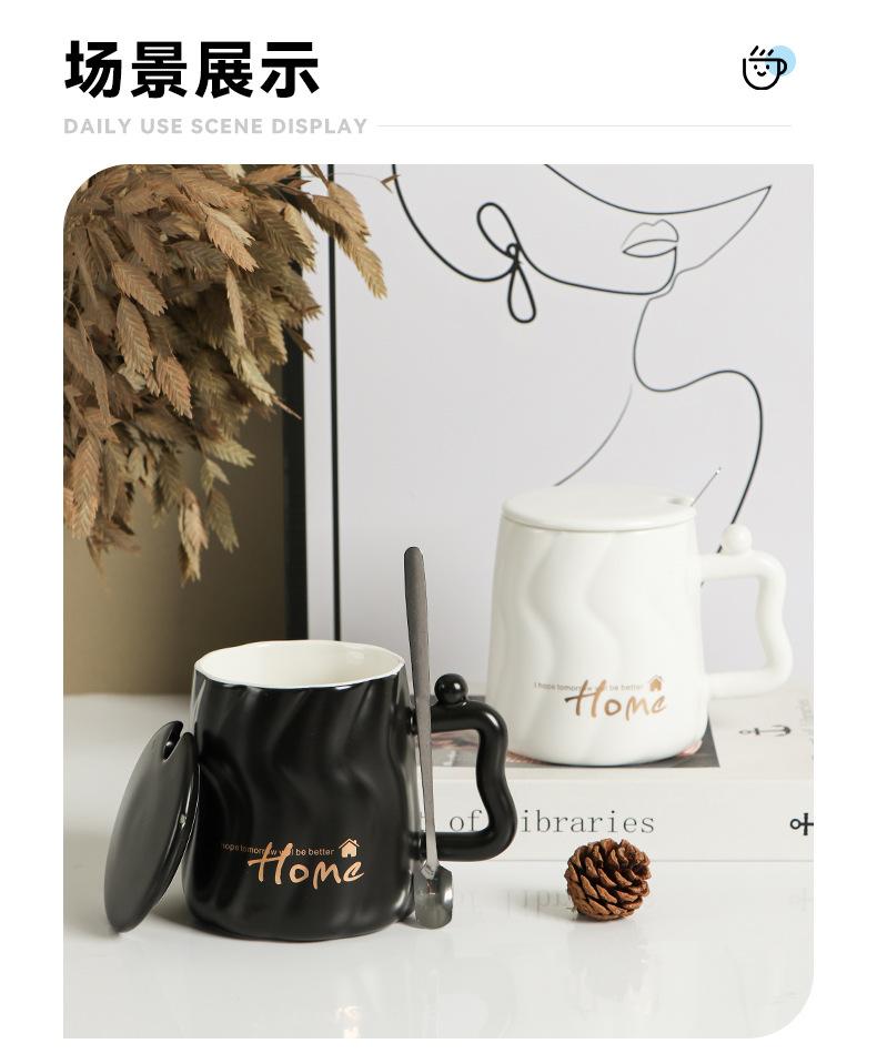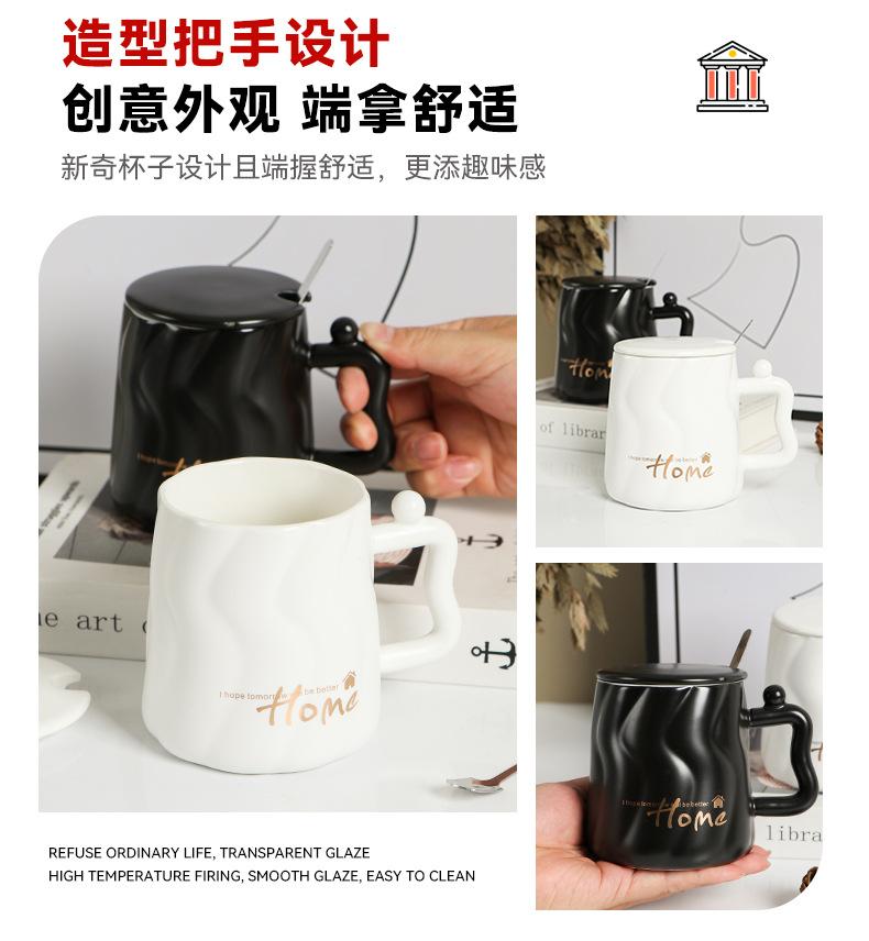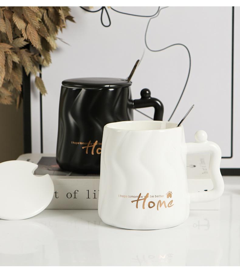 Taza de cerámica negra con tapa y cuchara taza de gran capacidad taza para pareja taza de café de oficina taza para agua taza para leche