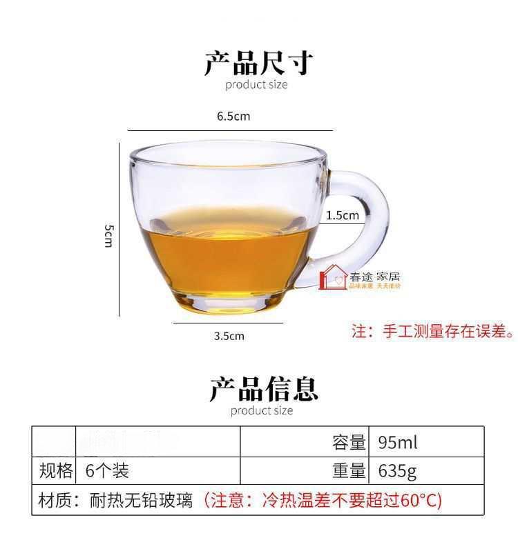 Vaso Taza de Té Pequeña de Vidrio Resistente al Calor para el Hogar Juego de Té Kung Fu Traje Transparente Taza Individual Engrosada con Asa ml