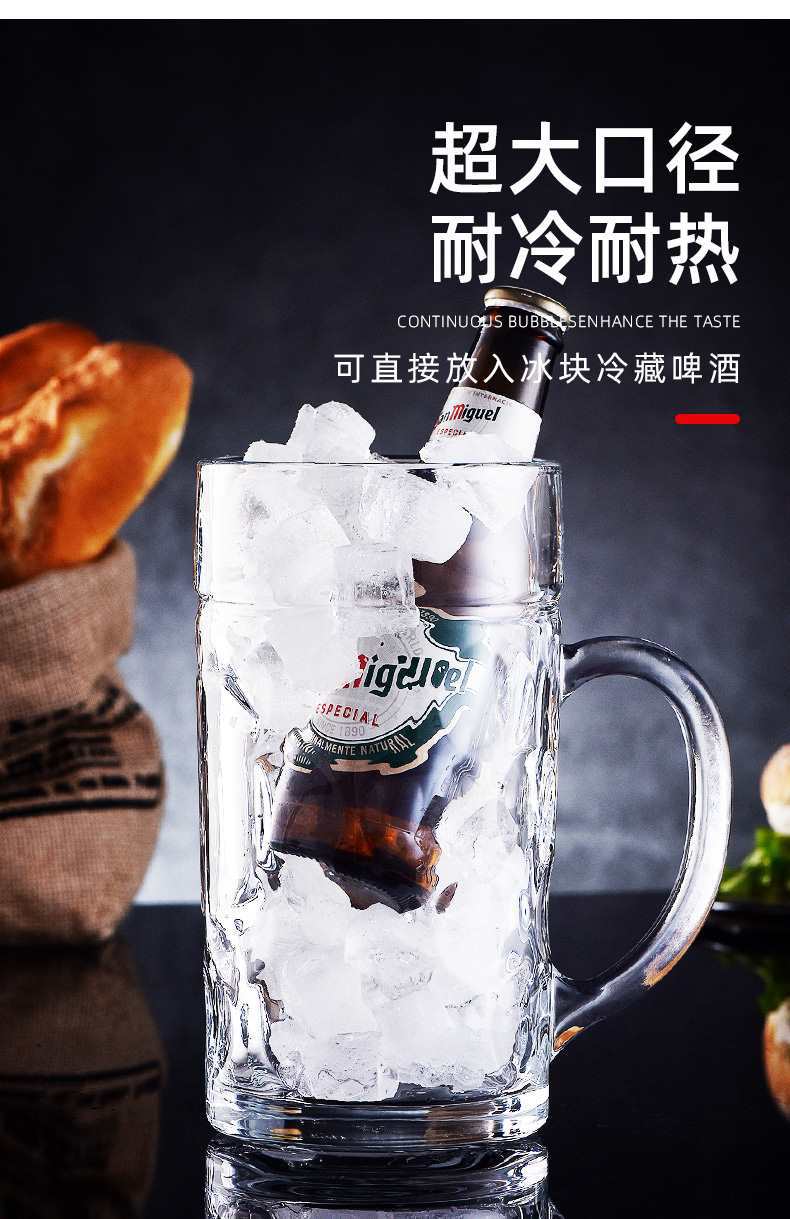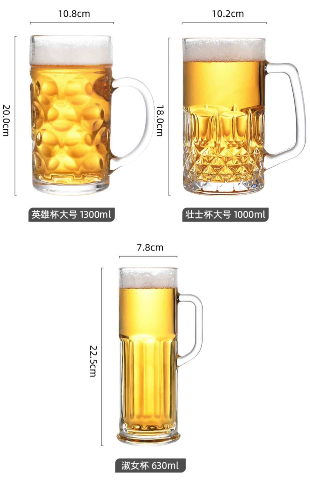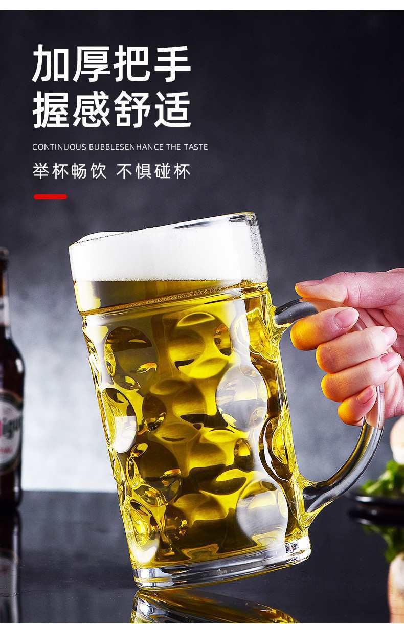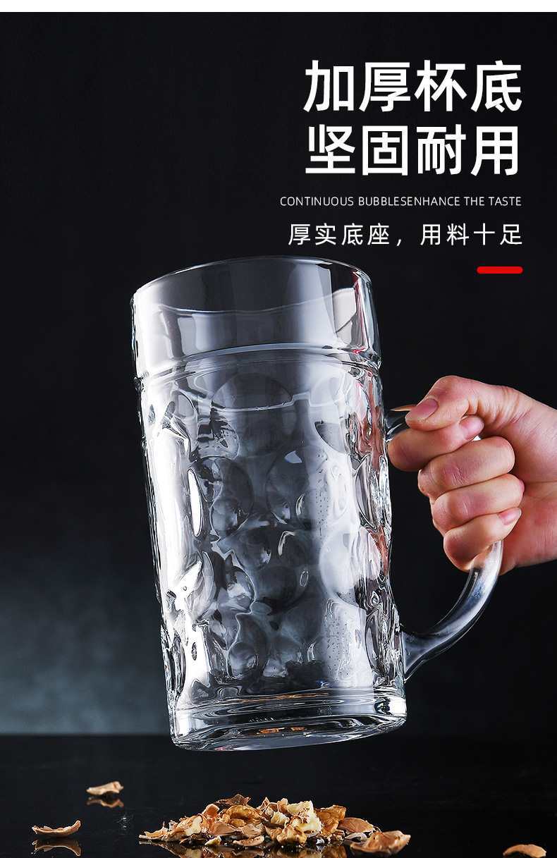 Vaso de vidrio al por mayor 1000ml vaso de cerveza grande con asa gran capacidad 1l vaso de cerveza de barril bar inglés