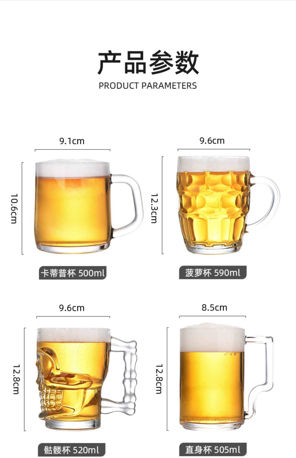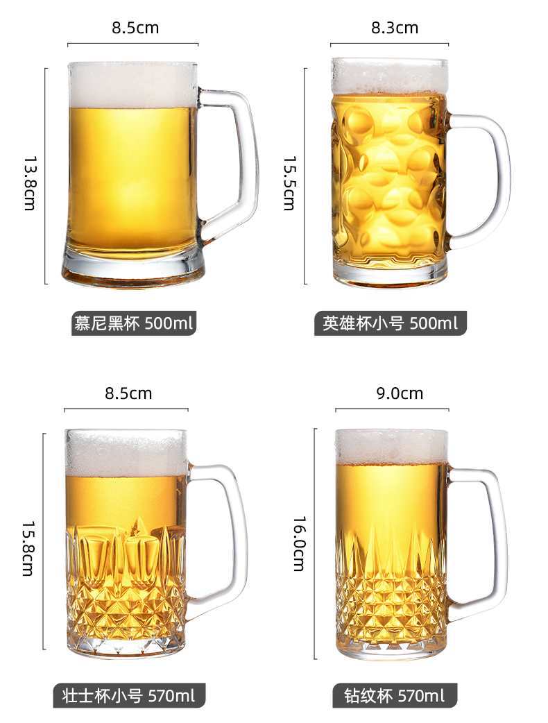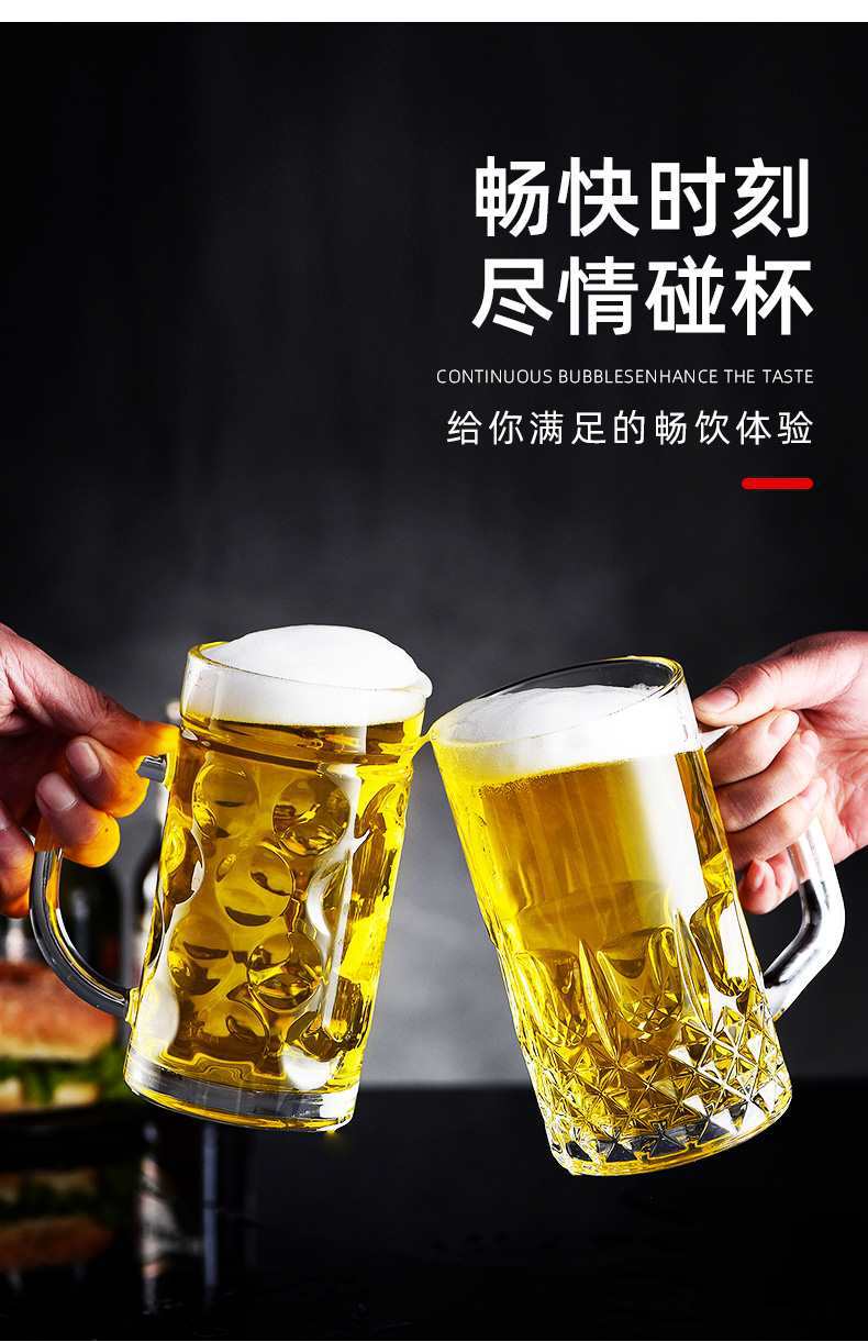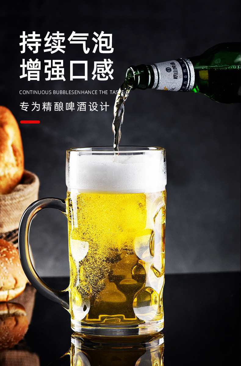 Vaso de vidrio al por mayor 1000ml vaso de cerveza grande con asa gran capacidad 1l vaso de cerveza de barril bar inglés