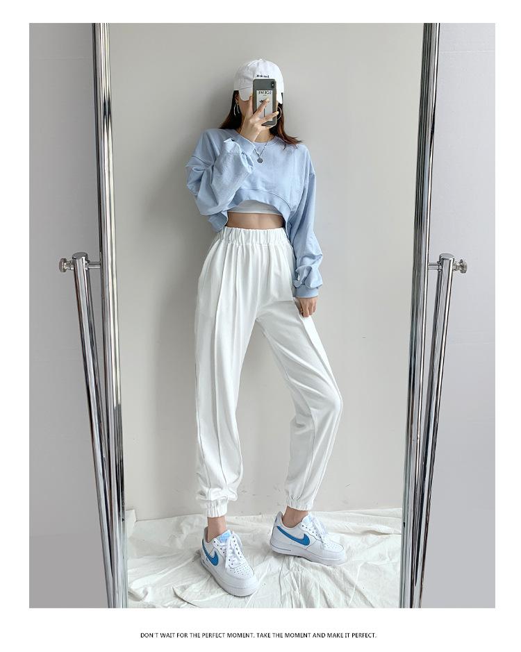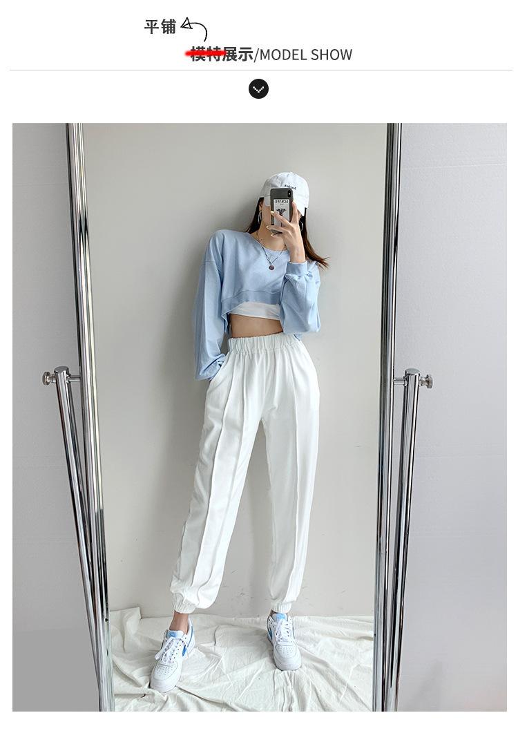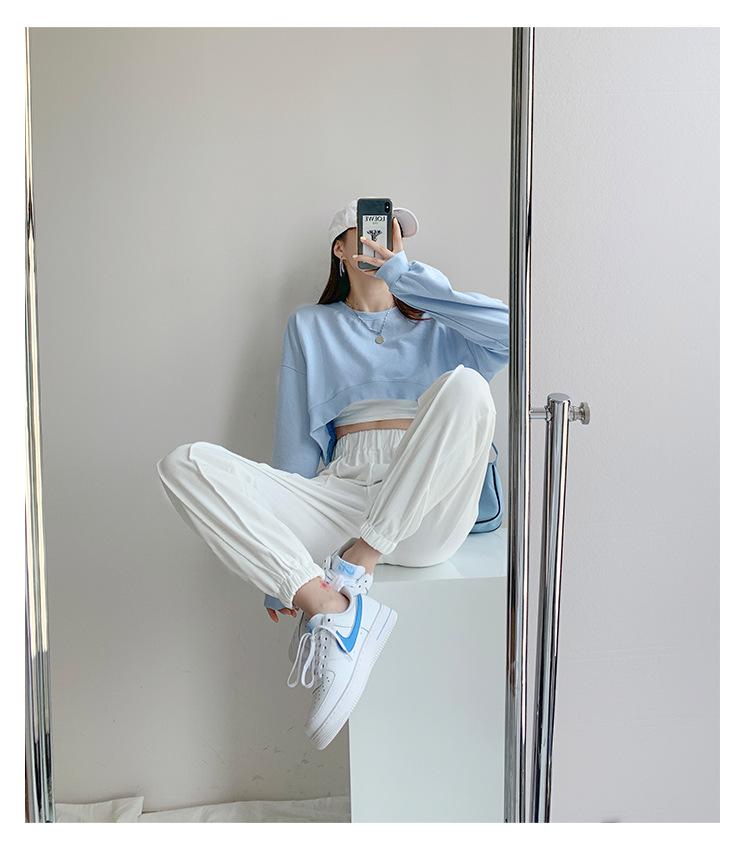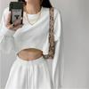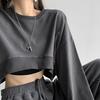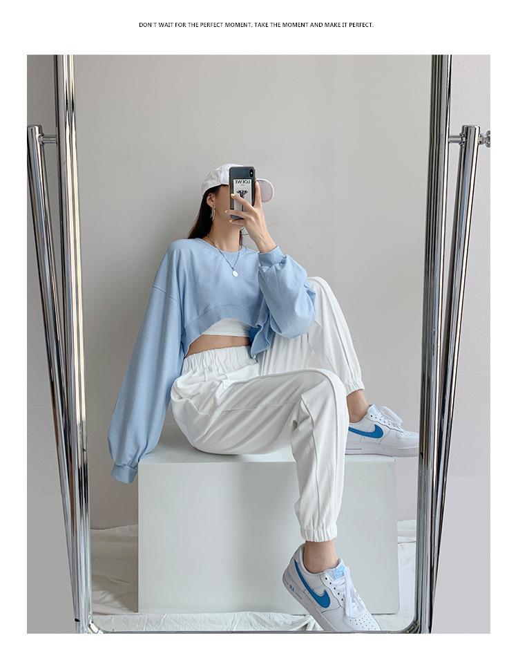 Sudadera Corta para Mujer Otoño 2023 Coreana Color Sólido Nueva Suelta Cuello Redondo para Mujer Comercio Exterior Manga Larga Top Moda Femenina
