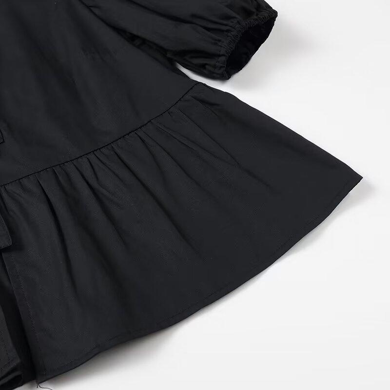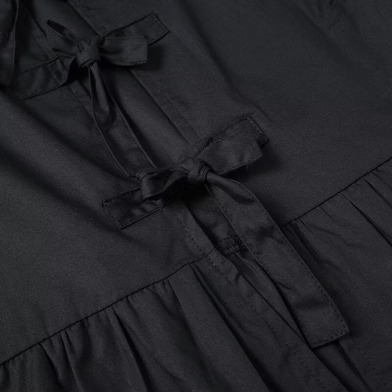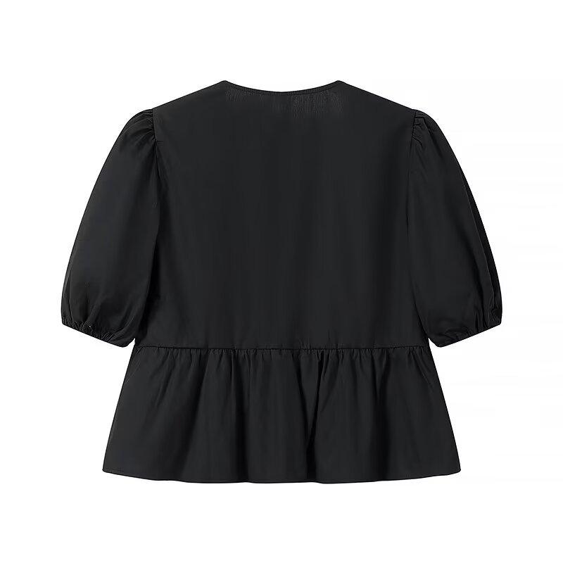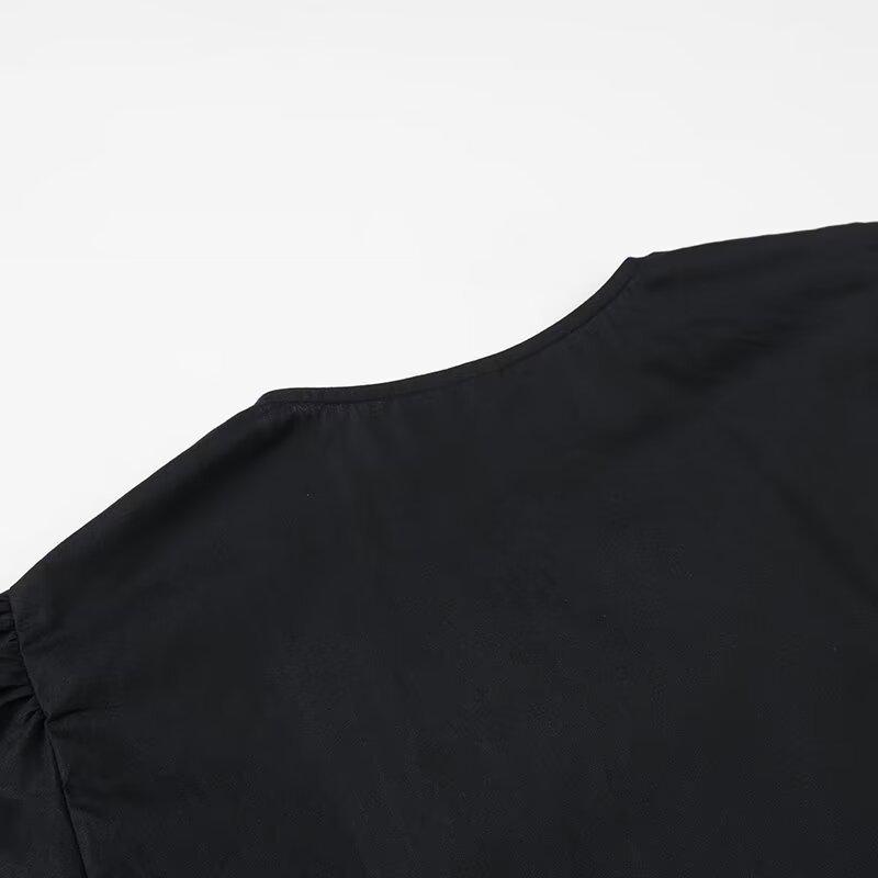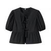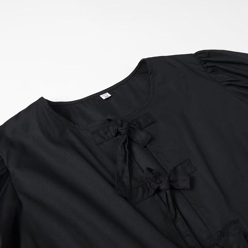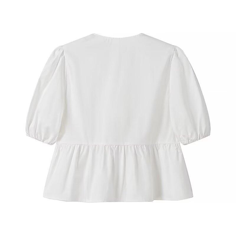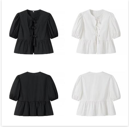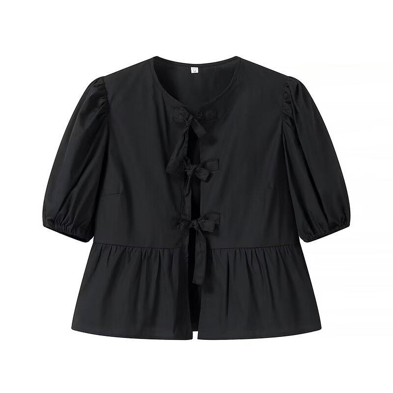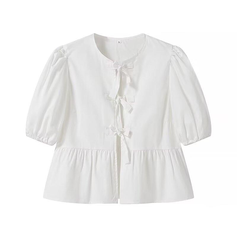 Camisa de manga corta con lazo y cordones de algodón, estilo urbano, de cuello redondo, color liso, para mujer, estilo europeo y americano, primavera y verano 2024