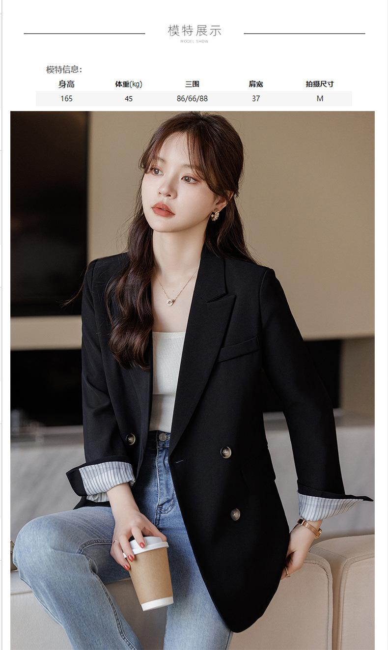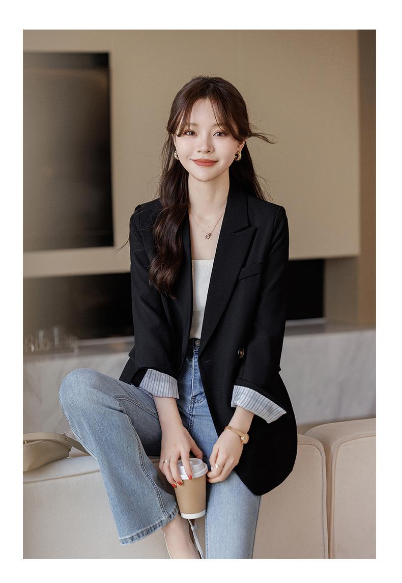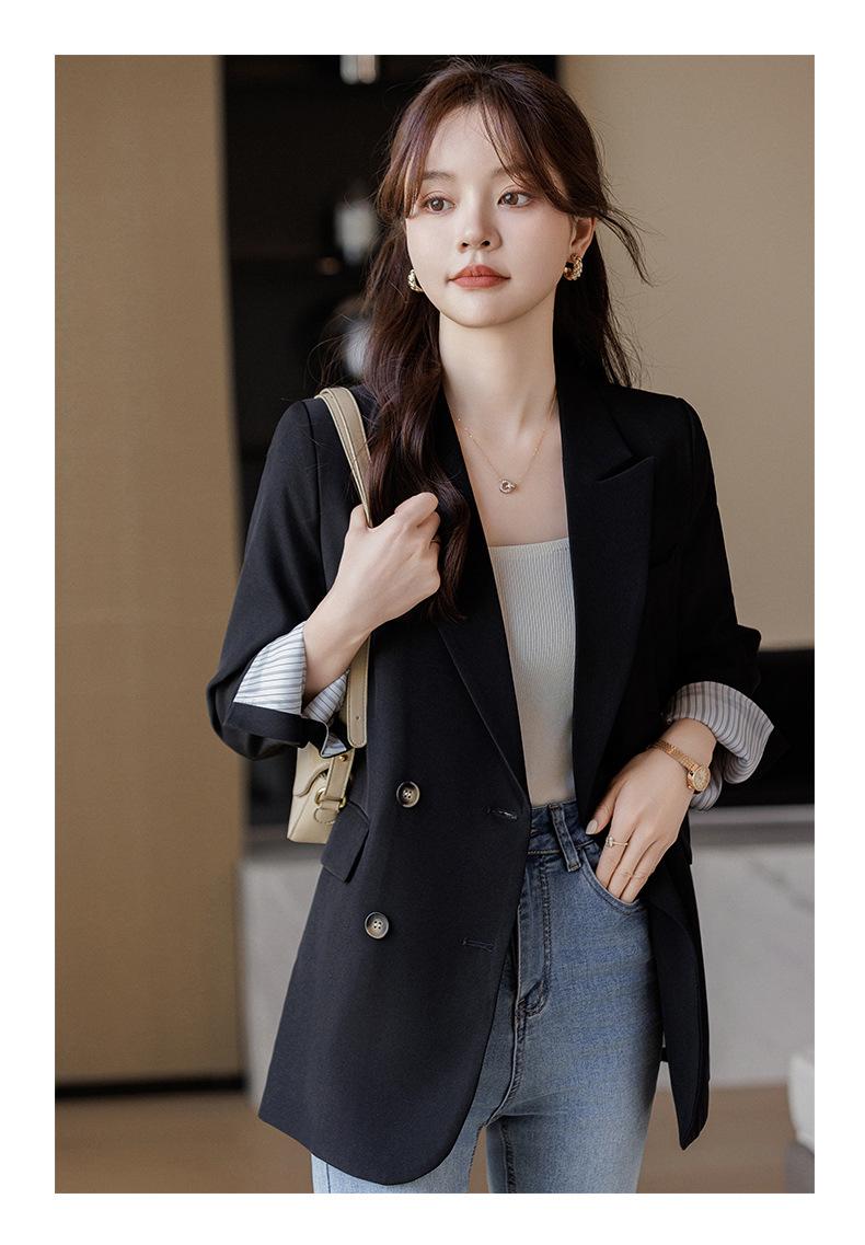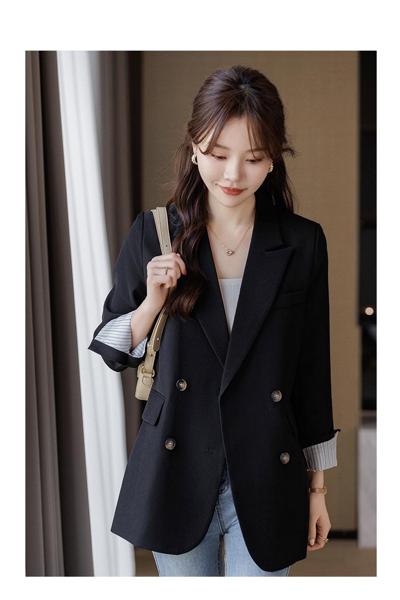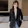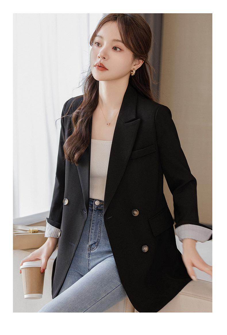 Chaqueta de Traje Negra Cruzada Holgada Adelgazante Profesional Moda Femenina Elegante Primavera y Otoño Nueva Ropa de Trabajo Top