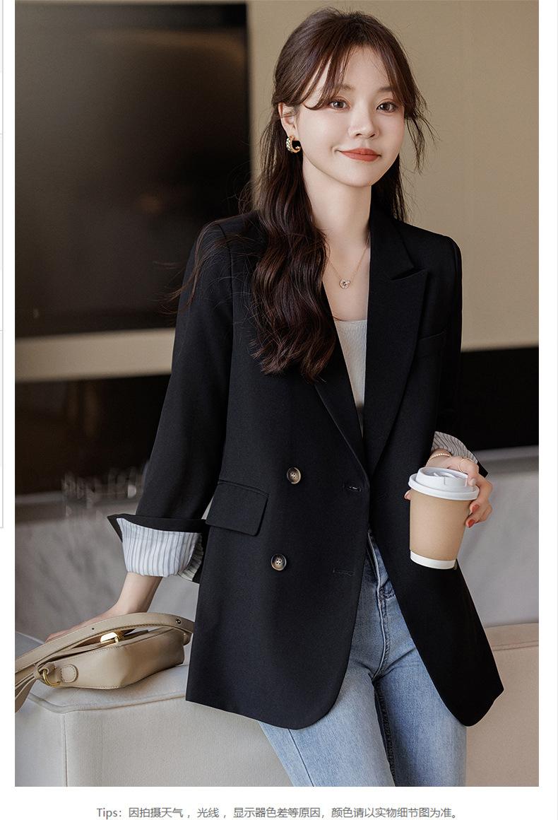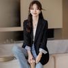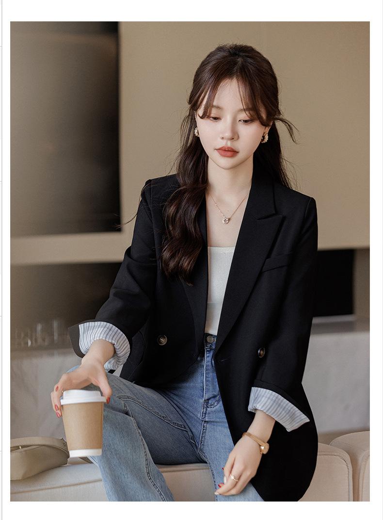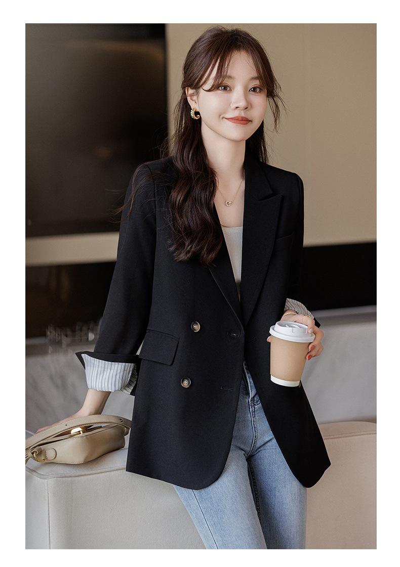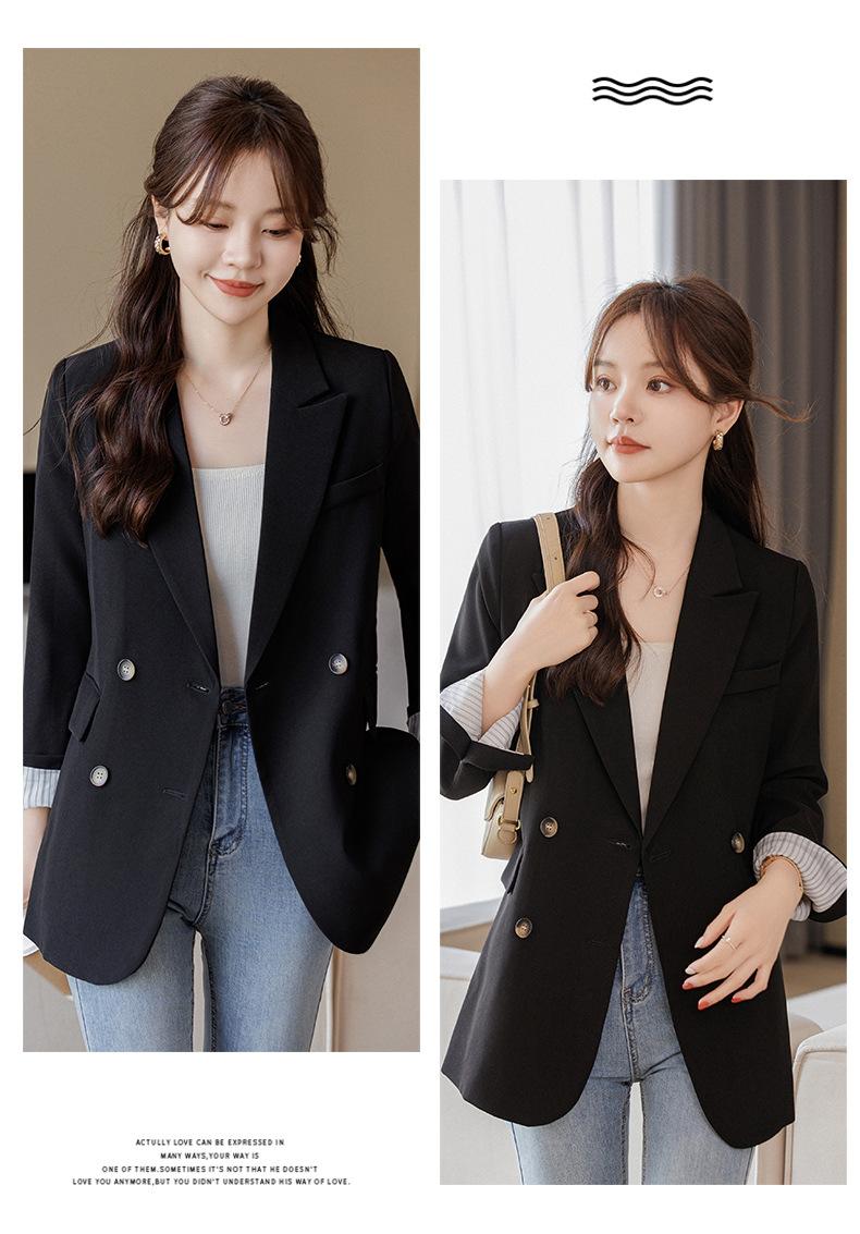 Chaqueta de Traje Negra Cruzada Holgada Adelgazante Profesional Moda Femenina Elegante Primavera y Otoño Nueva Ropa de Trabajo Top