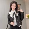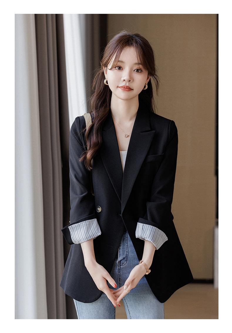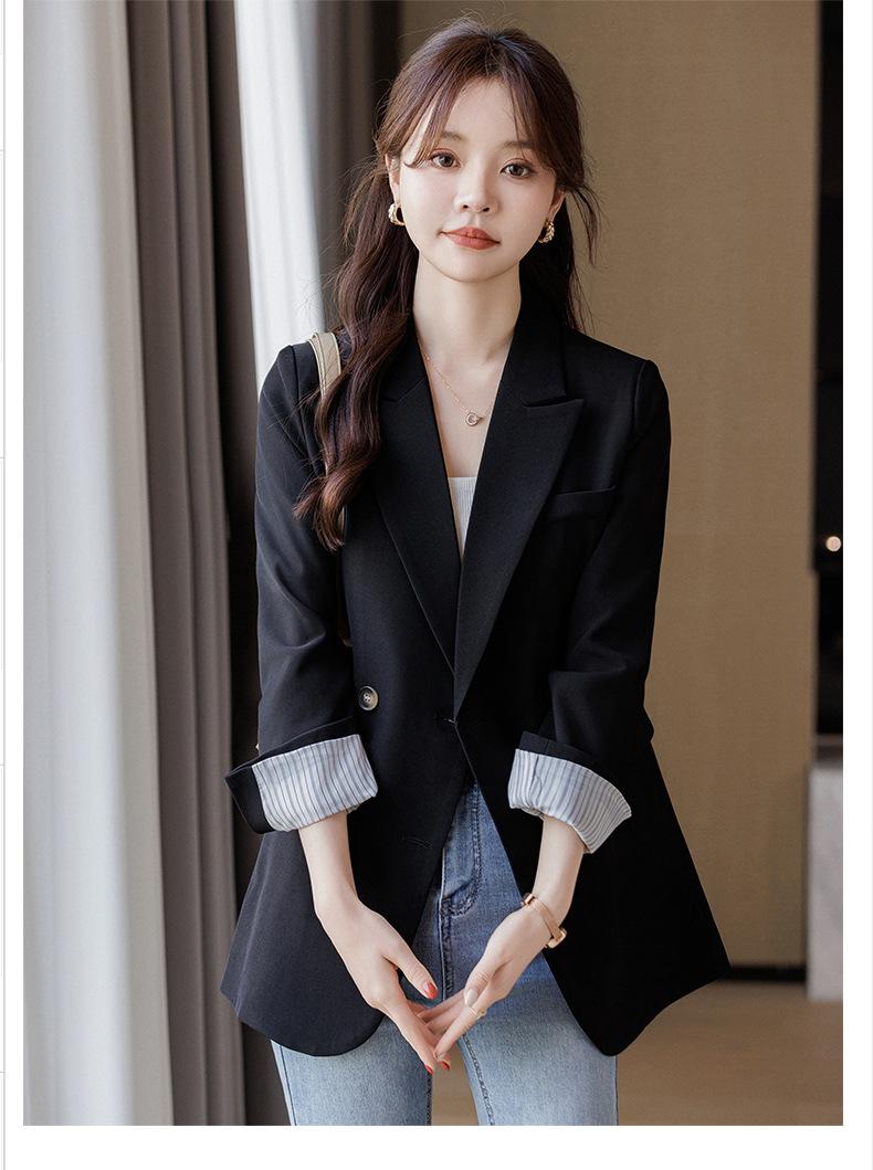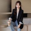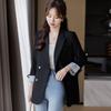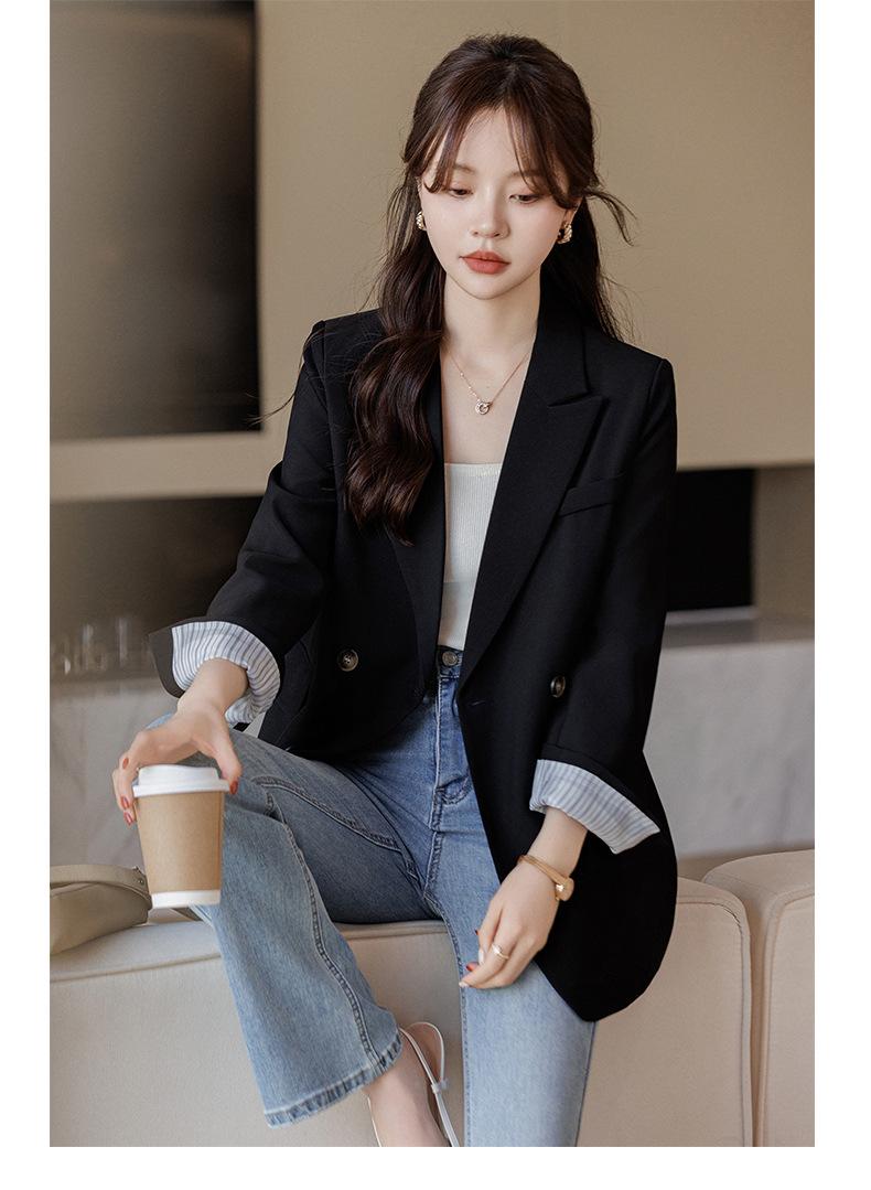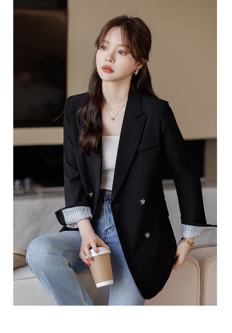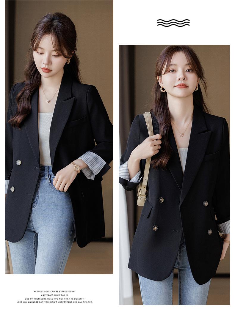Chaqueta de Traje Negra Cruzada Holgada Adelgazante Profesional Moda Femenina Elegante Primavera y Otoño Nueva Ropa de Trabajo Top